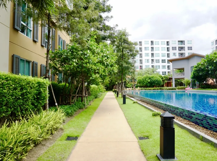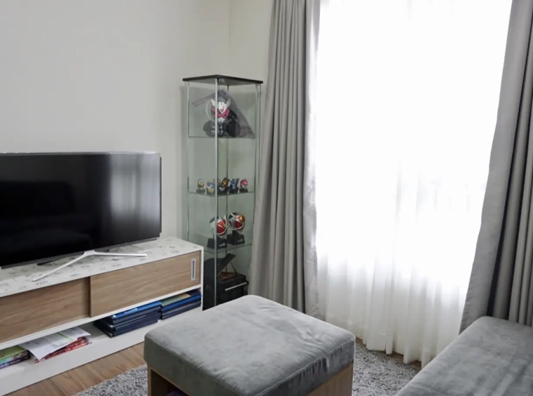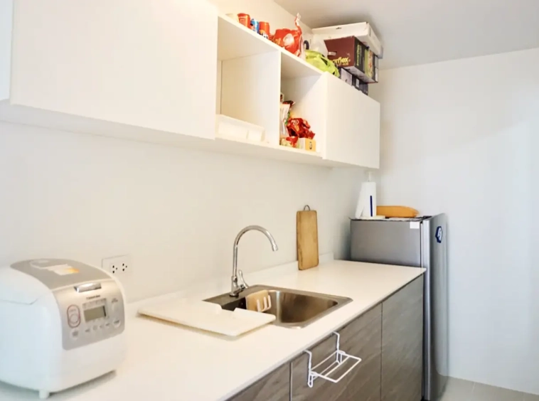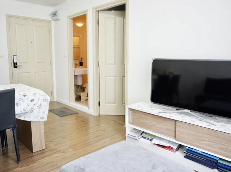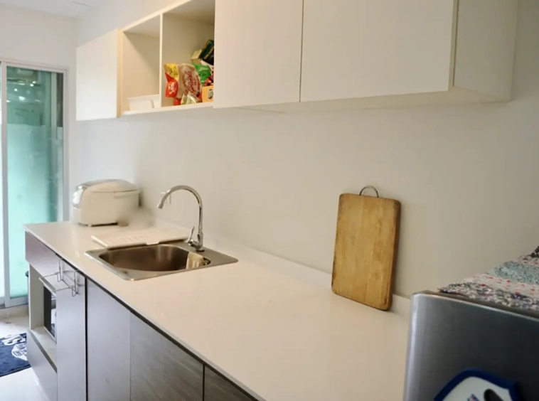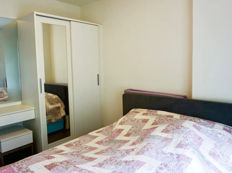 The unit is on the 2nd floor, fully furnished with sofa, TV and good size dining table. Separate kitchen room with built in kitchenette and access to the balcony. Bedroom has built in closet and dressing table. Bathroom has specious walk in rain shower. There are a/c in every room and neatly decorated in natural colour throughout.