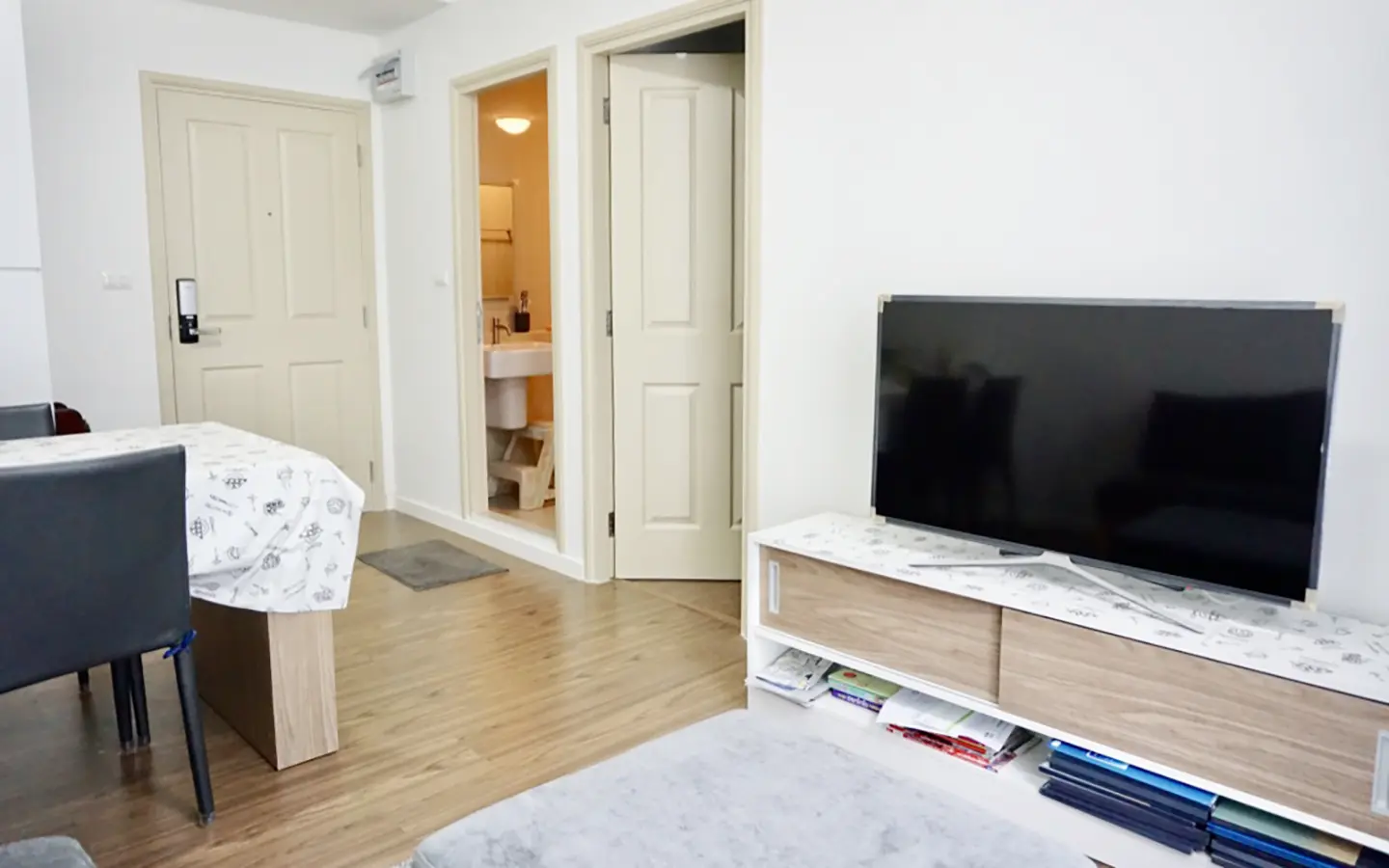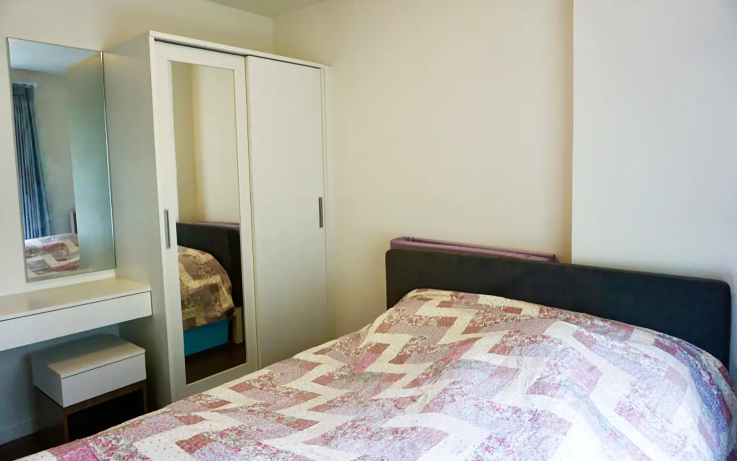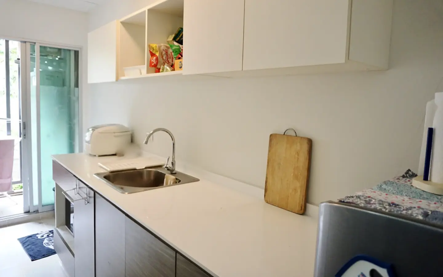 The unit is on the 2nd floor, fully furnished with sofa, TV and good size dining table. Separate kitchen room with built in kitchenette and access to the balcony. Bedroom has built in closet and dressing table. Bathroom has specious walk in rain shower. There are a/c in every room and neatly decorated in natural colour throughout.
