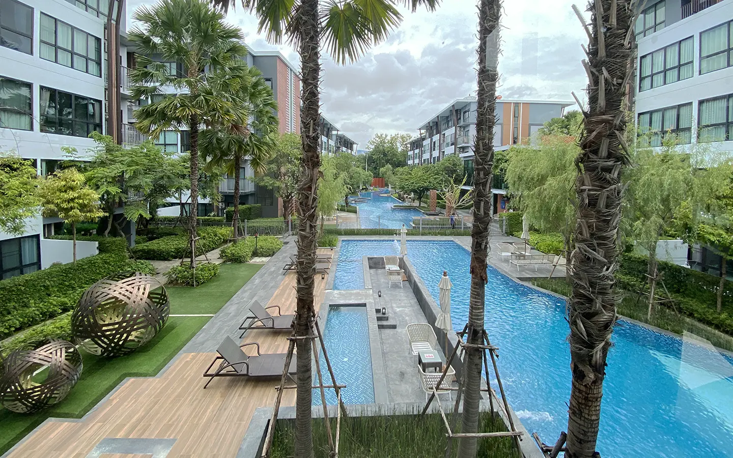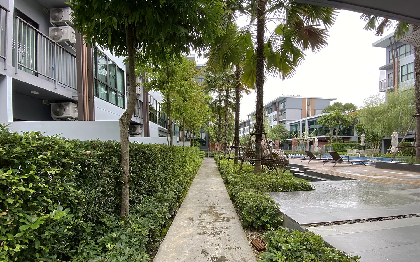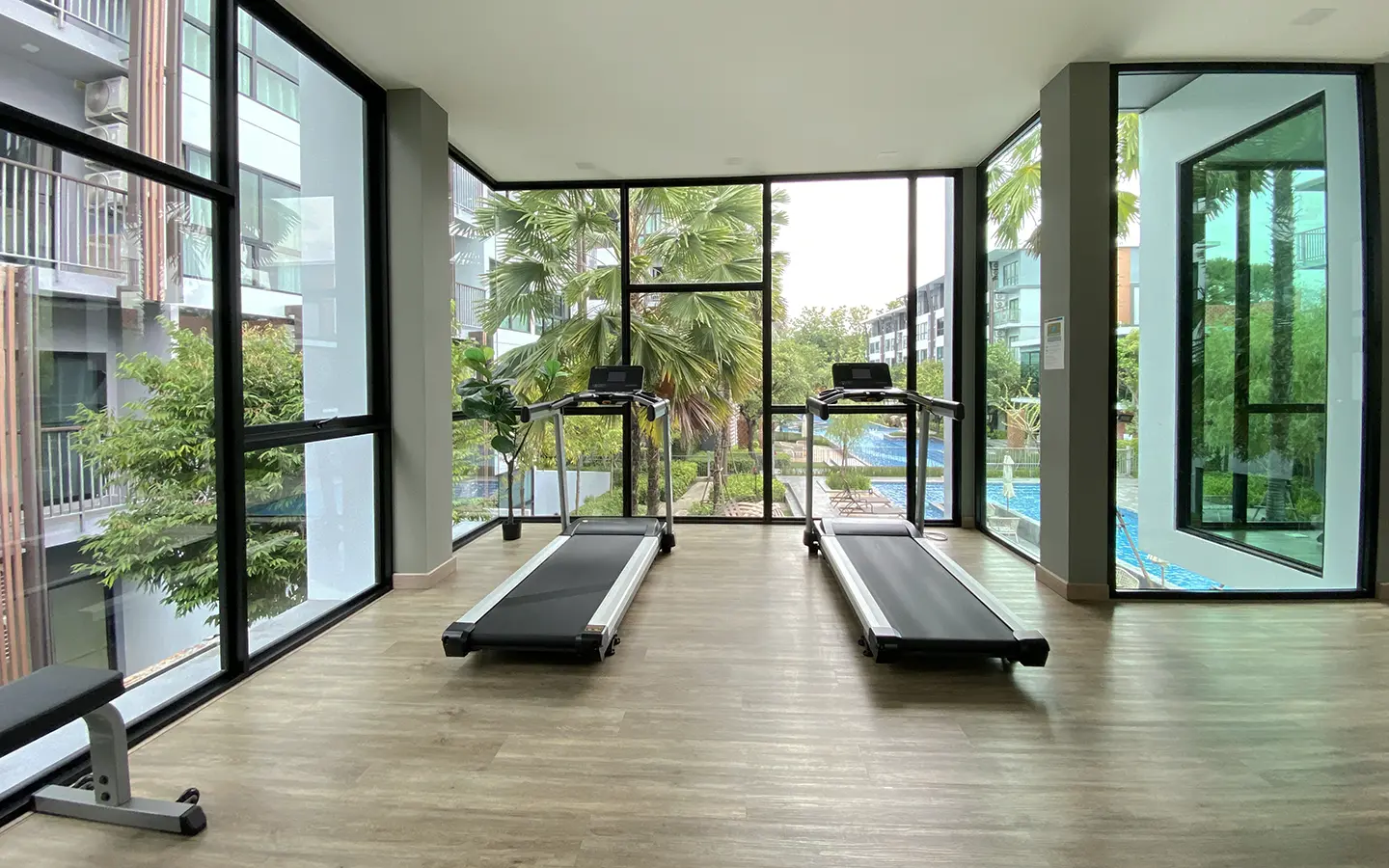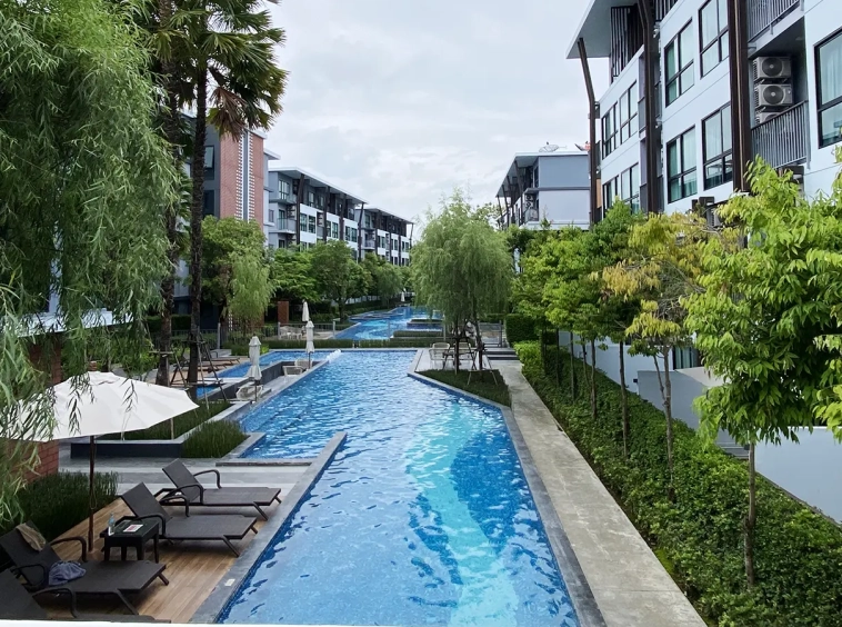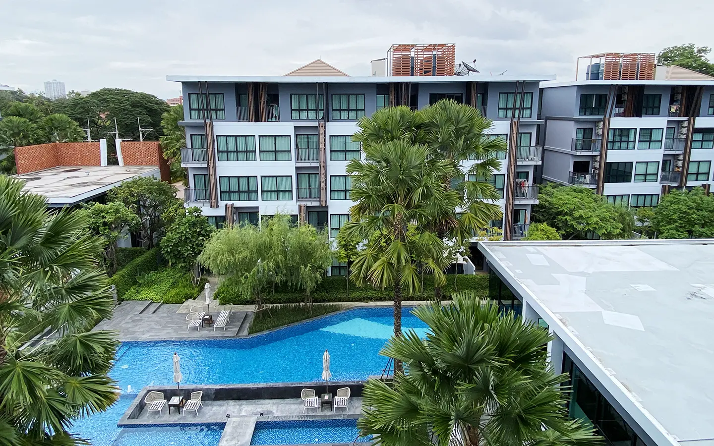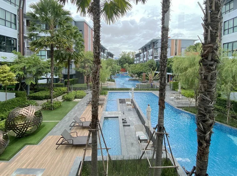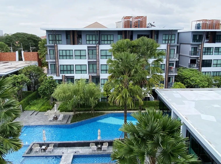 This unit comes fully furnished and offers a view of the swimming pool. The rental fee included the internet fee.