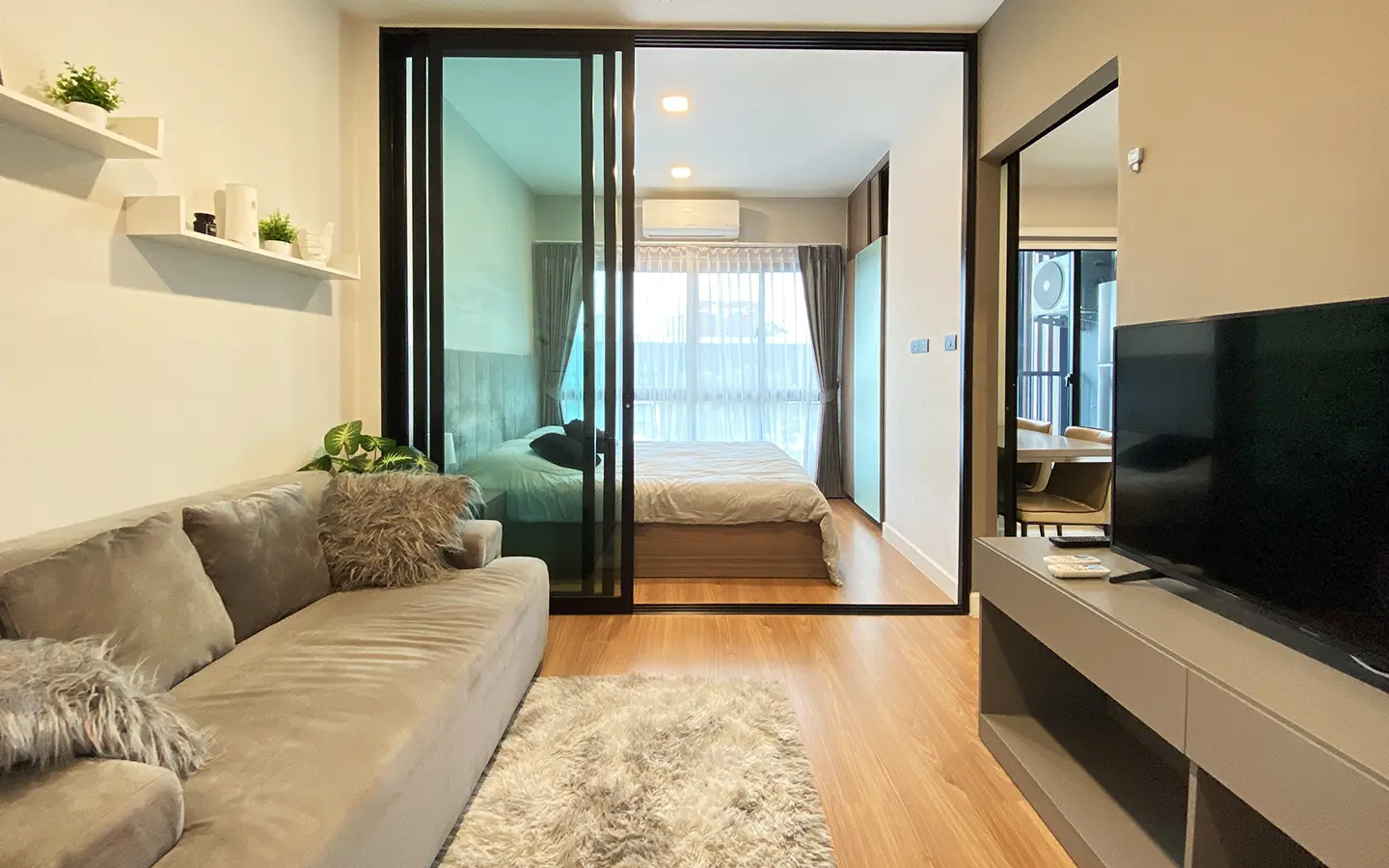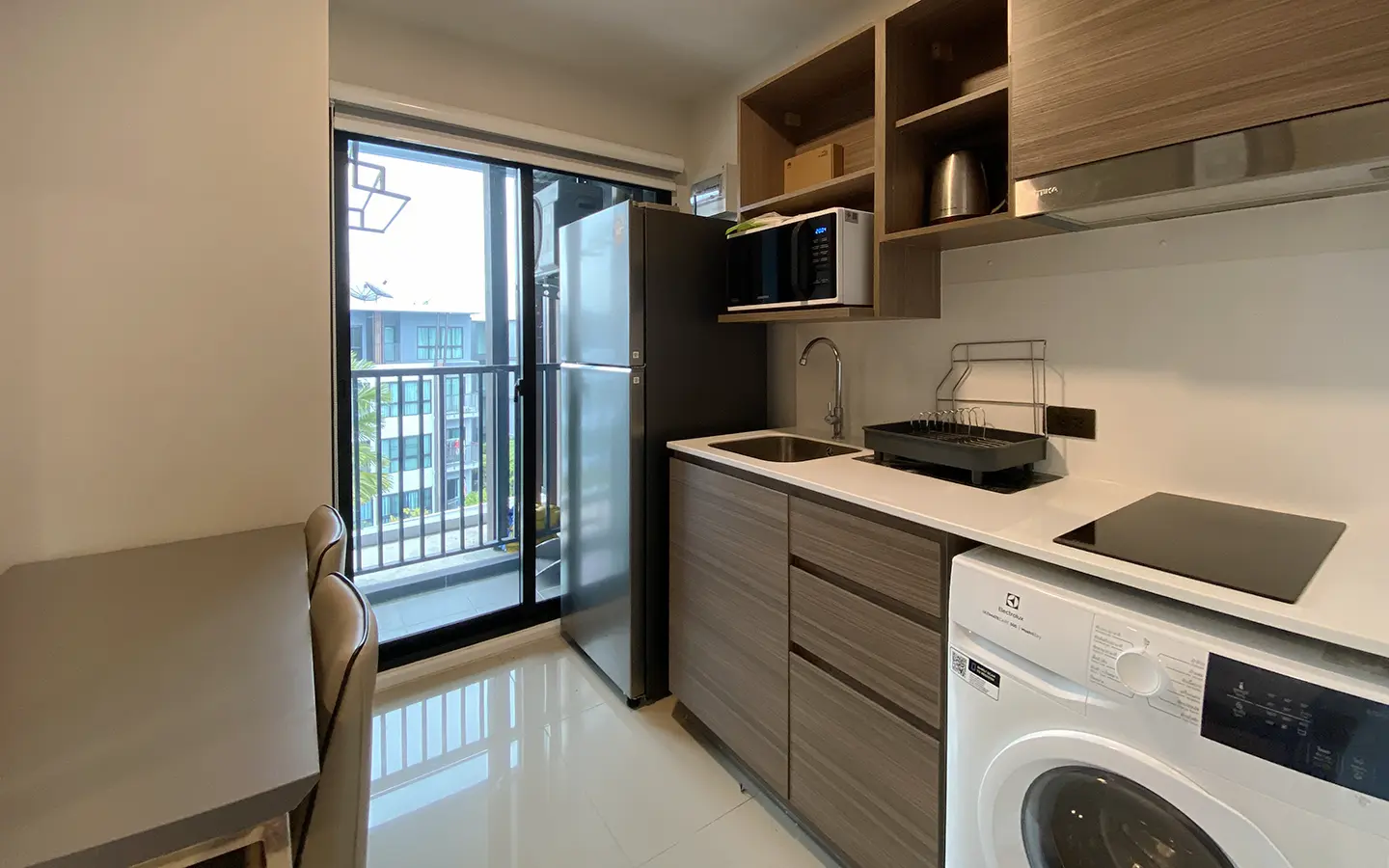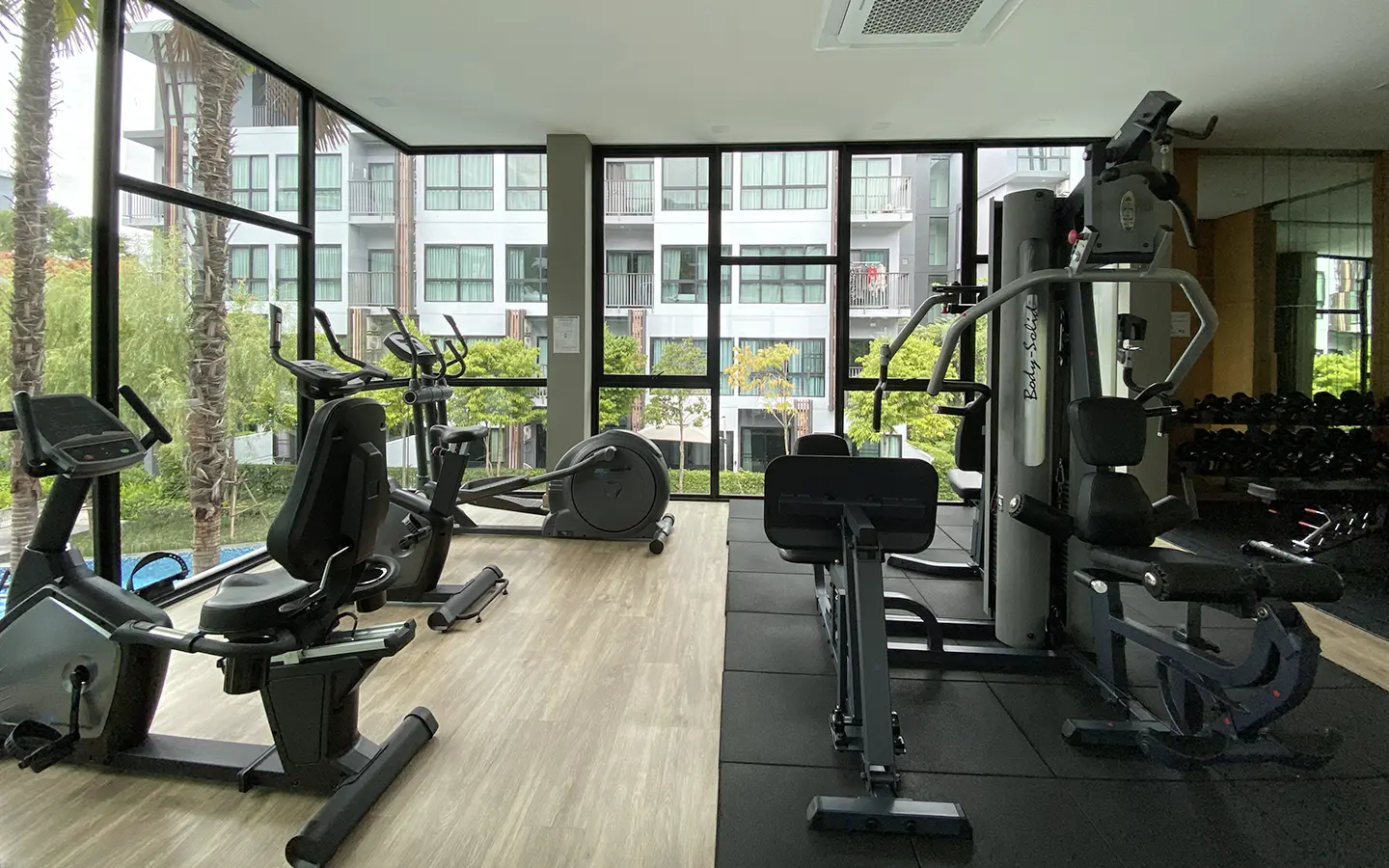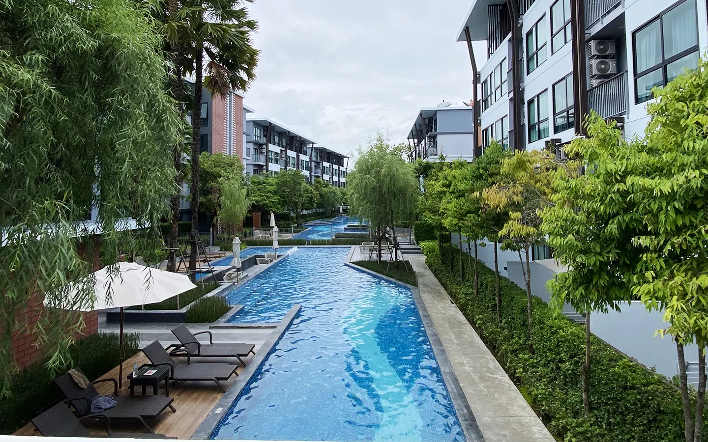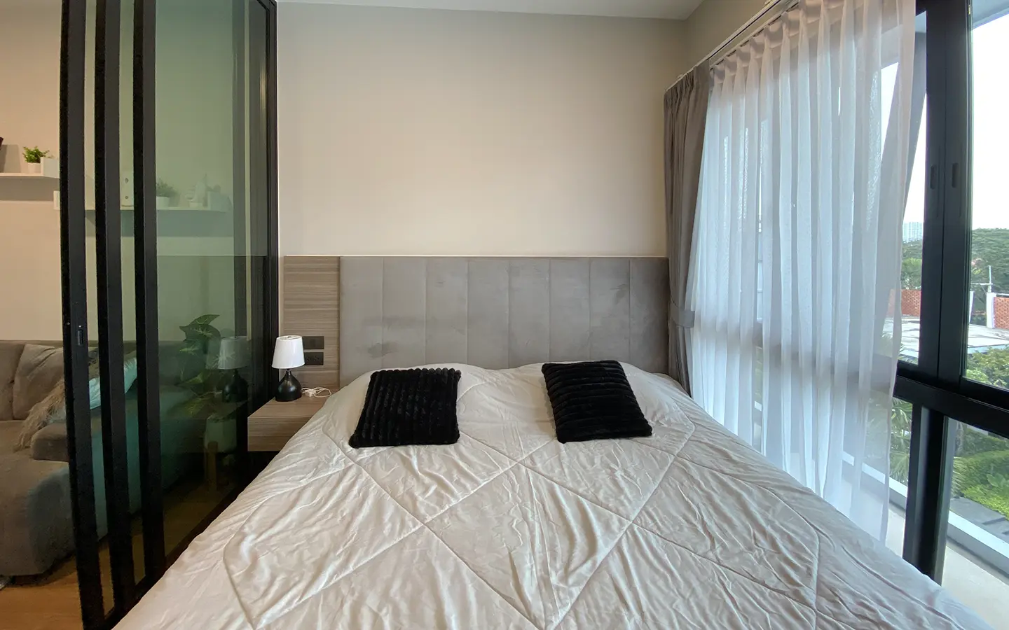 This unit comes fully furnished and offers a view of the swimming pool. The rental fee included the internet fee.