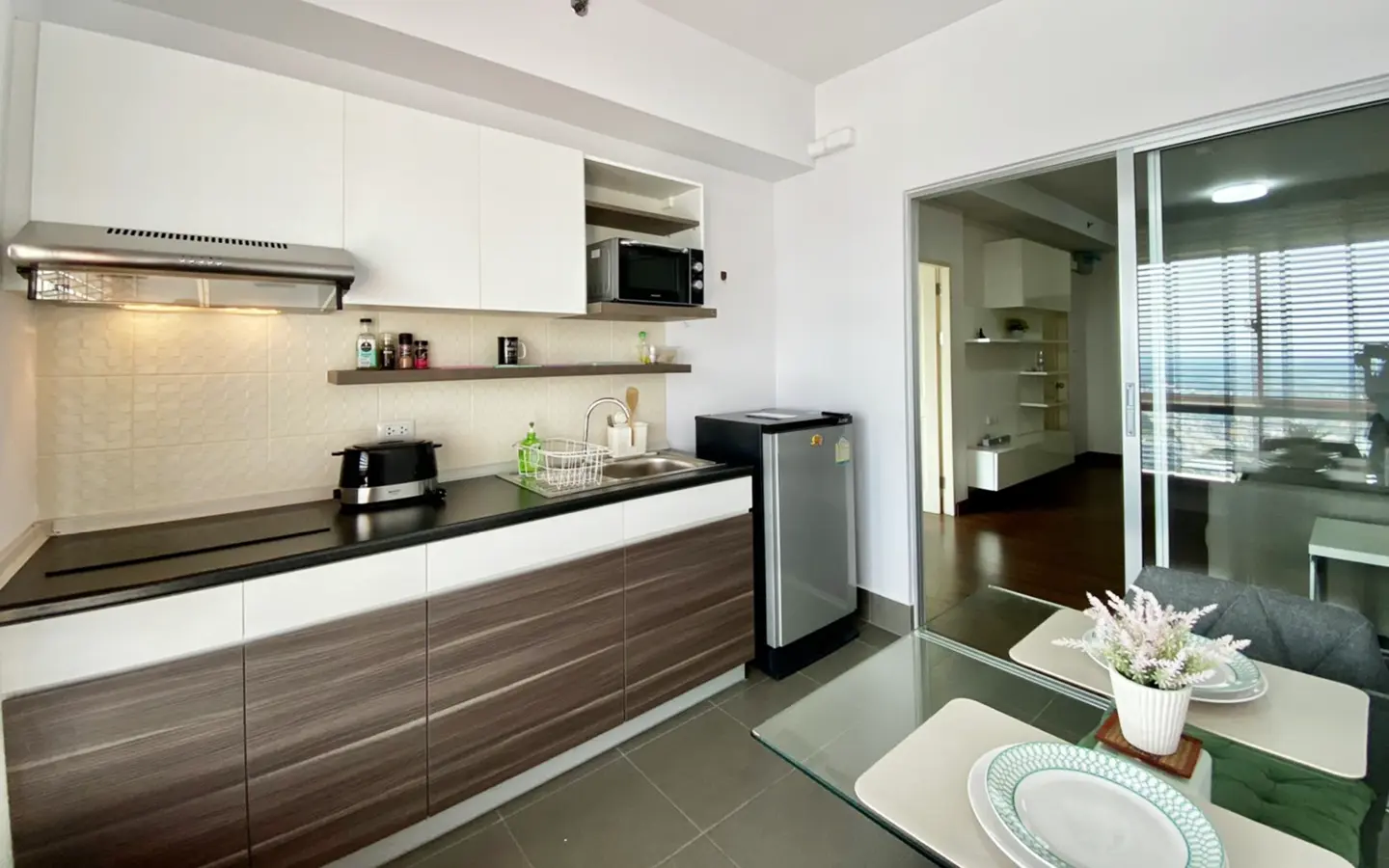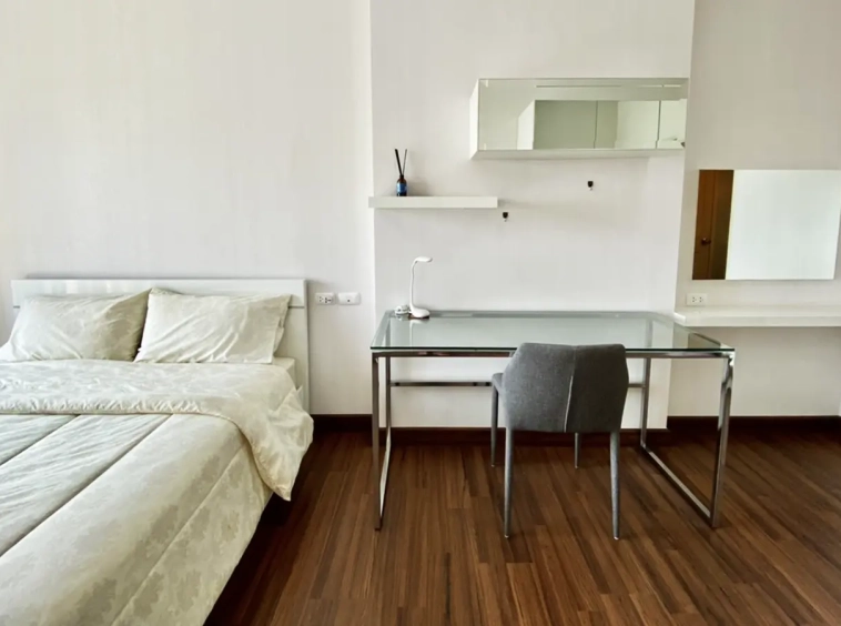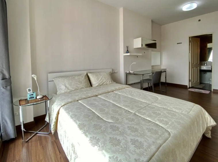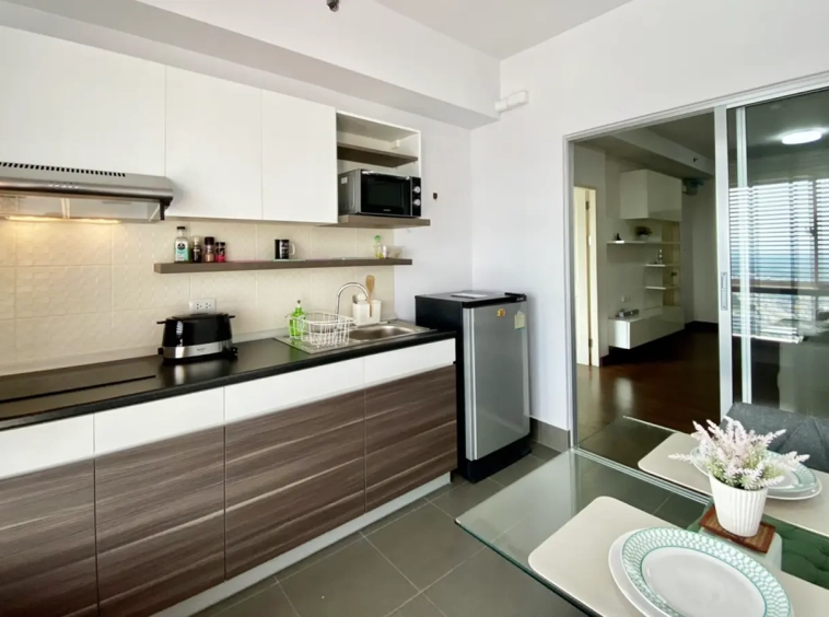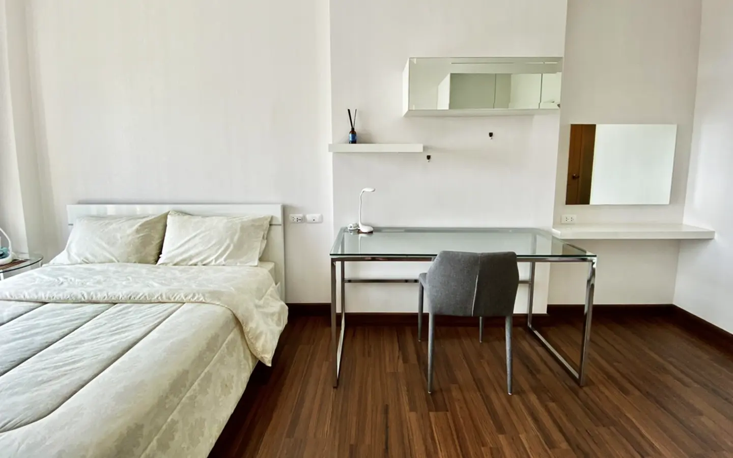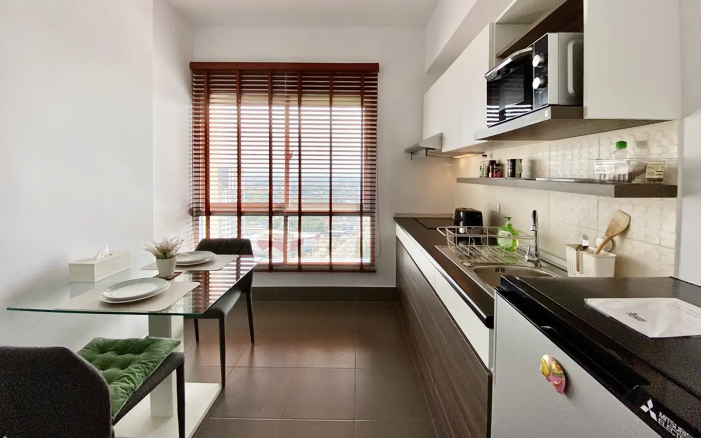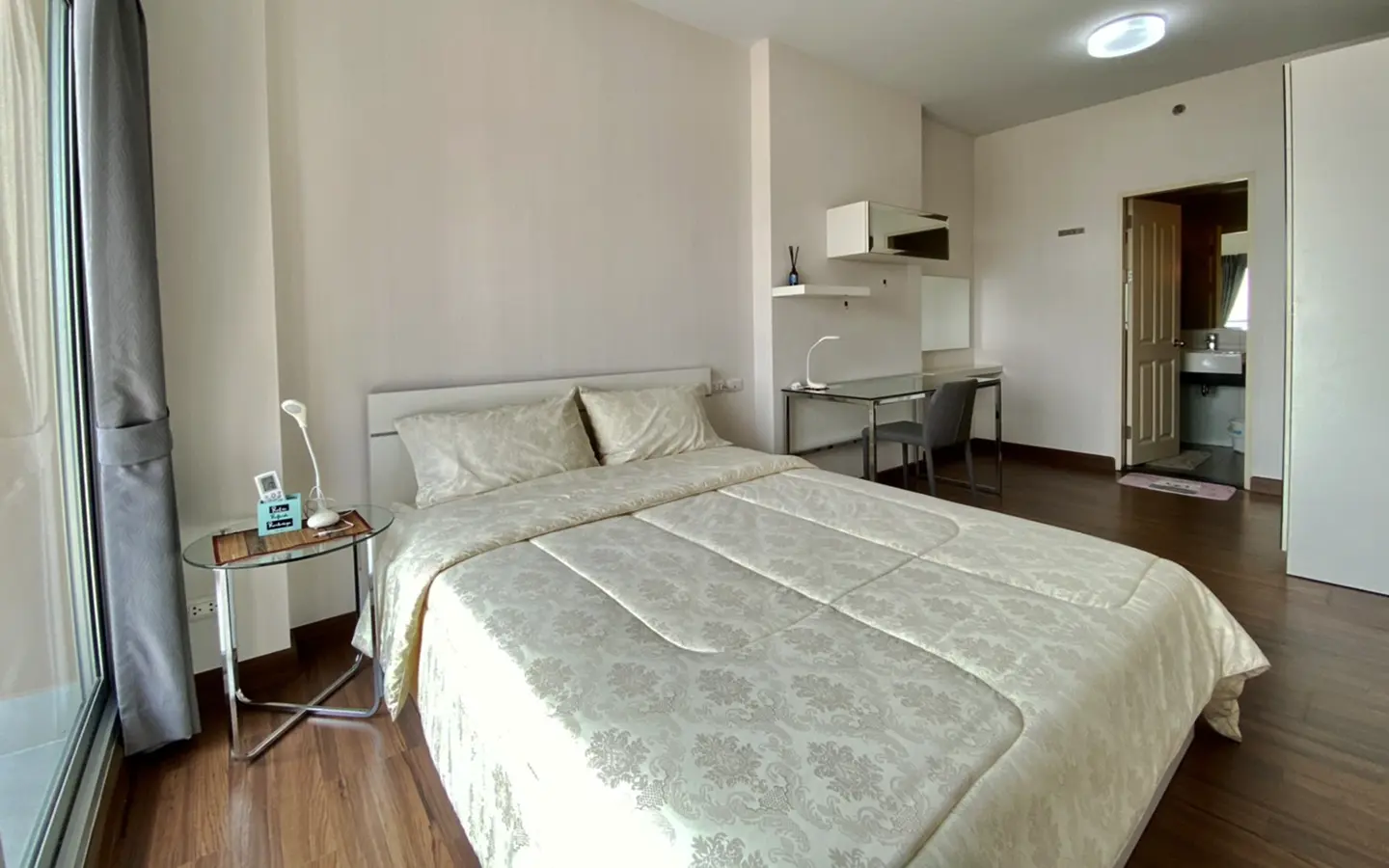 Situated on the 28th floor, the unit comprises of proper and decent size Western kitchenette that can be closed off from a living room by sliding doors, it comes with breakfast table and window with a view of Doi Saket. The living room is furnished with sofa, built-in wall unit and a/c. The bedroom has a small balcony and comes with a closet, working desk and a/c. The bathroom has a walk-in shower. The apartment is simple but nicely decorated.