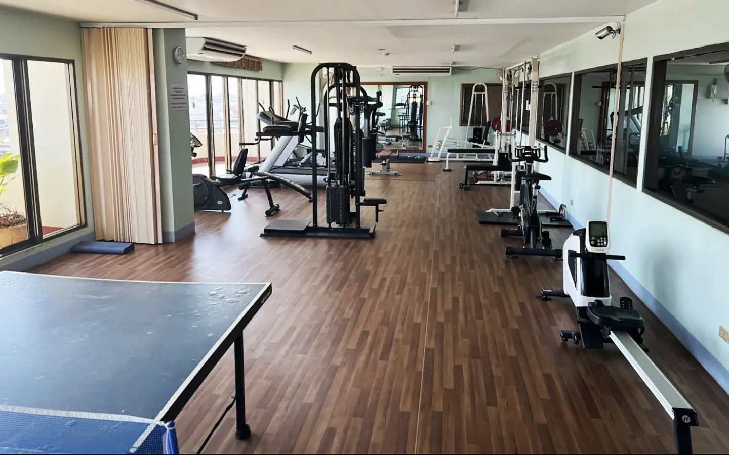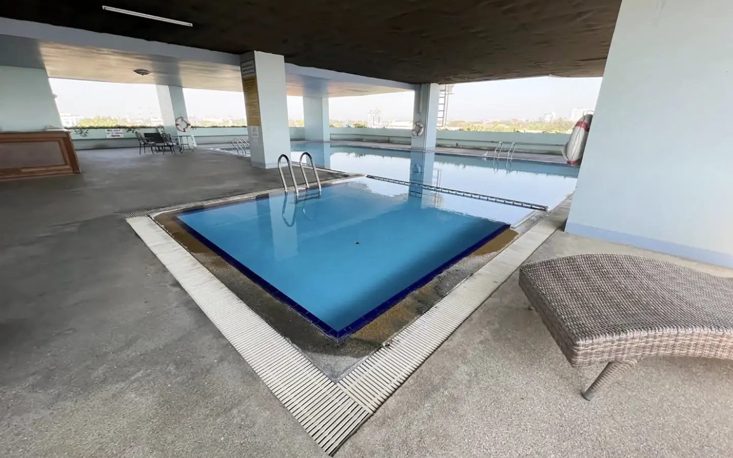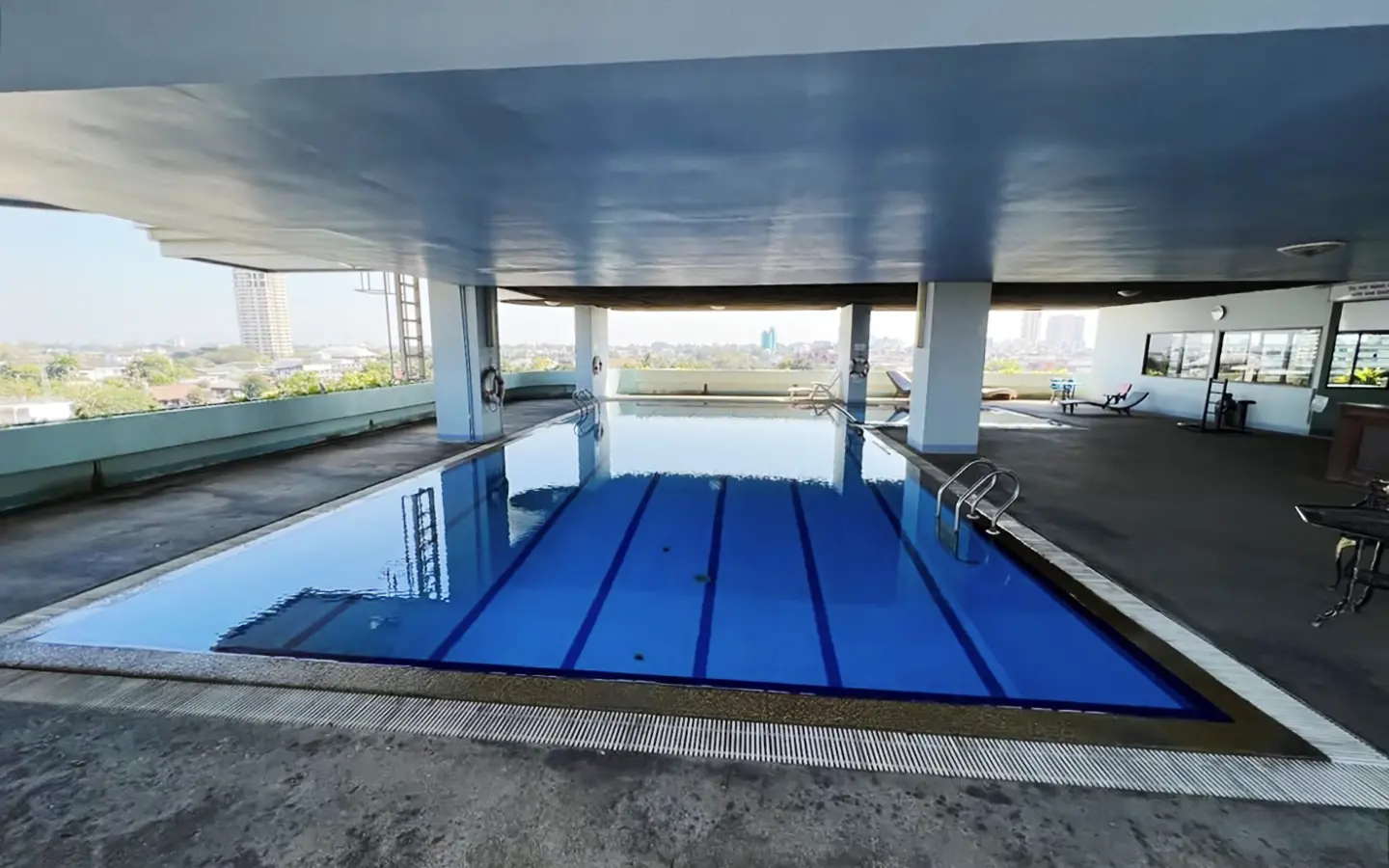This pet friendly building, located on the northeast corner of Nawarat Bridge, is one of the best managed, well maintained in the city and one of only two condo buildings of this height on the river. It has a large covered pool and well appointed fitness center with separate changing rooms and saunas for men and women. There is laundry service in the lobby, maid service available and a riverside restaurant on the property. There is a 24 hour security guard and a maintenance crew onsite. The building is pretty quiet, does not allow Air BnB and the tenants tend to stay for many years.