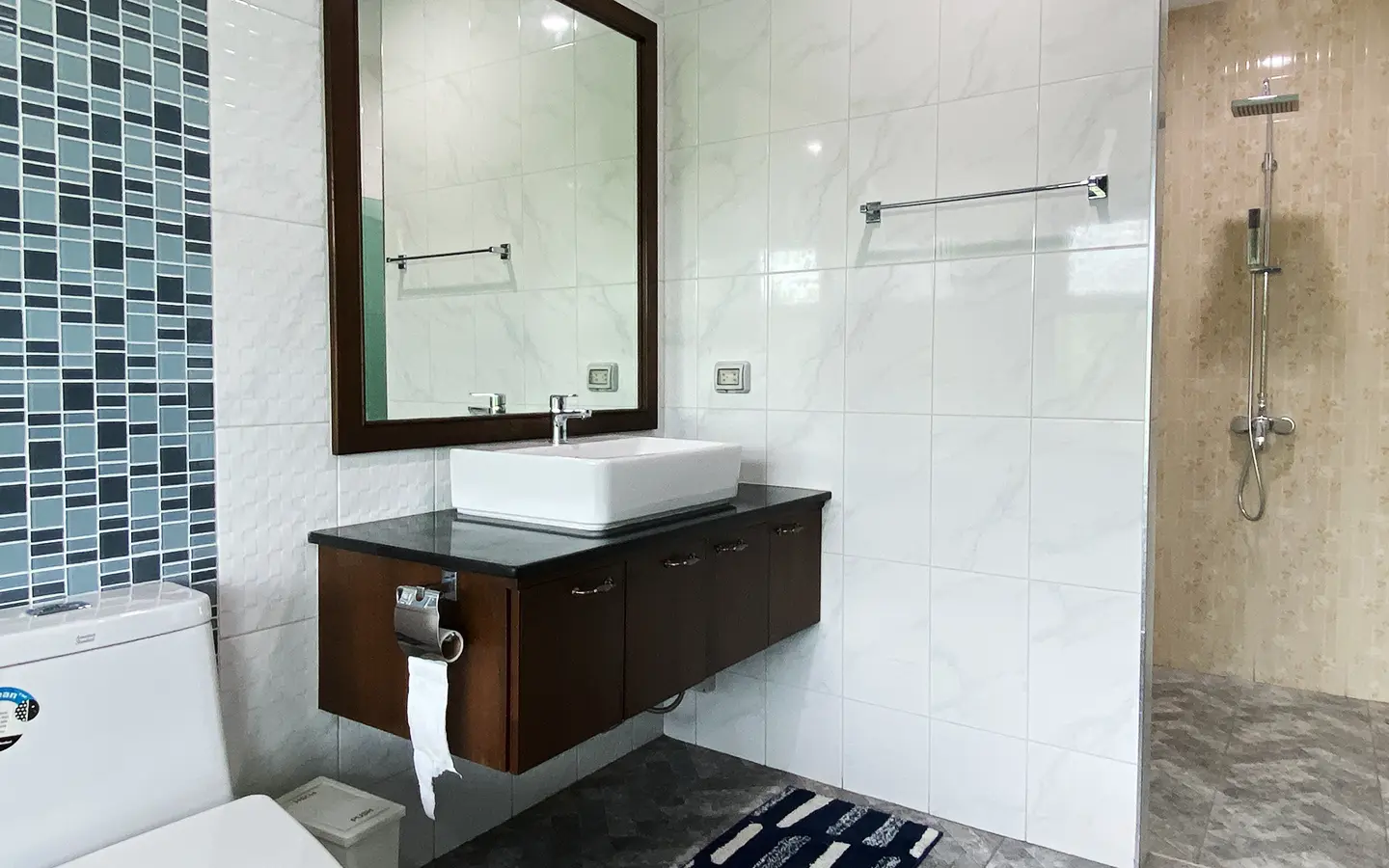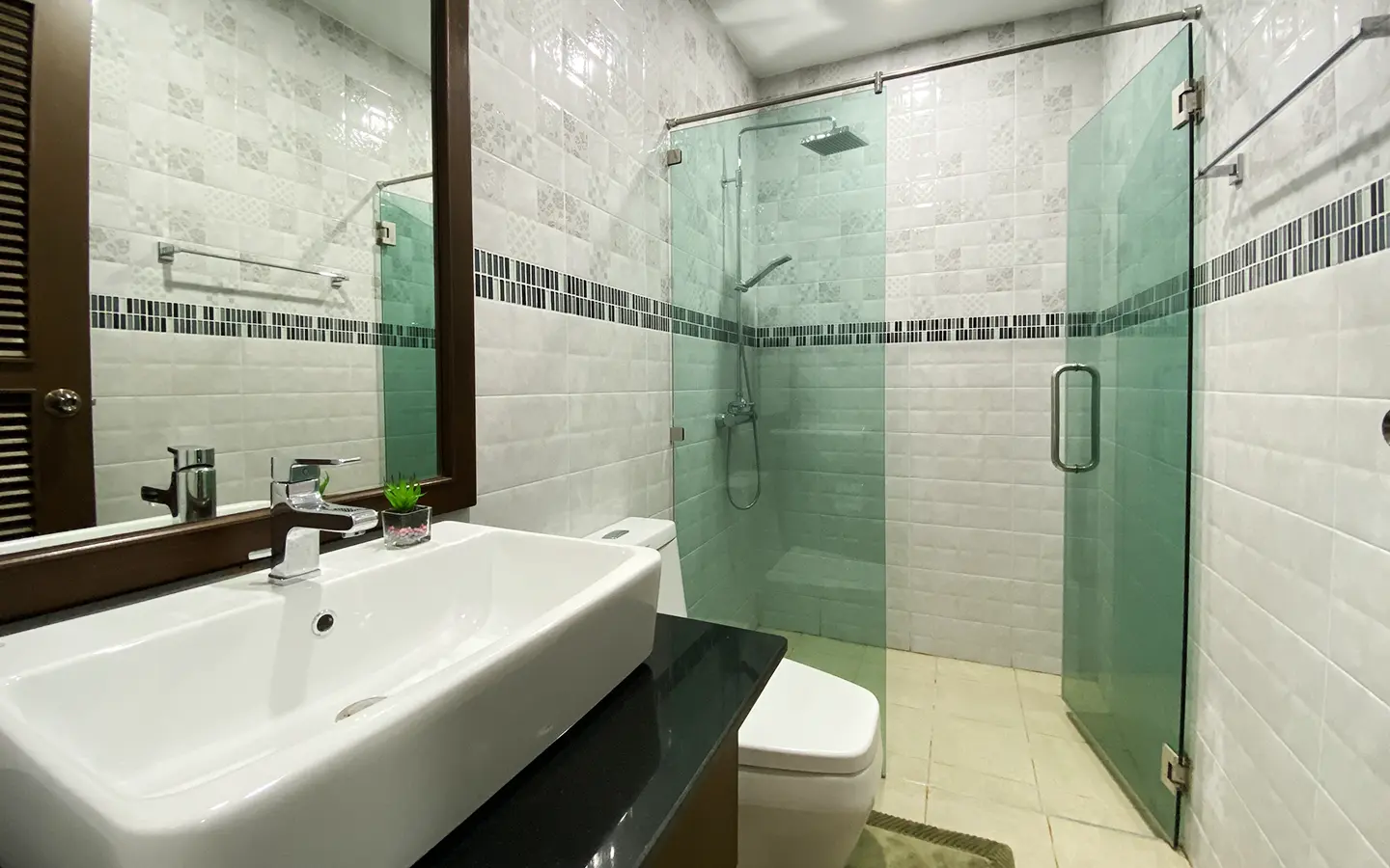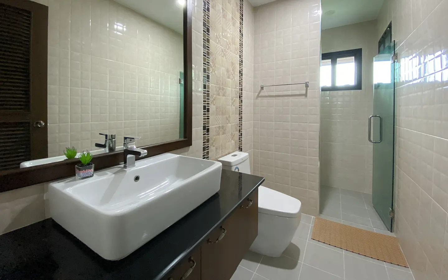 There is also a storage room, a second bedroom with a shared bathroom, a third bedroom with its own en-suite bathroom, and access to a private small balcony that allows for natural airflow.