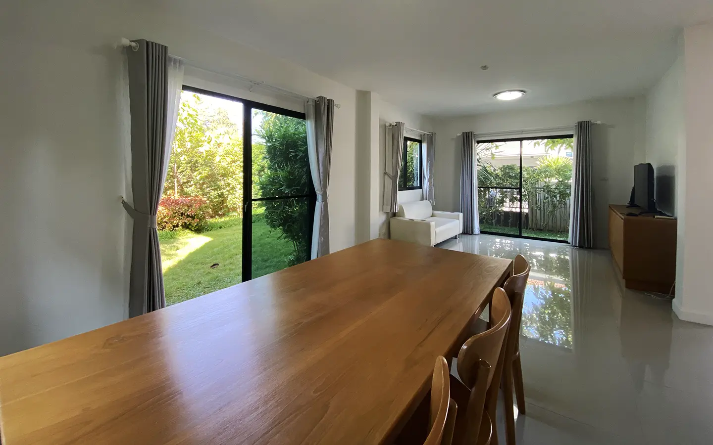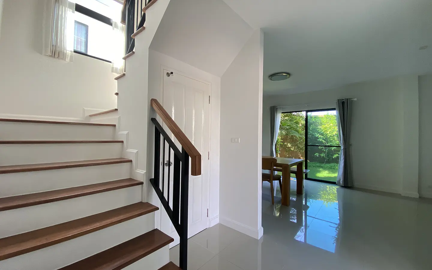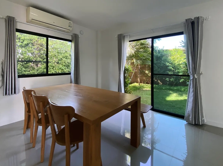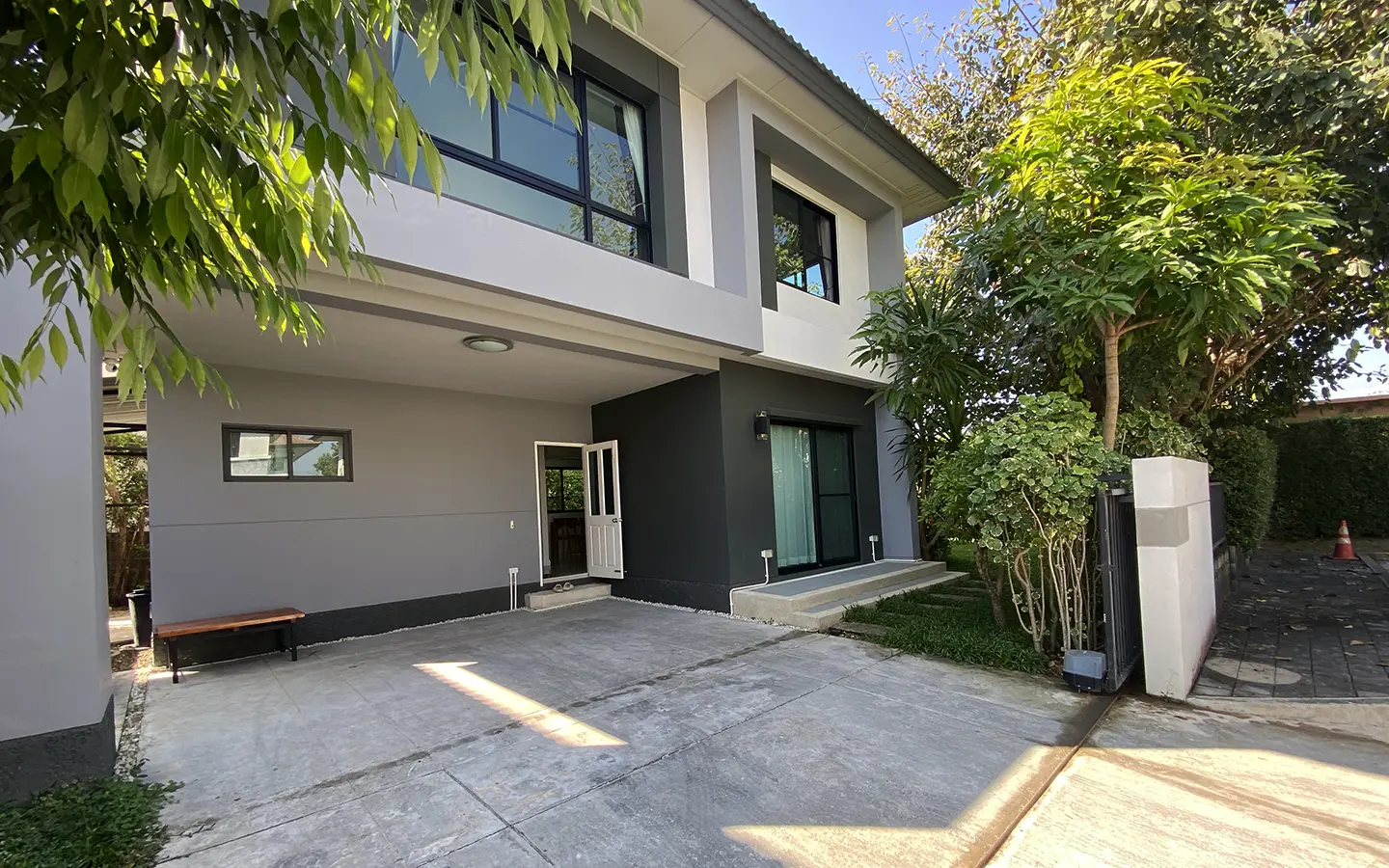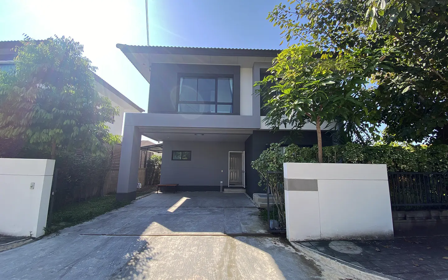 Nice 3 bedroom family home in a cul-de-sac with good size backyard for rent fully furnished in prestige gate estate on the Outer Ring road not far from all the commercial needs such as Homepro, Meta Mall and local fresh markets. About 12 minutes drive to Tonkla Schools, 15 minutes to NIS, 13 minutes to Central Chiang Mai and 30 minutes drive to the airport.