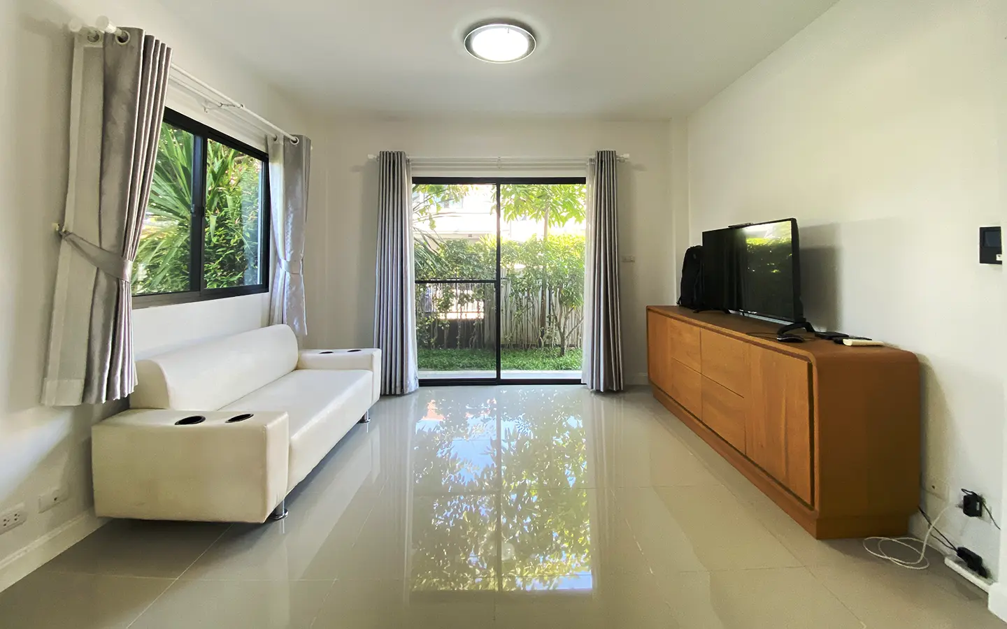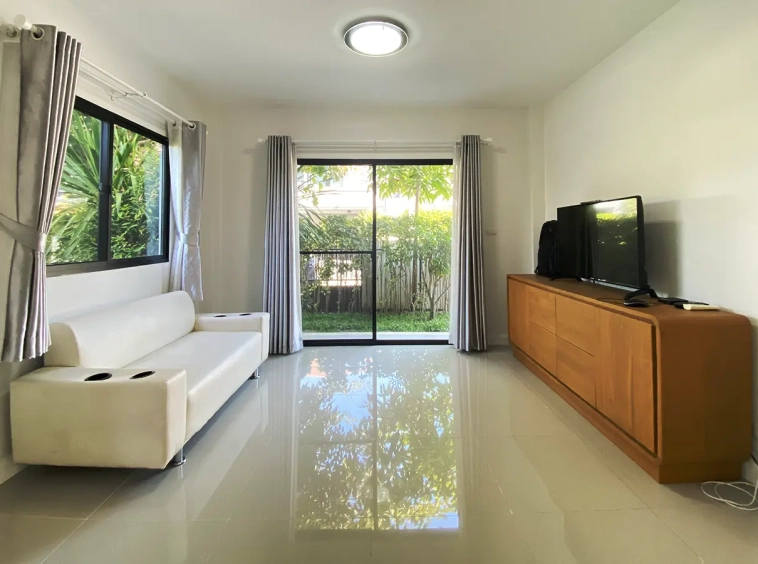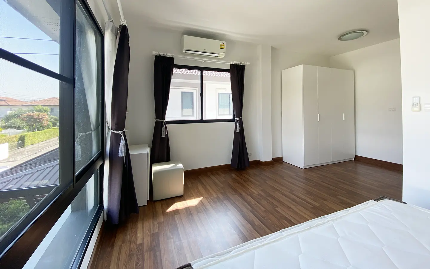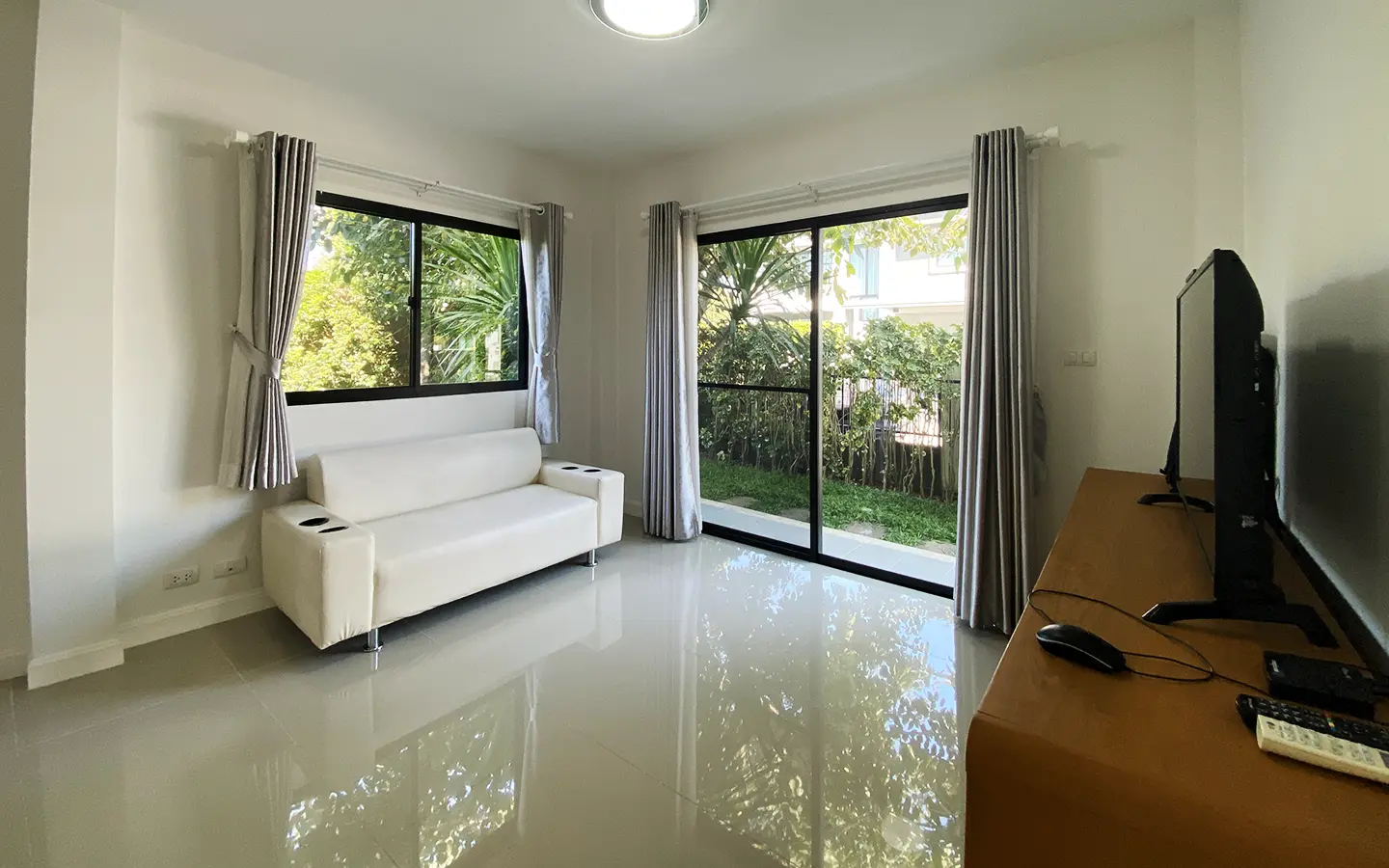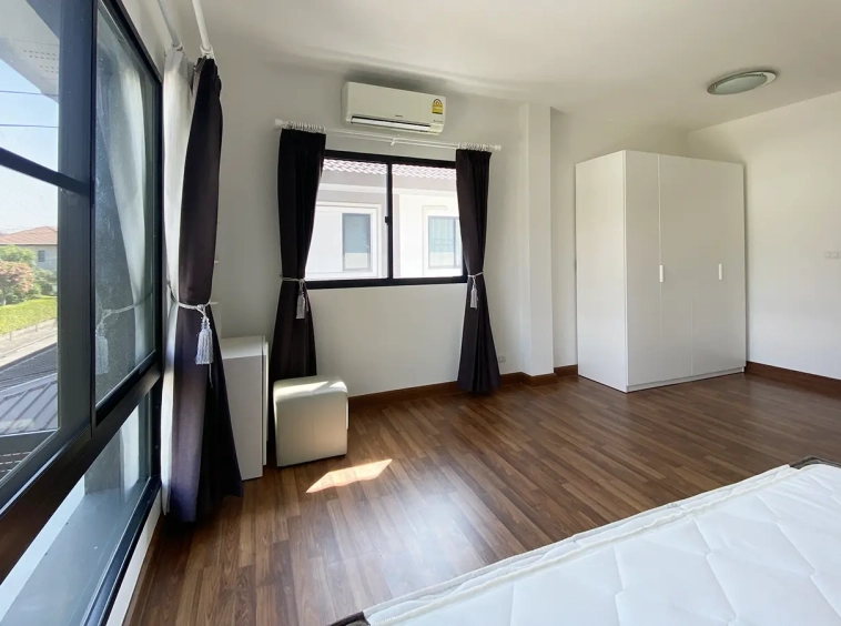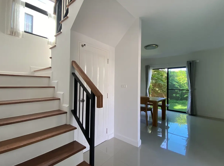 Nice 3 bedroom family home in a cul-de-sac with good size backyard for rent fully furnished in prestige gate estate on the Outer Ring road not far from all the commercial needs such as Homepro, Meta Mall and local fresh markets. About 12 minutes drive to Tonkla Schools, 15 minutes to NIS, 13 minutes to Central Chiang Mai and 30 minutes drive to the airport.