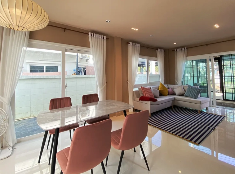 New 3 bedroom home for rent fully furnished in a luxurious gated community in Maerim area of Chiang Mai. Situated less than 5 minutes from Makro and Maerim town, 15 minutes from Prem Intl School and about 20 minutes to Central Chiang Mai and the Bangkok Hospital. There are also plenty of restaurants, cafes and tourist attractions in the area.