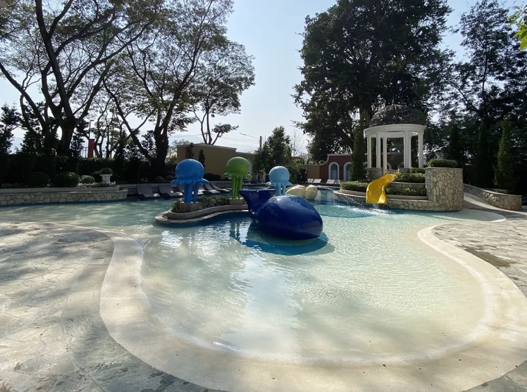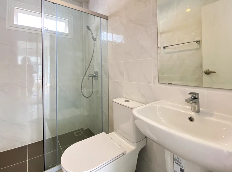 There are 3 bedrooms on the second floor. The master bedroom has a wardrobe, the bathroom has been re-designed and enlarged, and a walk-in shower. The master also comes with a terrace. The other two bedrooms share a family bathroom. All rooms are equipped with a/c and are overall neatly decorated. The estate facilities include wider than usual streets and green area, a beautiful clubhouse with fitness, a game room, a library, a swimming pool with a children's play area and 24-hour security.