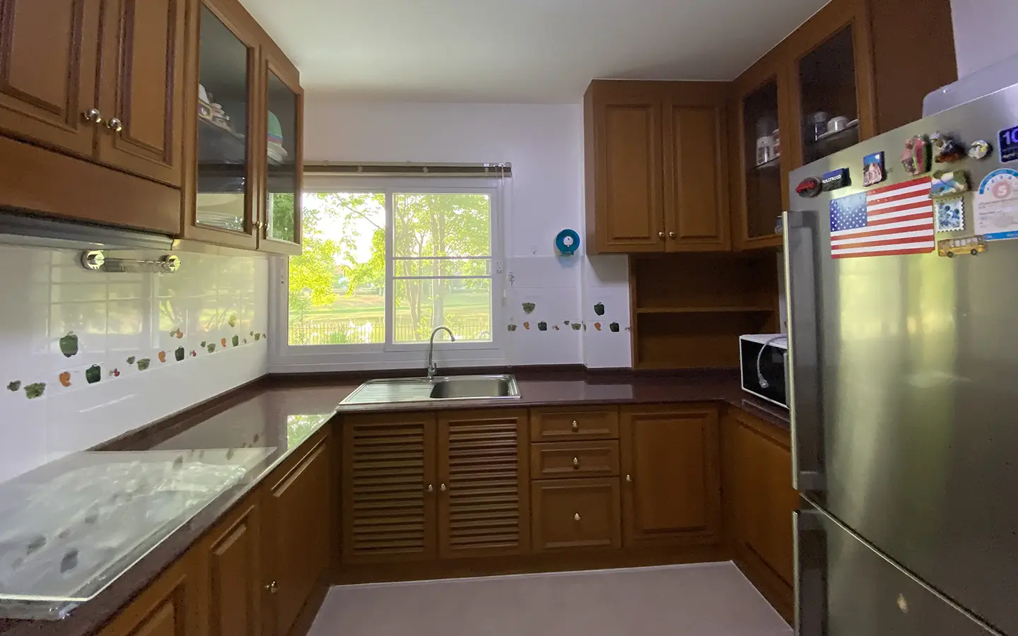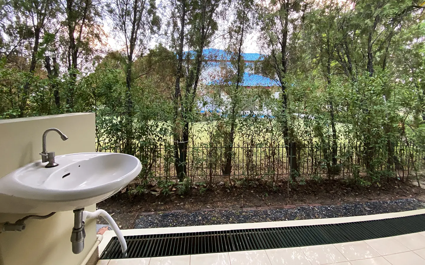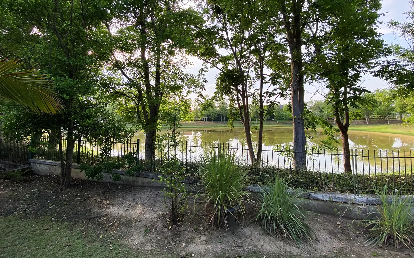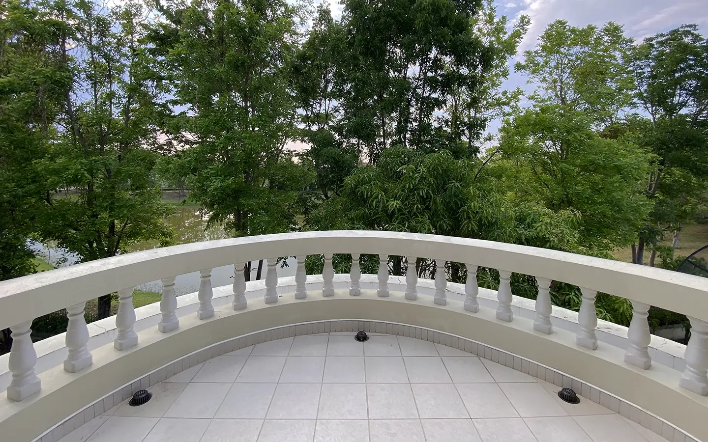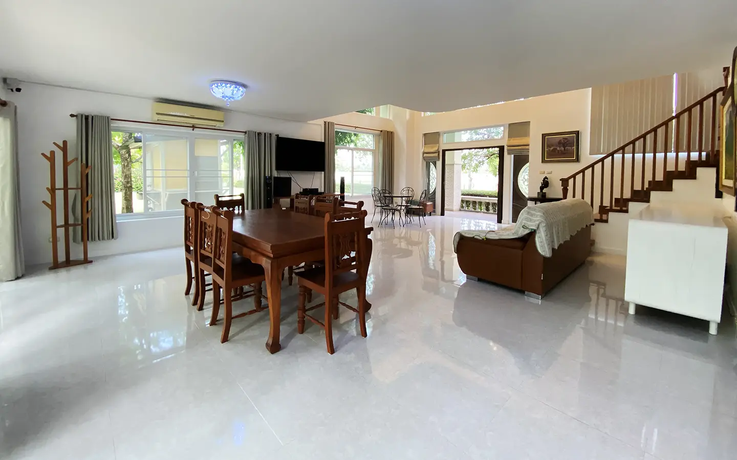 The house has only been used as a vacation home and has recently undergone a renovation and is in great shape. The garden is well-kept and has a large manicured lawn with views of the mountain, and several mature trees and shrubs. A covered carport comes with a storage room attached. Inside, the open plan living area has a partly double tall ceiling, a sitting area, a dining area, a counter bar and through to the Western kitchen, a guest bathroom, a utility room and access to the maid's quarter. There is a large terrace running alongside the living area of the house. At the rear of the house, there is a lake and green area with a terrace to enjoy as well as a small gate access to go for a morning walk.