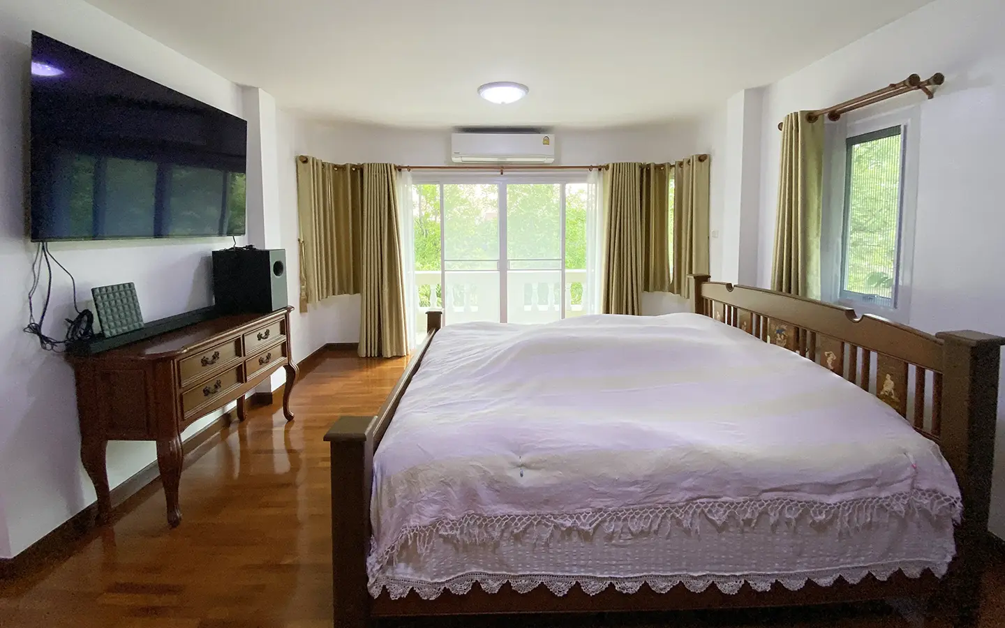 A newly renovated 3-bedroom home on a large plot of land for sale semi-furnished in a well-established gated community in Sankamphaeng area of Chiang Mai. The estate is located about 10 minutes drive from Sankhampaeng town and close to the hospital and fresh market. About 25-30 minutes drive to Chiang Mai town and the Chiang Mai International Airport.