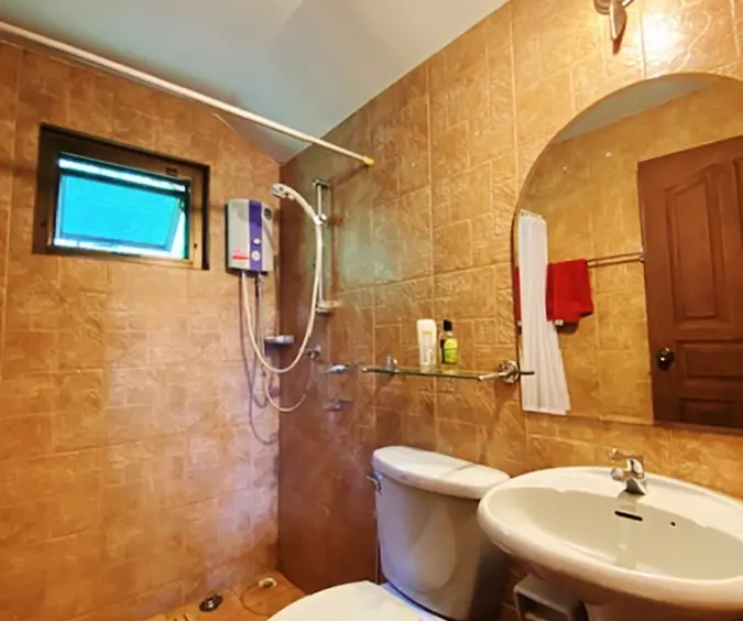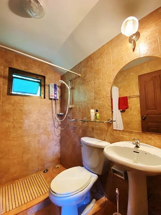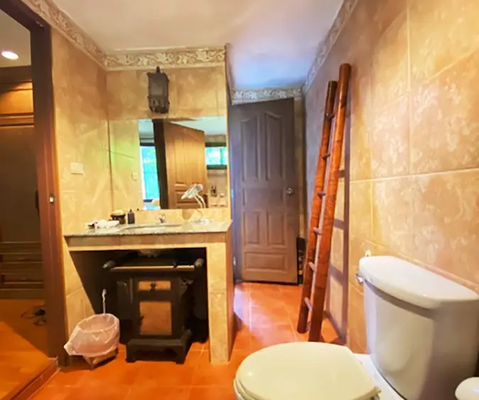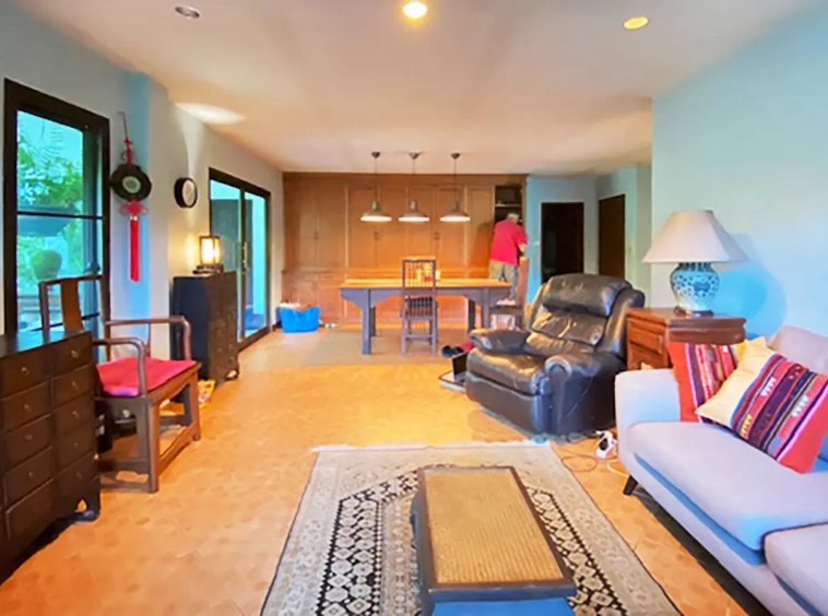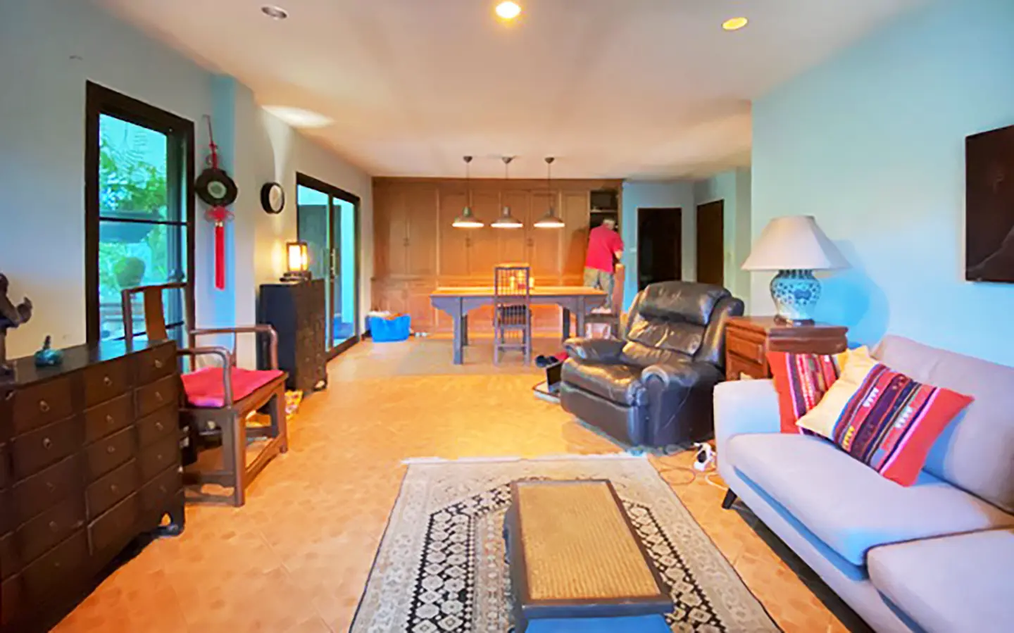The covered porch is protected from the rain and has a charming outdoor kitchen, dining, and seating area. Because of the elevation of Pong Yang, It is cool and enjoyable to eat outside year-round.