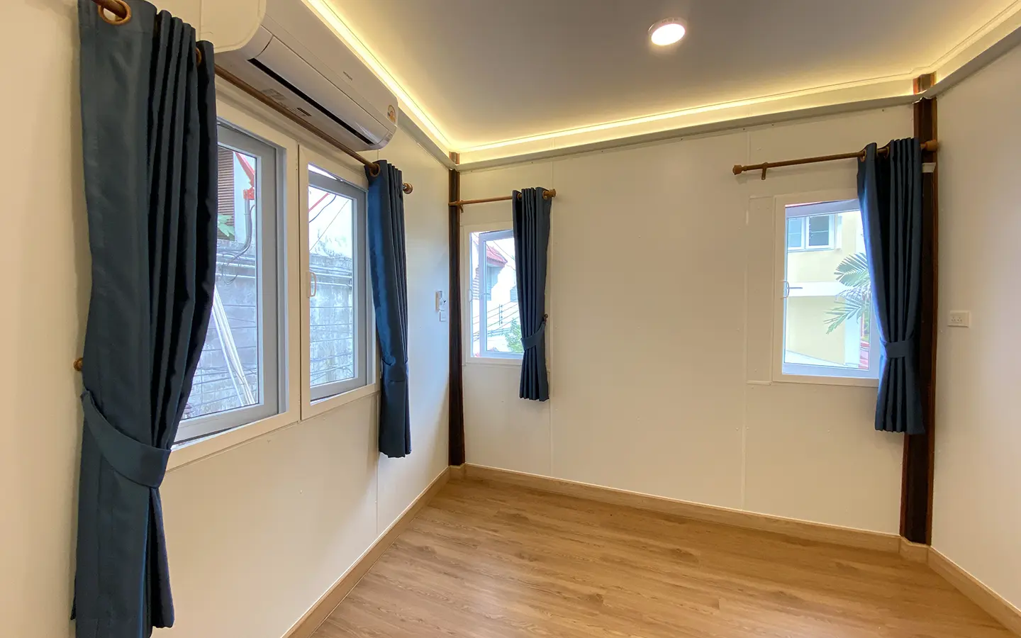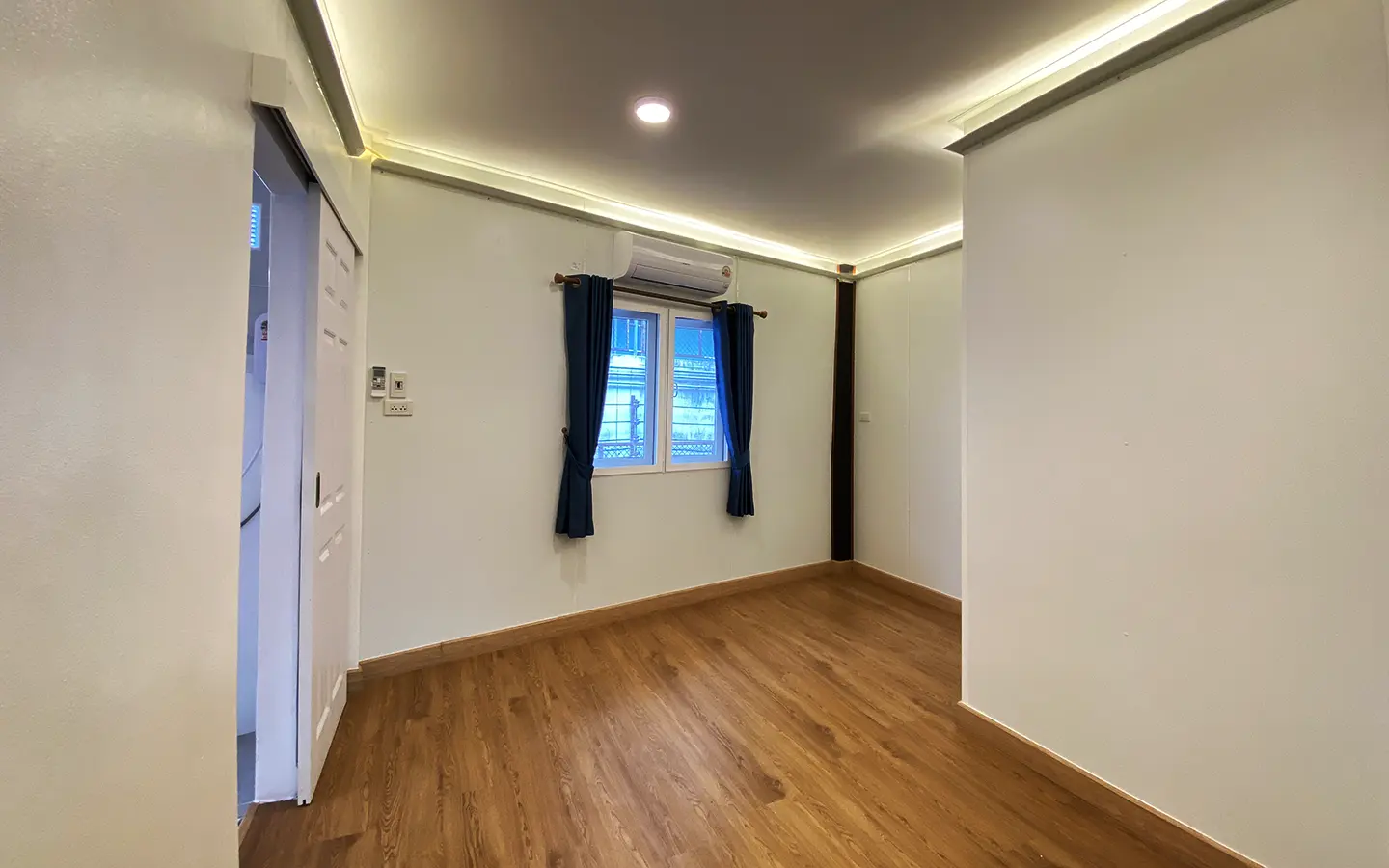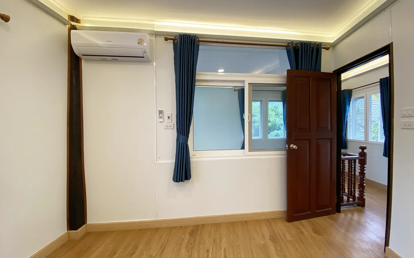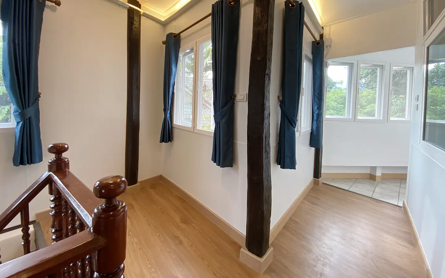 Upstairs, there are 2 guest bedrooms sharing a family bathroom and an ensuite master bedroom. Beautiful laminate flooring. All rooms come with a/c and options of uplight or downlight as well as a sensory lighting system in the bathrooms. The landlord has kept several of the original wood features adding the rustic charm to the house. There are many glass windows to let natural light in. The nature surrounding the house as well as the sense of the community give this property a welcome and comfortable local feel. A must see.