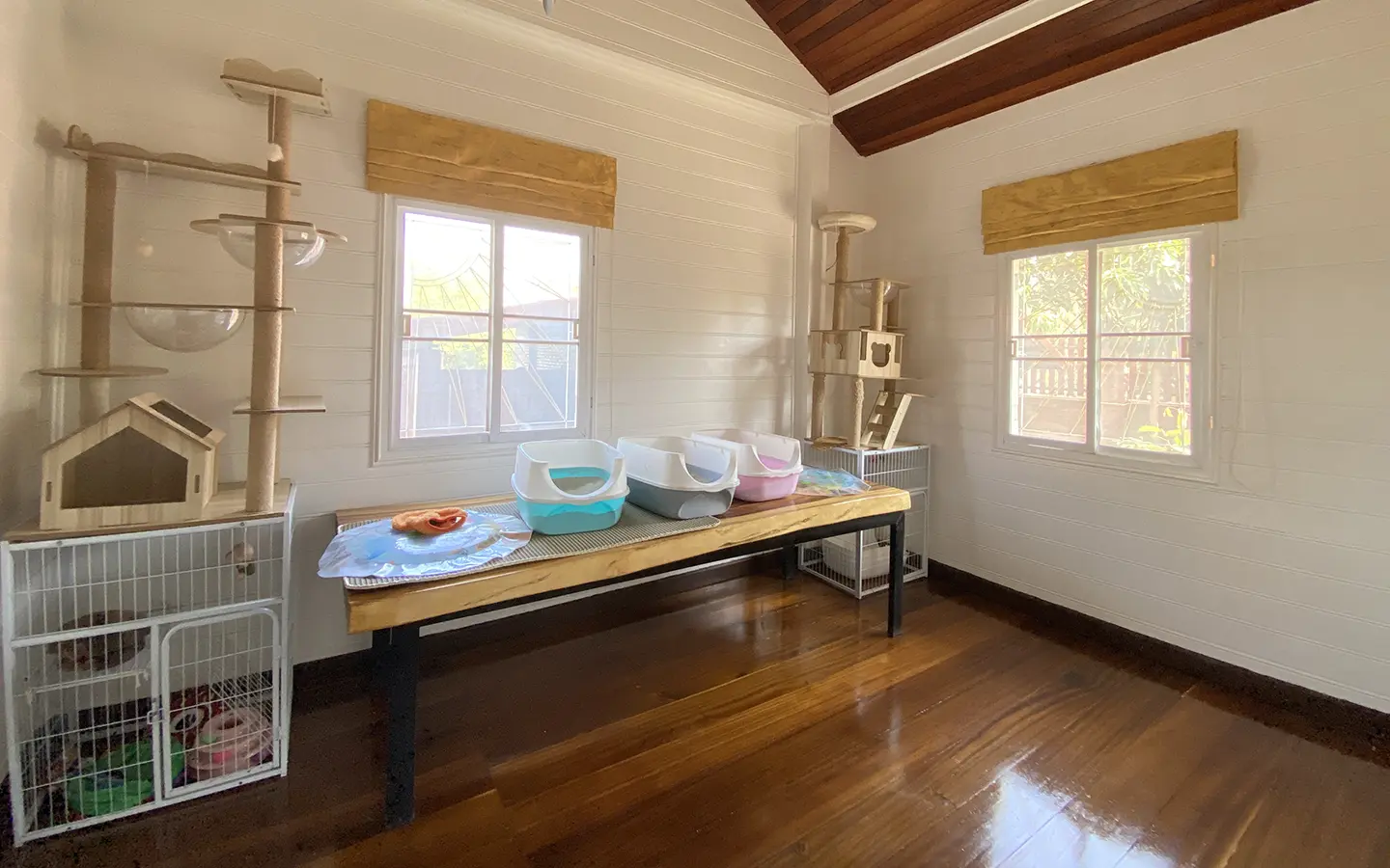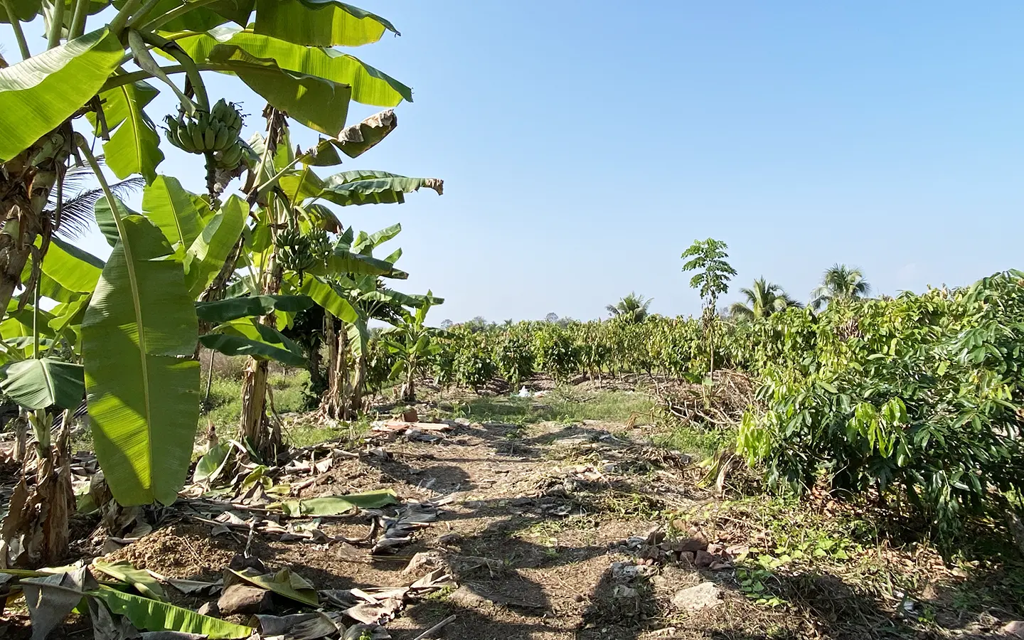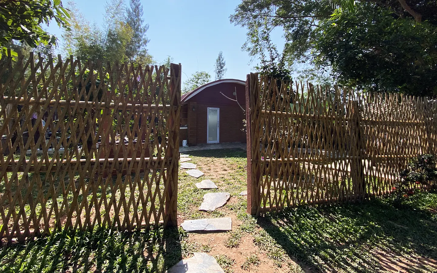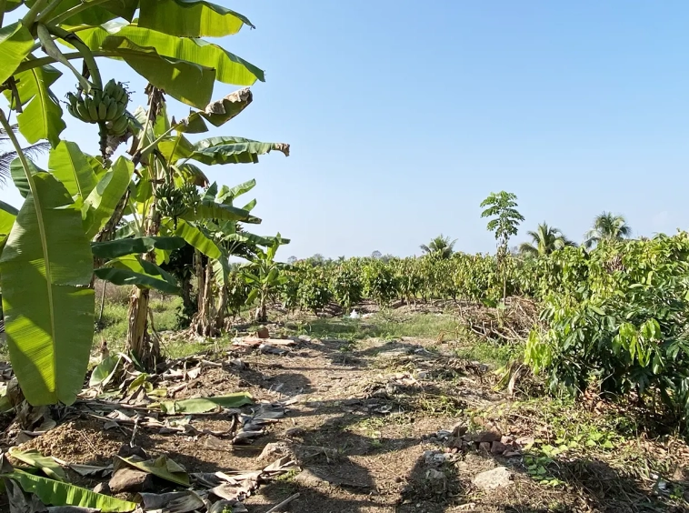 The workshop building houses all gardening tools and equipment. The vegetable garden consists of vegetables, bananas and cocoa plants.