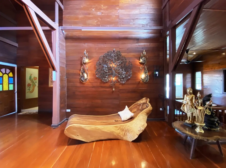 The uniquely designed furniture included in the sale consists of valuable Chamchaa, Teakwood, Rosewood and Makha wood. The property offers investment potential such as a resort or turn into a small resort or a retirement home. There is enough land to install a swimming pool and/or build additional houses.