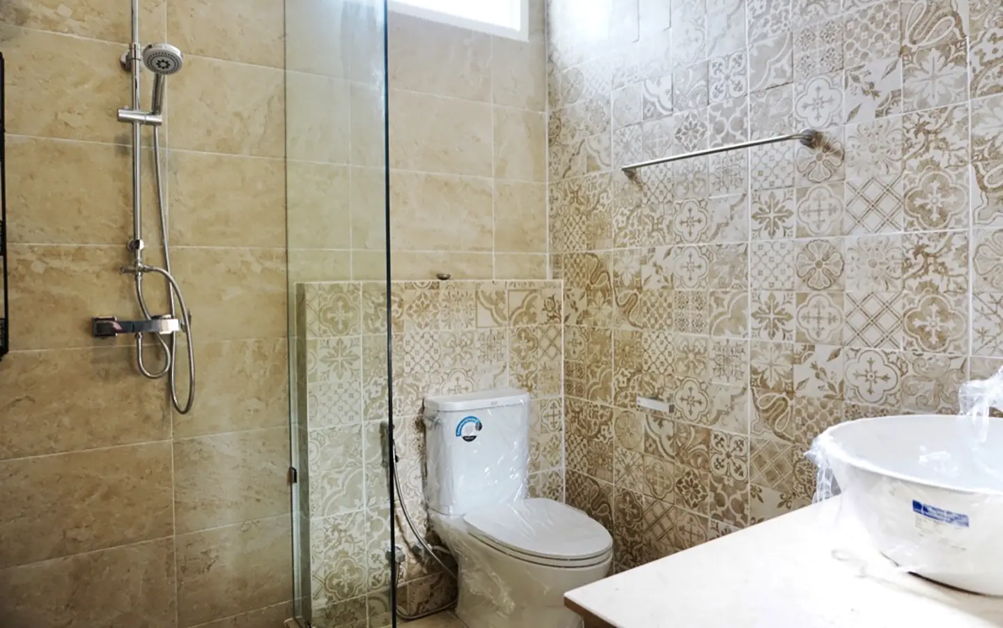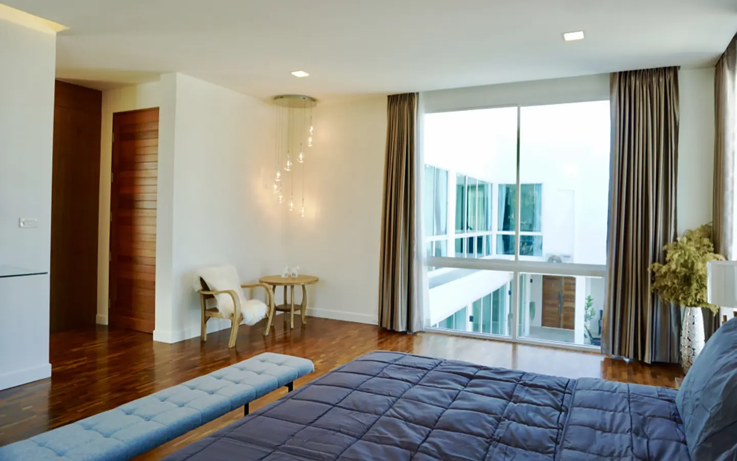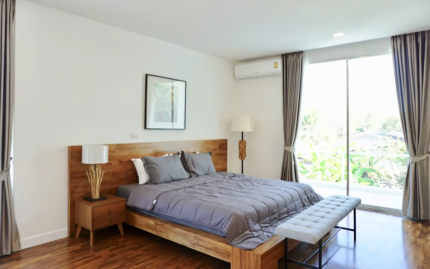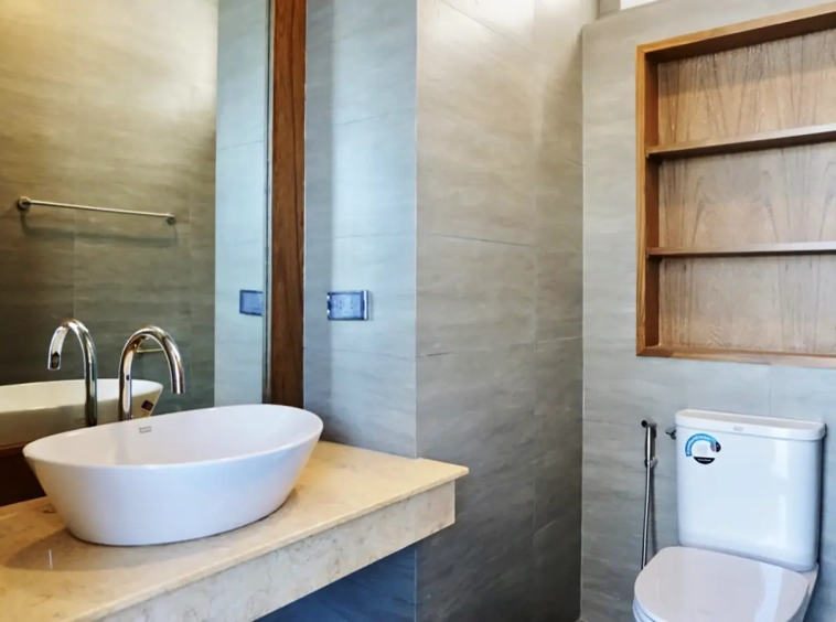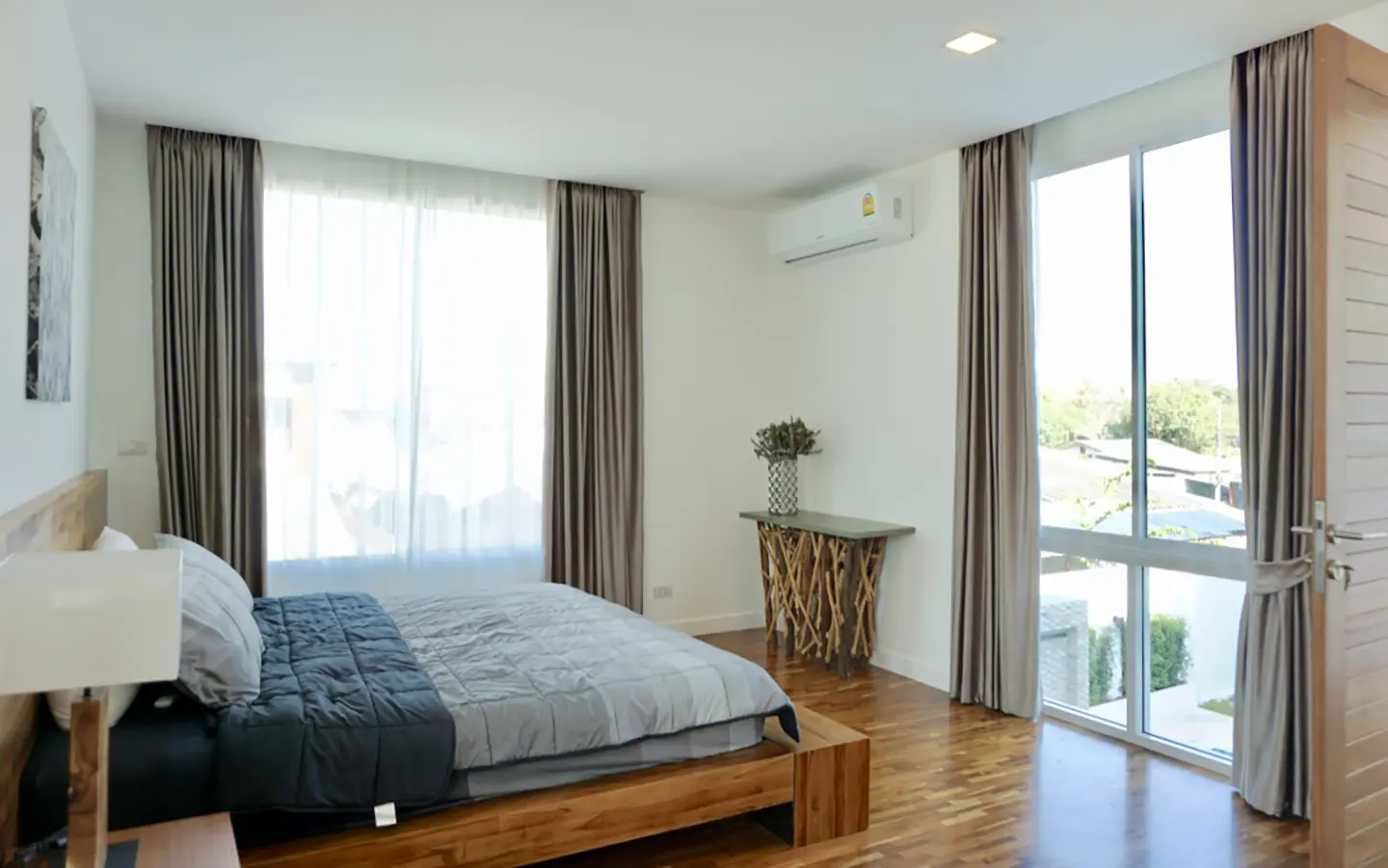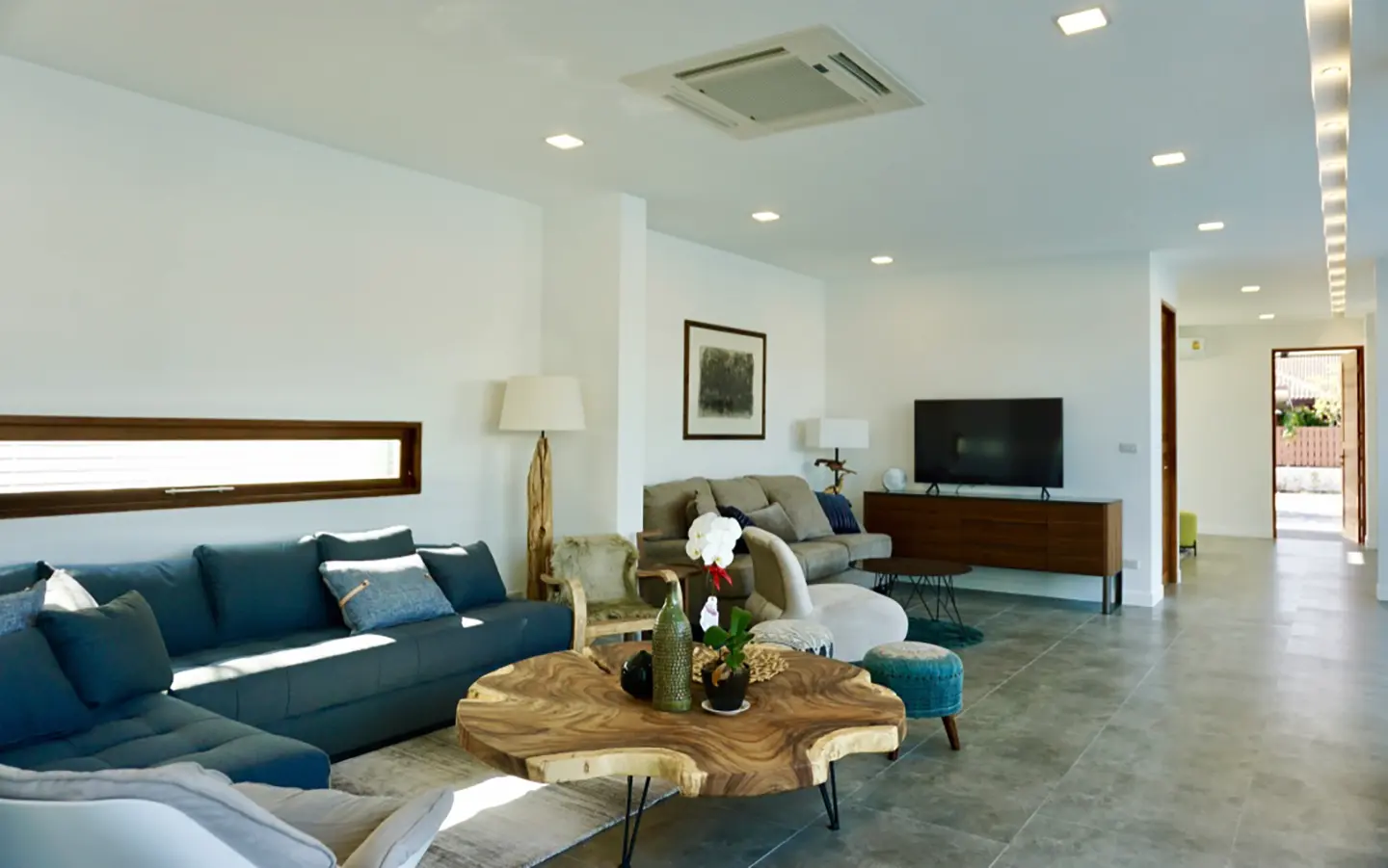 Upon entering the house, there is a hallway with a sitting area and staircase to the second floor. Then there is the living room, which comes with cassette A/C, with all-glass doors open alongside and offering a full view of the pool. The L-shape floor plan leads to the first bedroom, which is en-suite with a shower, then to the large fully fitted Western kitchen with dining table, all still with a view of the pool.