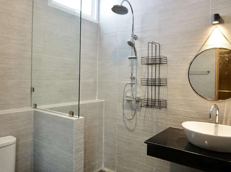 The fully fenced property has an automated gate leading to the covered carport with space for two cars. The front yard is nice and spacious. There are two entrances, one straight to the poolside area and one to the house. A deck area around the pool and a guest bathroom with a shower.