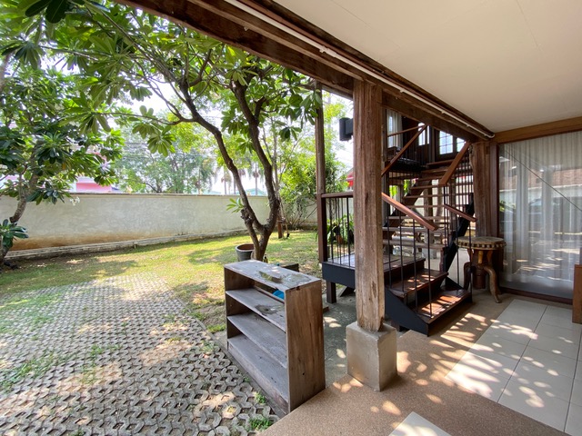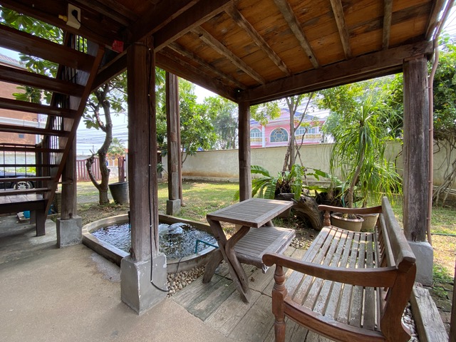 Uniquely charming Thai-style wooden house for sale semi-furnished in San Klang area of Chiang Mai. Located on a side street less than 10 minutes from the main road with a local fresh market within a short driving distance and about 25 minutes from the airport.