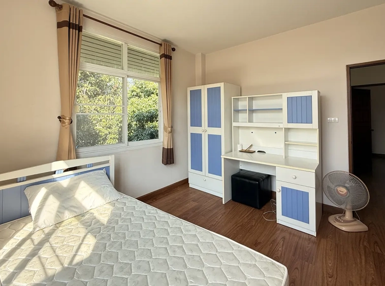 This beautiful two-storey corner home offers privacy, space, and a bright airy atmosphere in a highly convenient location. It is approximately 20 minutes from Central Festival Chiang Mai, Bangkok Hospital Chiang Mai, Index Living Mall Chiang Mai, and Makro Chiang Mai. Mill Hill International School Thailand is just 23 minutes away, while Meechok Plaza and Ruamchok Mall are only 12 minutes away. Tonkla School Chiang Mai can be reached within 6 minutes.