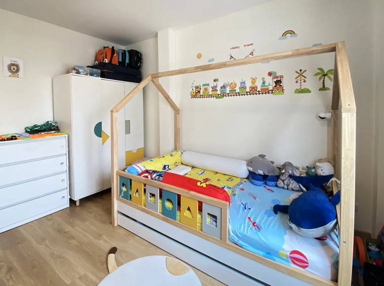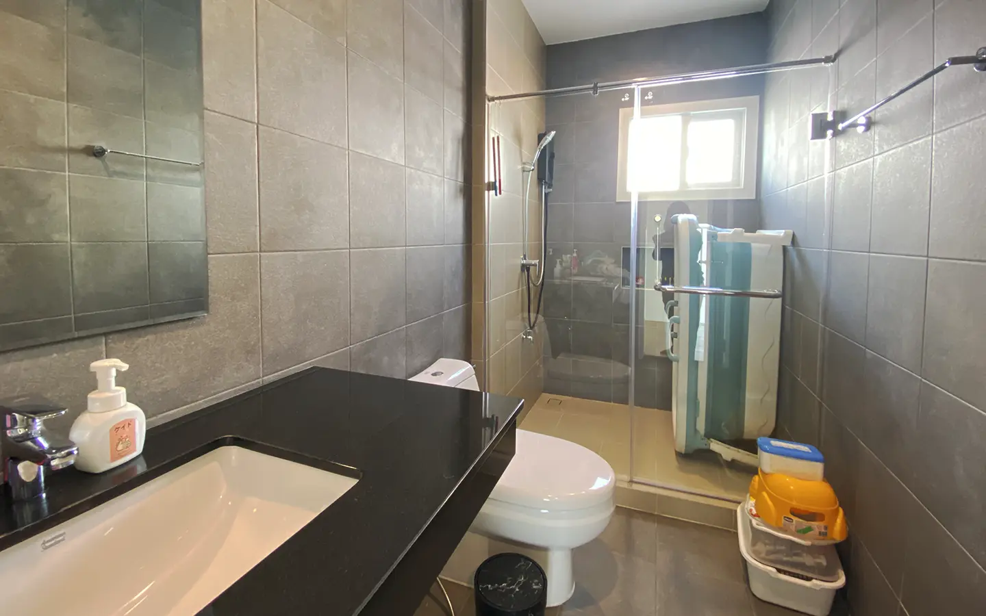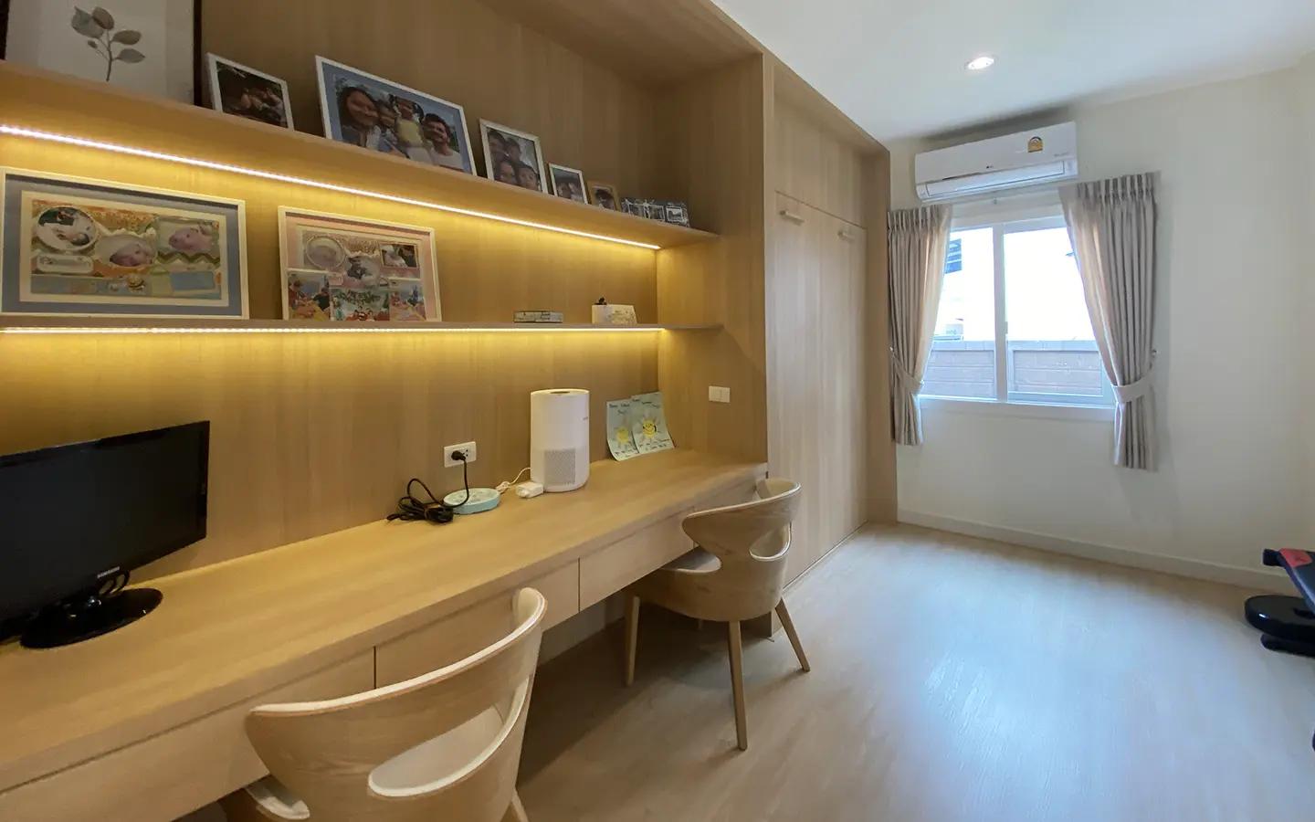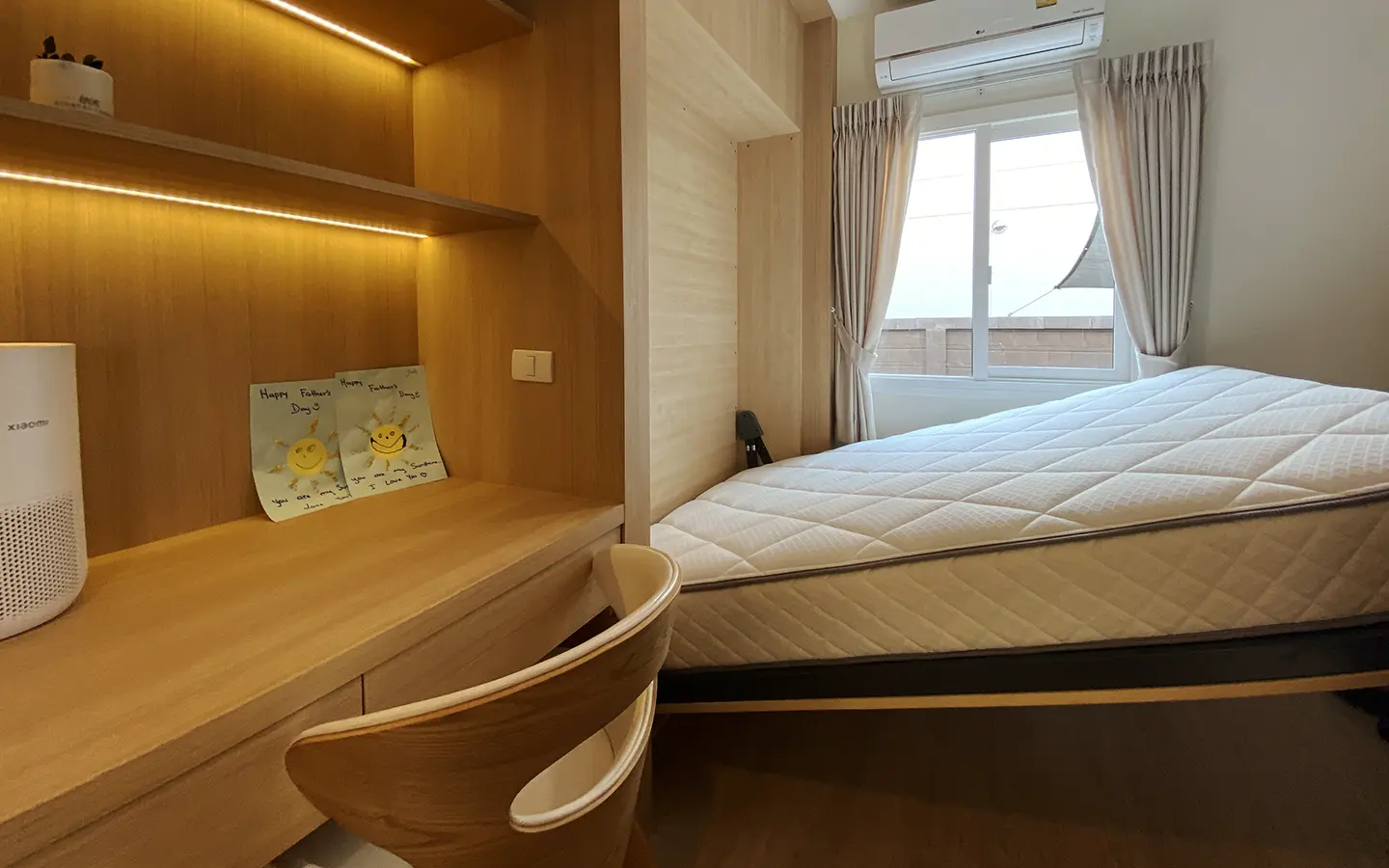 On the second floor - there are 3 bedrooms and 2 bathrooms, the children's beds won't be included in the price. The 2 guest bedrooms have a shared bathroom. The master bedroom comes with a study corner, a built-in walking closet and an en-suite bathroom.