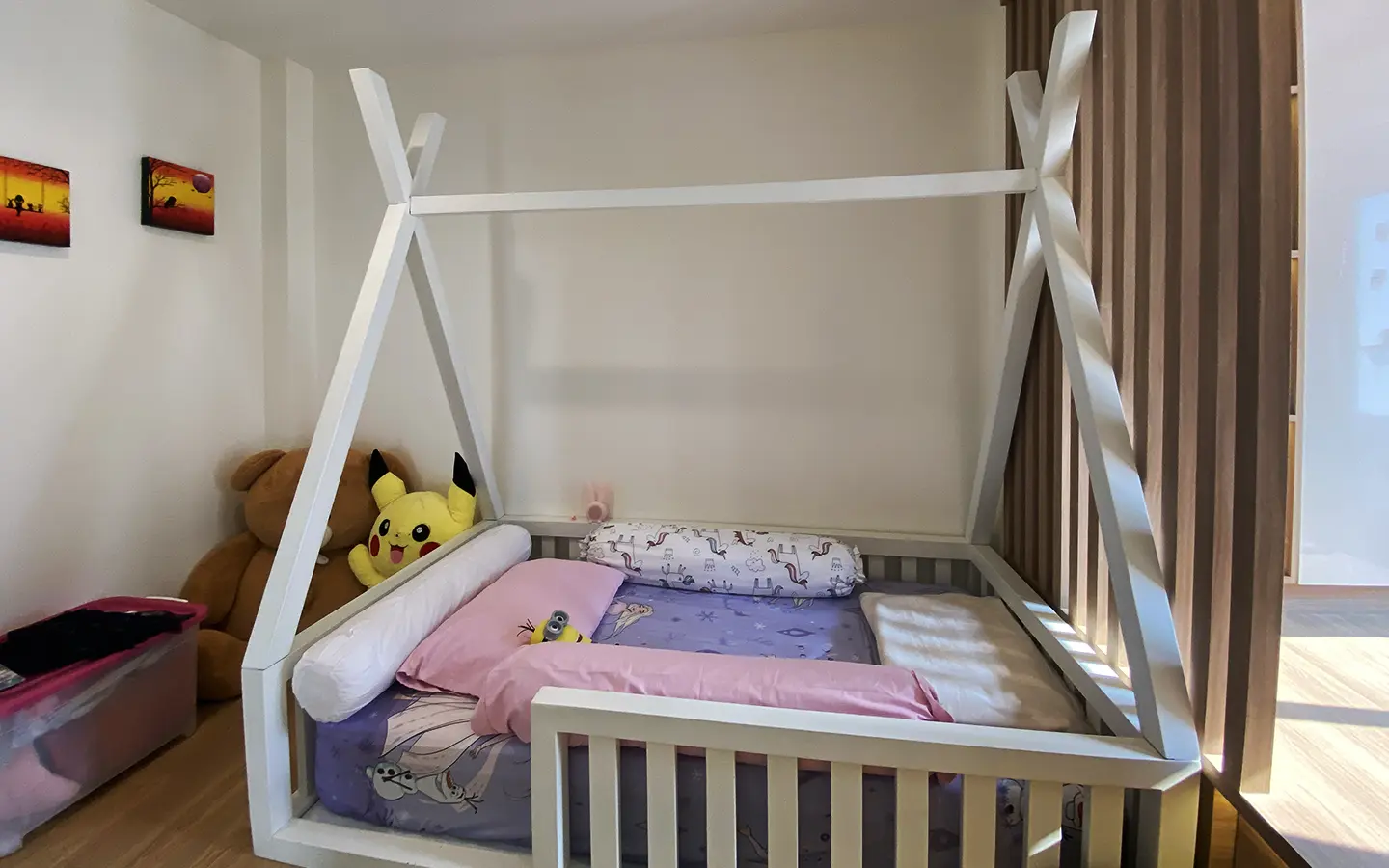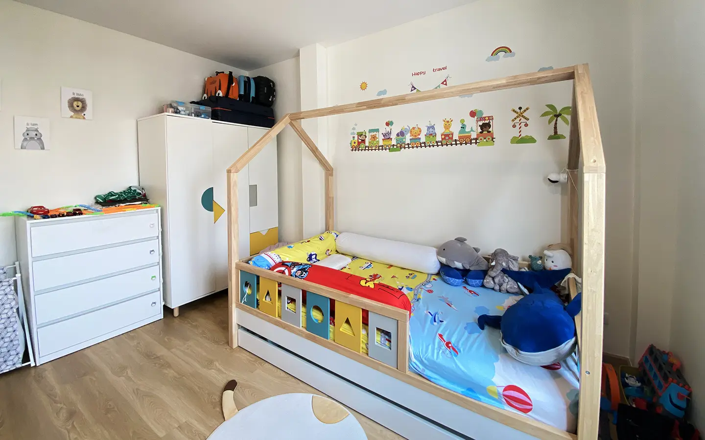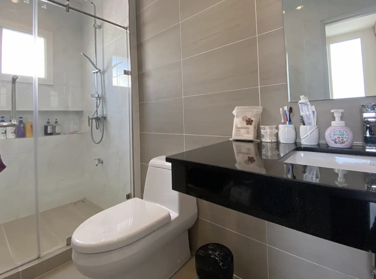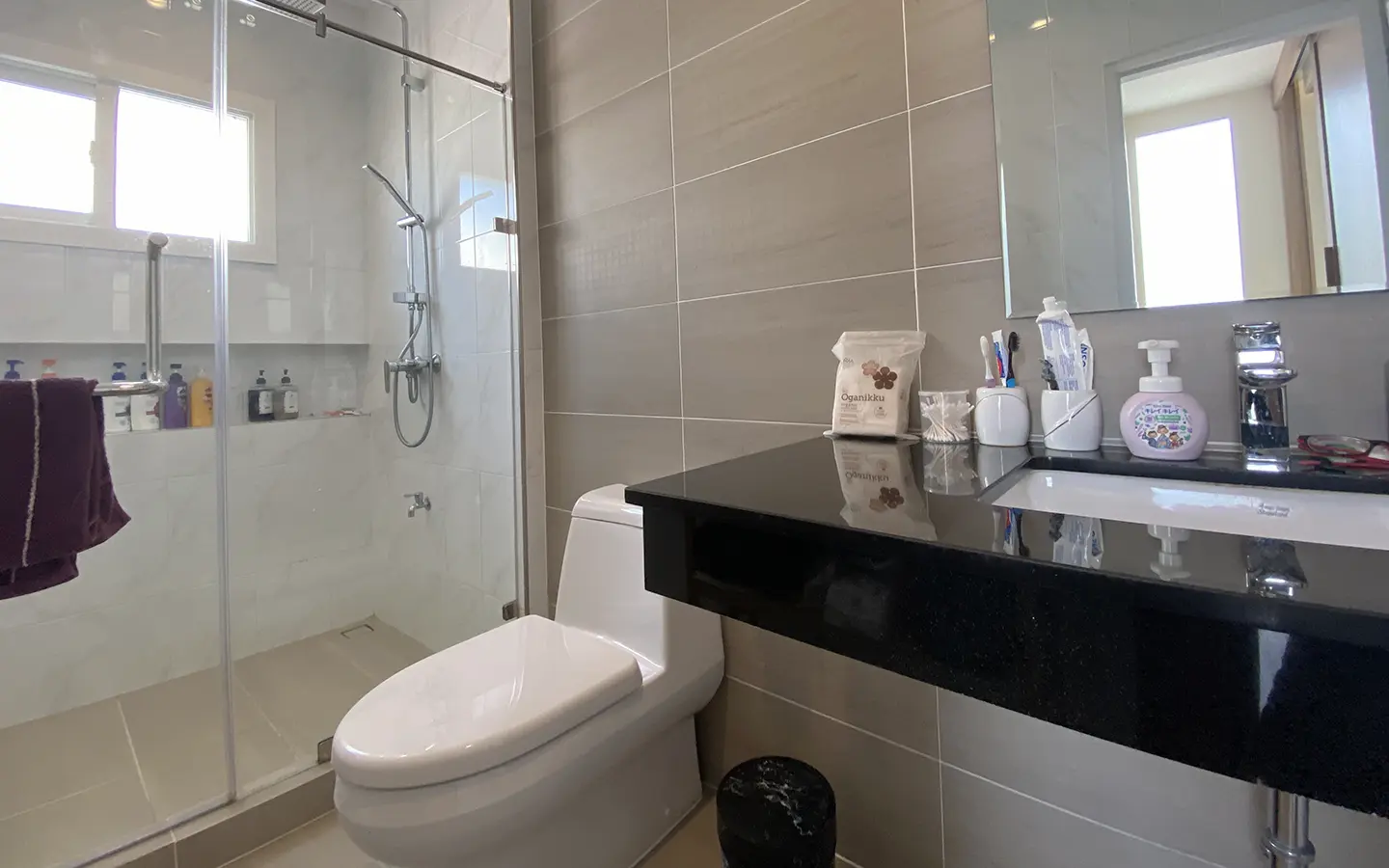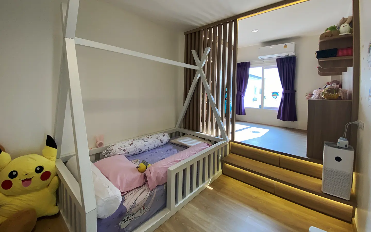On the second floor - there are 3 bedrooms and 2 bathrooms, the children's beds won't be included in the price. The 2 guest bedrooms have a shared bathroom. The master bedroom comes with a study corner, a built-in walking closet and an en-suite bathroom.