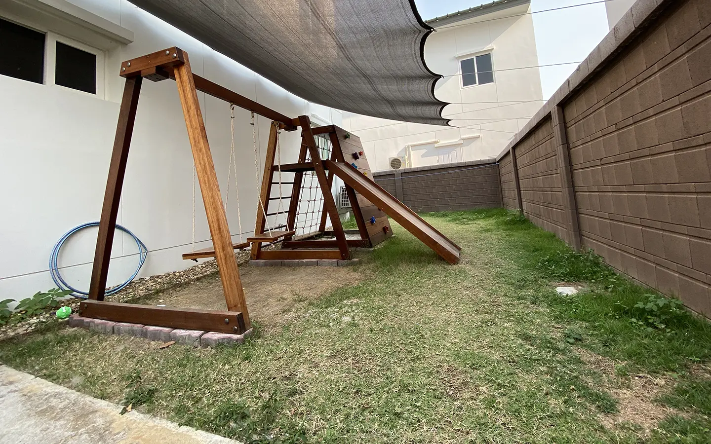 Outside the house, there is a small garden which sets up a small playground and easy side of garden to maintain. There are 2 covered car parks and one space for an uncovered car park.