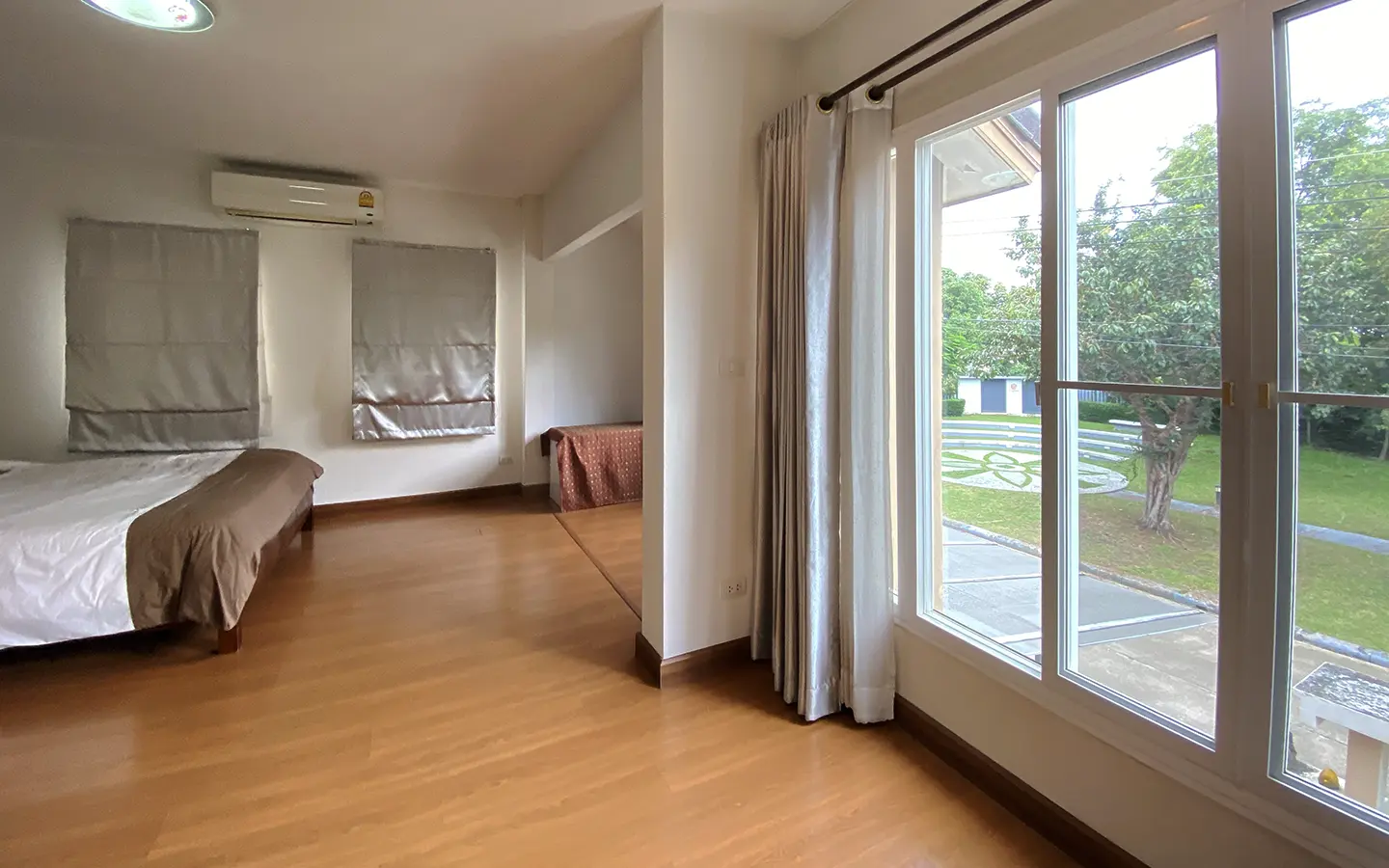 A 4 bedroom home for rent fully furnished in a reputable gated estate in Namprae area of Chiang Mai. Located in a countryside off the Canal road, the estate is within 10-15 minutes drive to several international schools such as Panyaden, Lanna Intl and Chiang Mai Montessori. Kad Farang is 10 minutes away as well as the fresh market. Many restaurants, cafes and tourist attractions within easy driving distance. About 25 minutes drive to the airport.