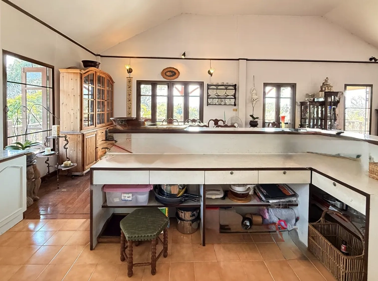 The separate single-storey wooden guest house features a charming front veranda. Inside, there is a living area, dining space, pantry, shared bathroom, and one bedroom. The folding wall-style doors can be fully opened, seamlessly connecting indoor and outdoor living spaces.