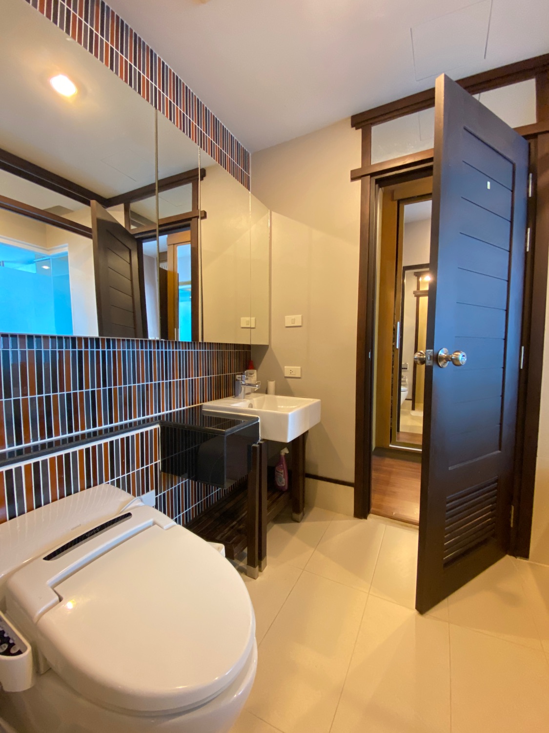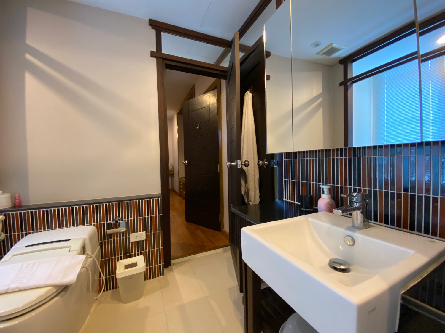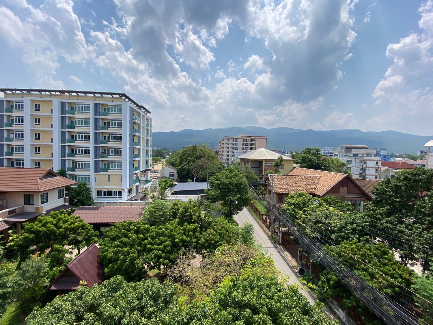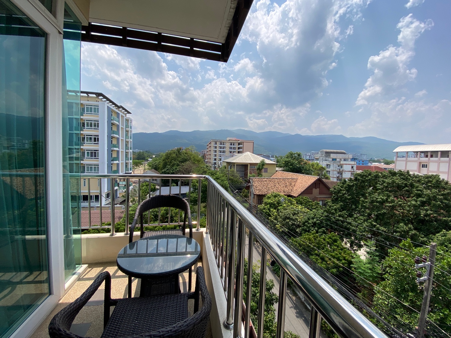 The unit is a whopping 114 Sqm and is located on the 5th floor and comes with a digital door entry. It has a very tall ceiling providing plenty of natural light and stunning views of Doi Suthep mountains. To the left is the fully fitted Western kitchen with plenty of cupboard units, a shared guest bathroom with a bathtub and access to the first bedroom that comes complete with a built-in closet. Facing the mountain view is the dining area which can also be used as a working area and a sitting area with door access to the terrace. The master bedroom comes with a built-in wall unit and closet and is ensuite with a bathtub. Spacious corner units like this are rare to come to the market and must be viewed to appreciate.