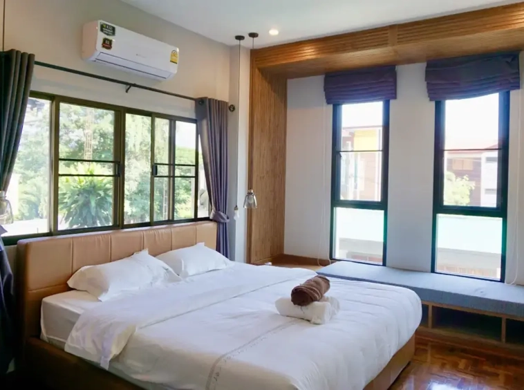 The house is located in a quiet community a stone throw from Central Festival Chiang Mai. Situated just off the ring road, it is easy to reach the airport and all the other amenities such as schools, hospitals, shopping and other parts of the city.