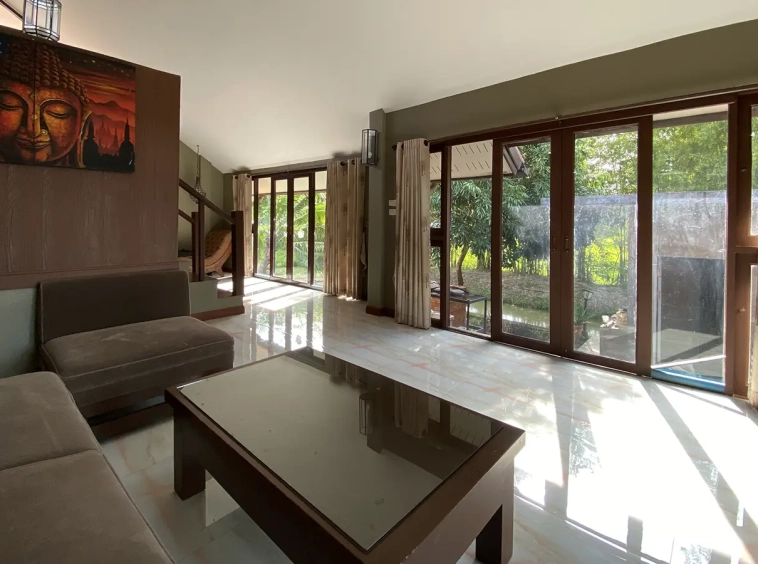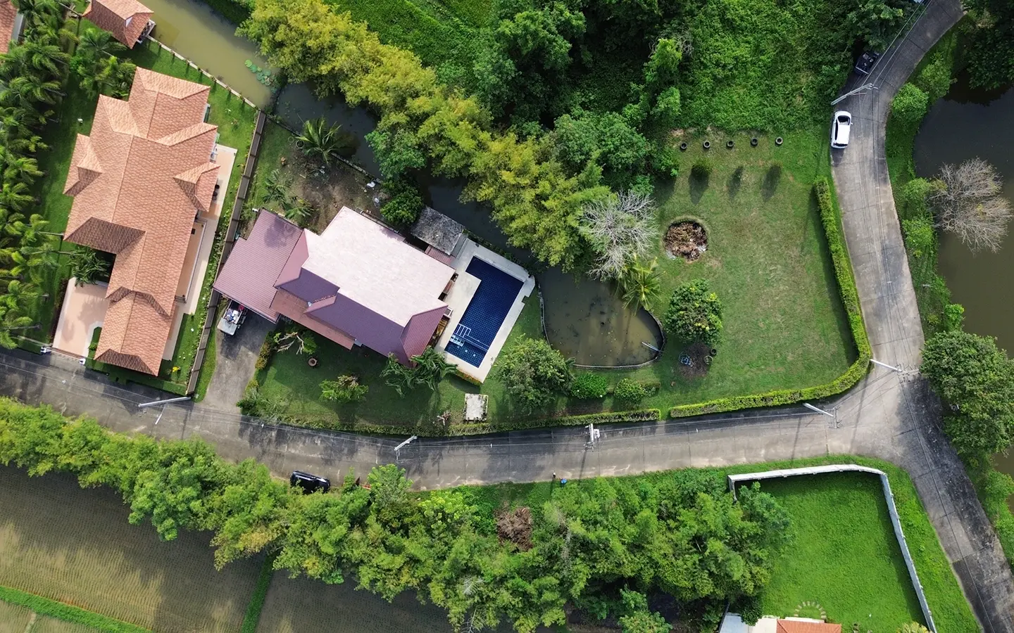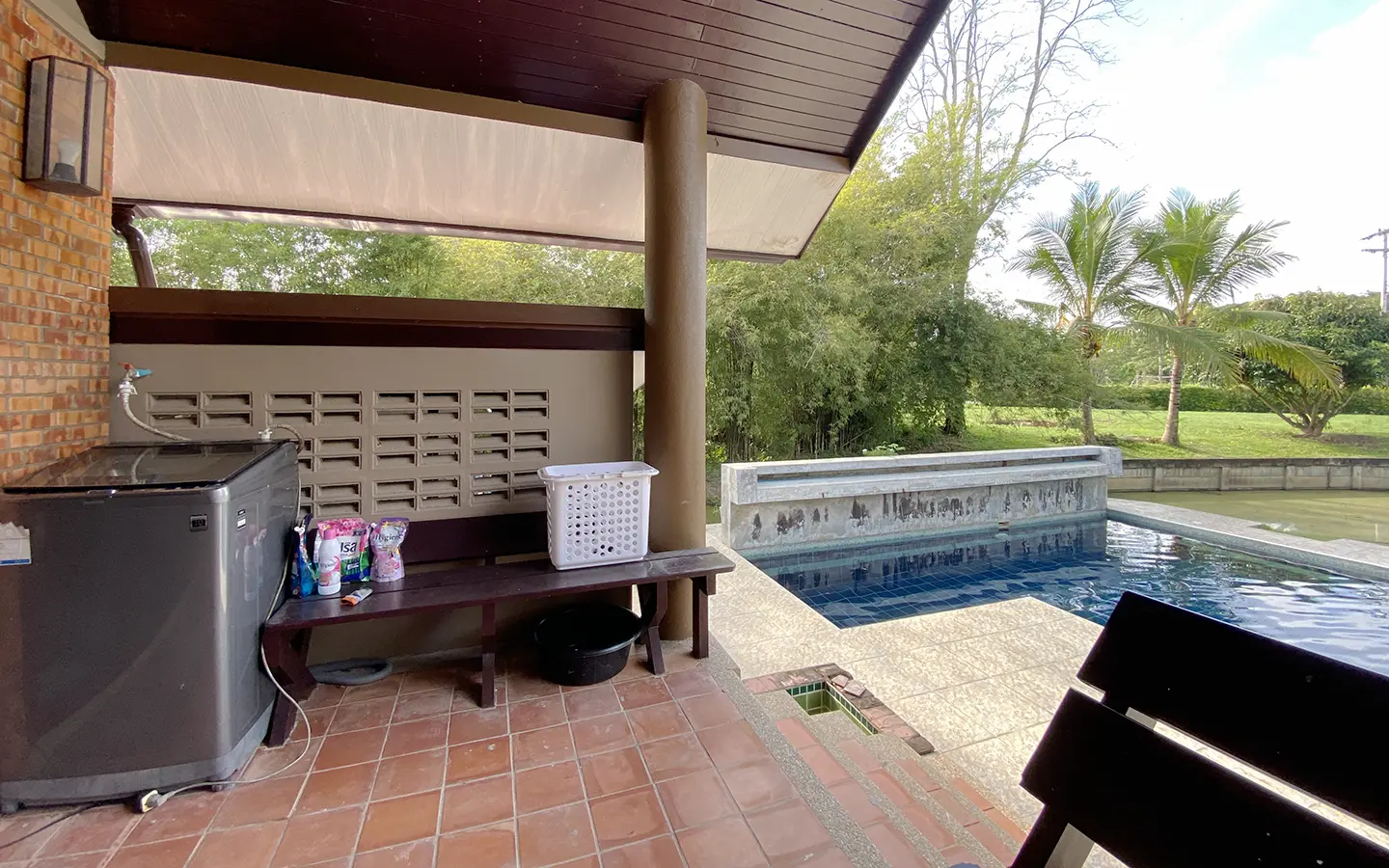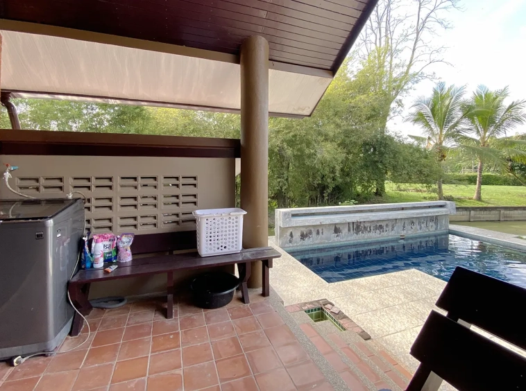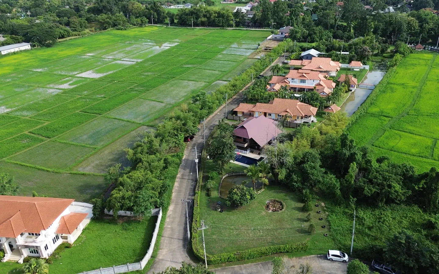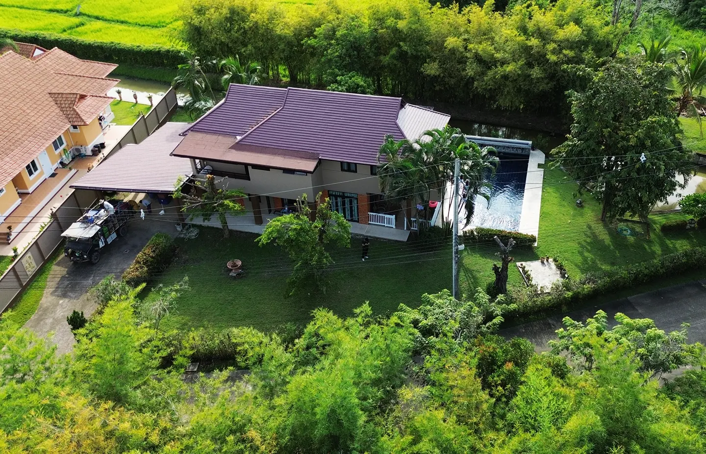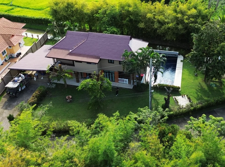 Newly renovated house with swimming pool, extra plot of land for rent or sale in Doi Saket area of Chiang Mai. Situated in a peaceful countryside with rice paddy and mountain views, it is less than 30 minutes to drive to Rimping, Central Festival and downtown Chiang Mai and 45 minutes to the airport. The markets, hospitals, and several restaurants are within close driving distance.