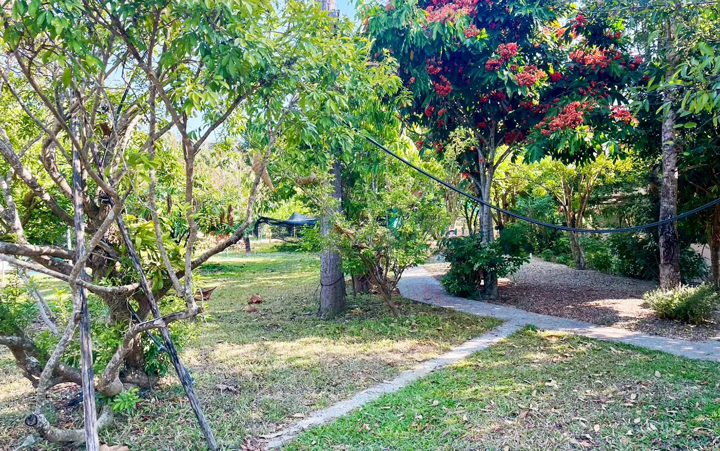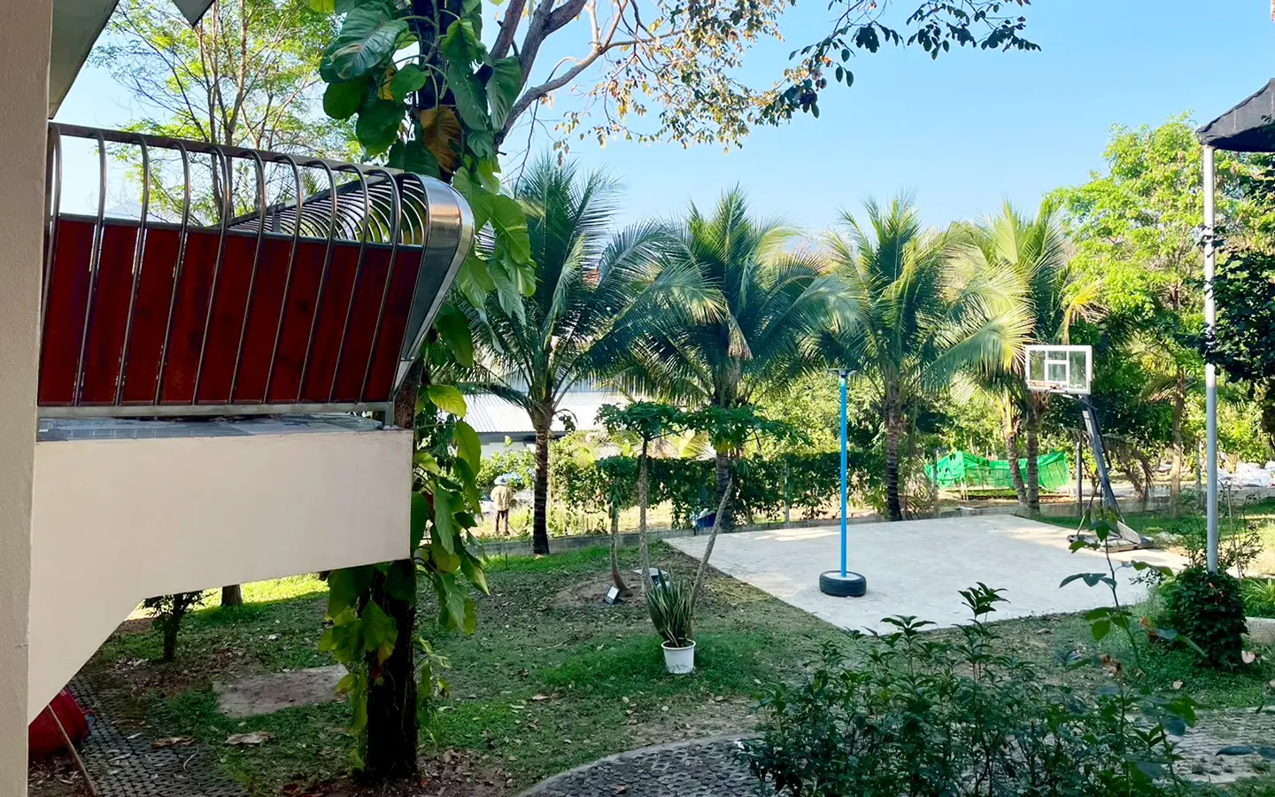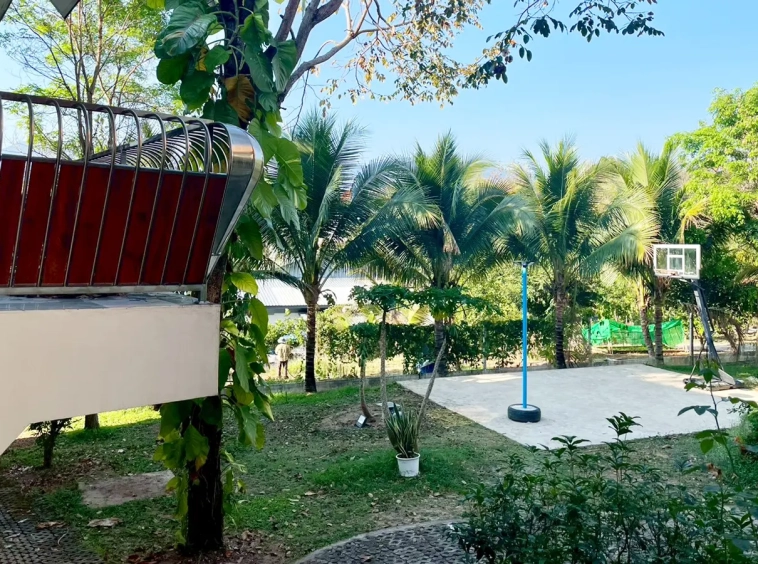 The house includes an open-air basement area offering ample space that can easily be converted into an additional sitting or recreational area. The front garden also features a basketball court. There are many mature eatable trees around the properties.