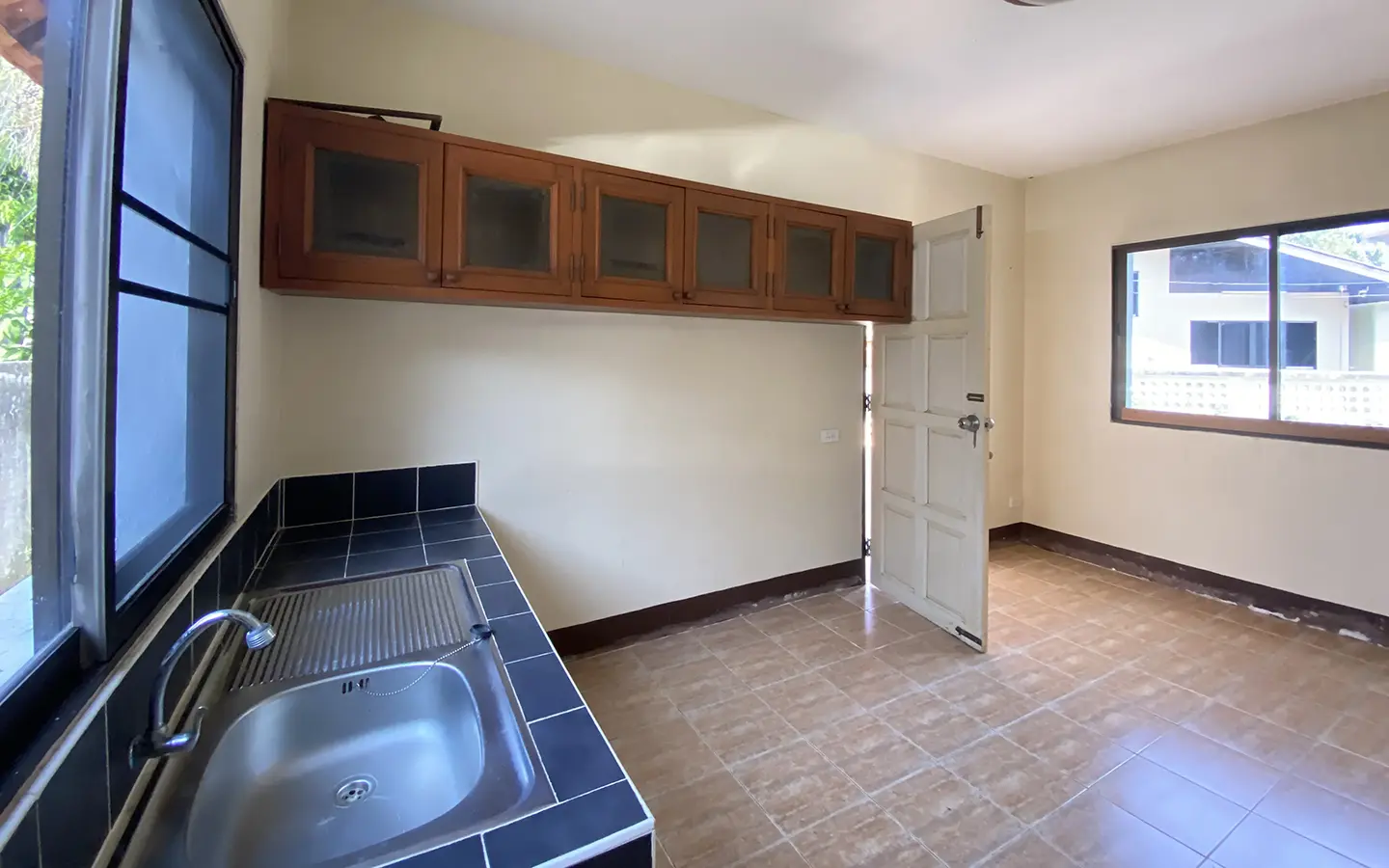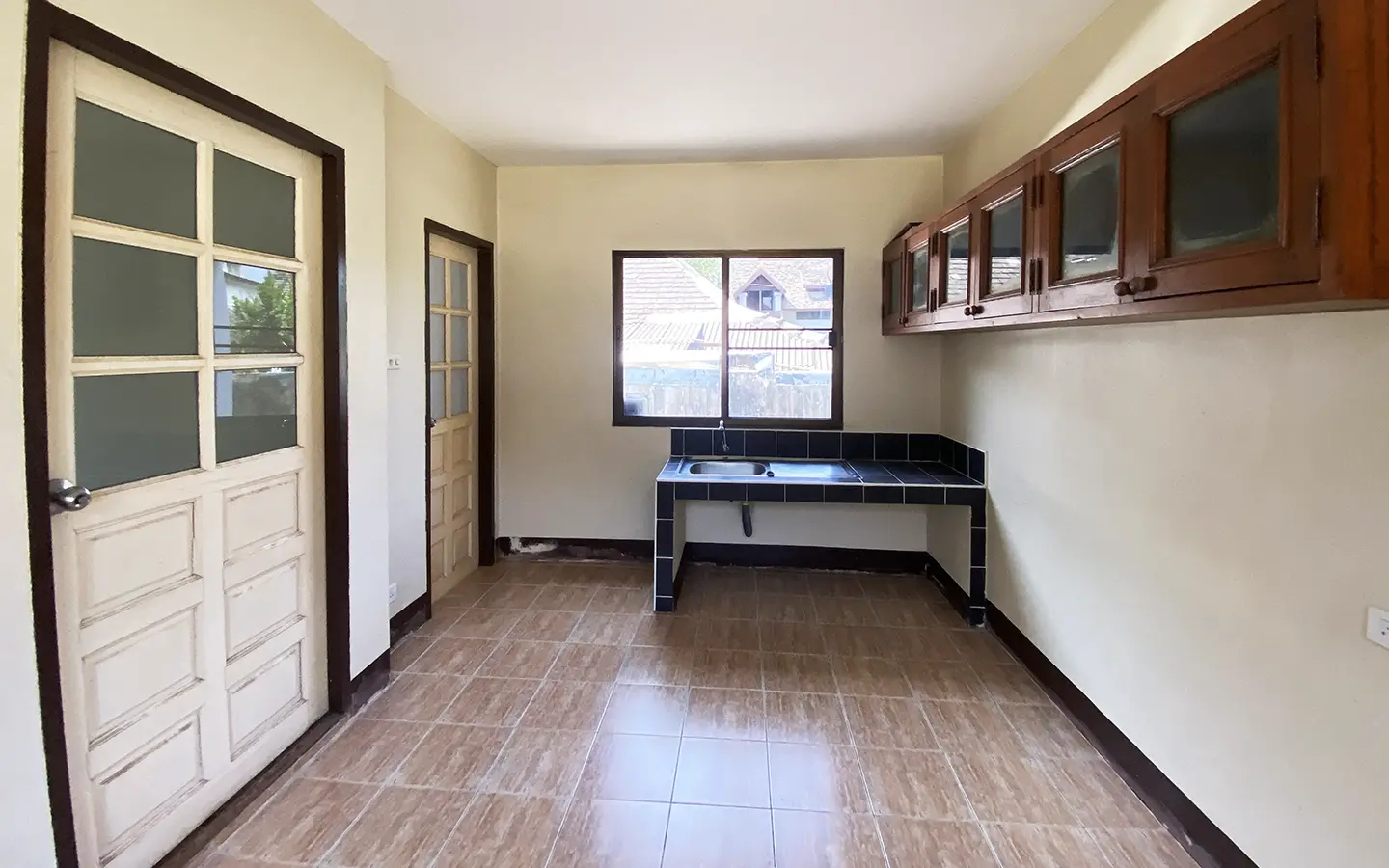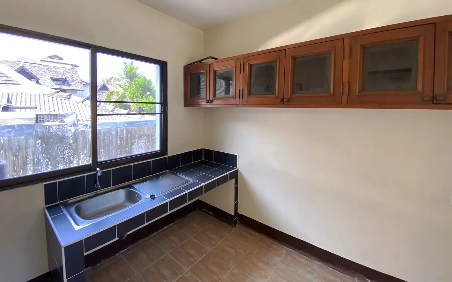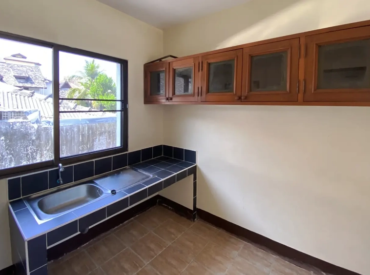 Centrally located, custom-built one-bedroom house with a good-sized plot of land for sale, unfurnished. Situated on a private road in Suthep area about 2.5km from the airport and less than 10 minutes walk to Central Airport Plaza. This house has not been lived in for a while, but it is looked after and is clean and ready for the new owner to give it some TLC.