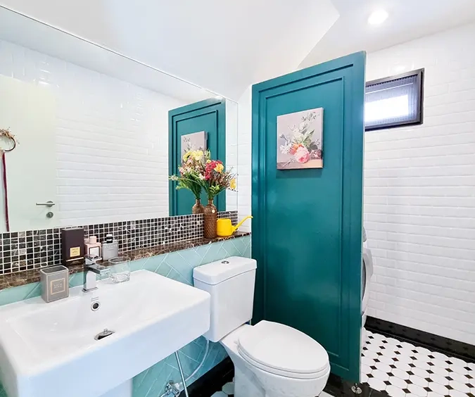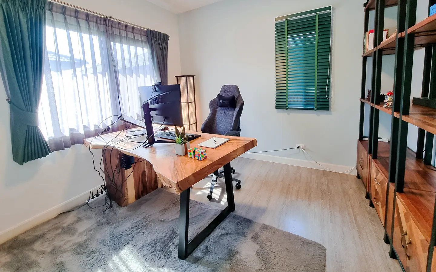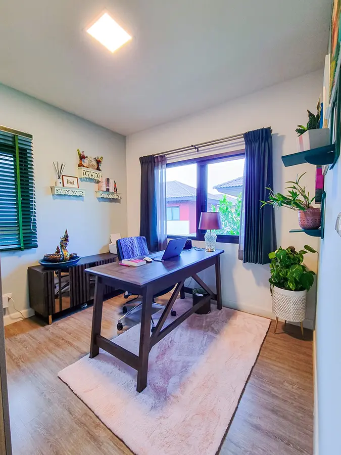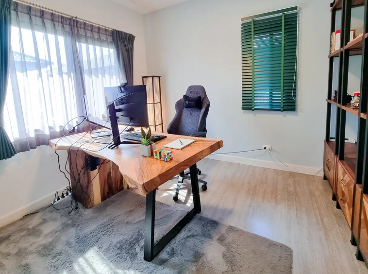 The second floor consists of a bedroom with a walk-in closet, a guest room which is currently being used as a study, another office and a bathroom with shower. The house is tastefully decorated throughout. It is suitable for a couple or a single person. Smoking is not allowed inside the house, pets are also not allowed.