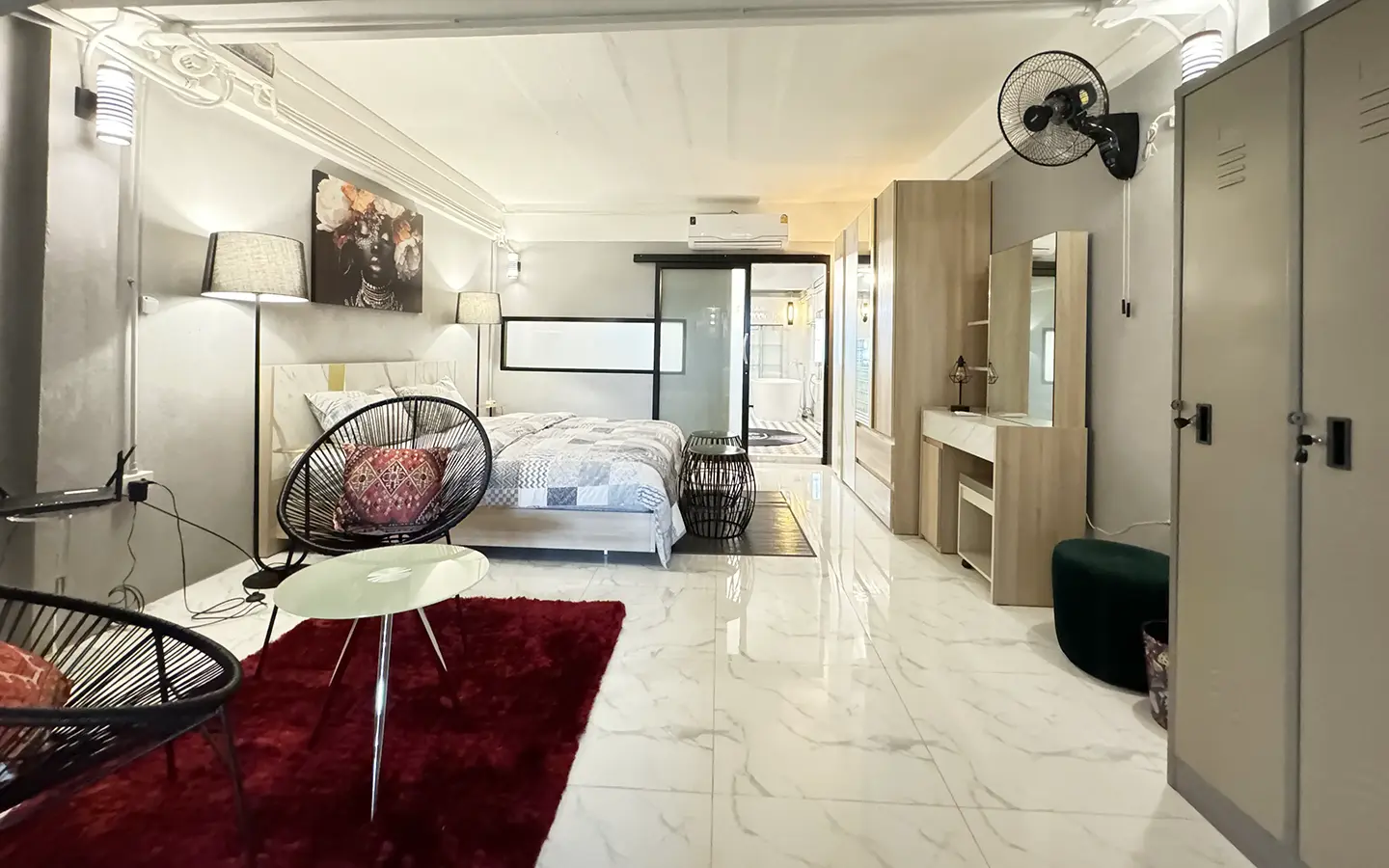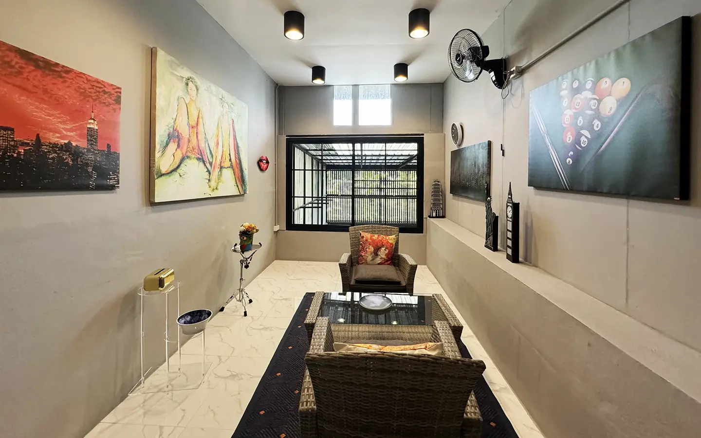 Centrally located funky and modern 2 bedroom townhome for rent or sale fully furnished. Situated within walking distance to Maya Shopping Mall, Nimman area and takes approximately 15 mins from the Chiang Mai Airport. This newly renovated townhome must be seen to be fully appreciated.
