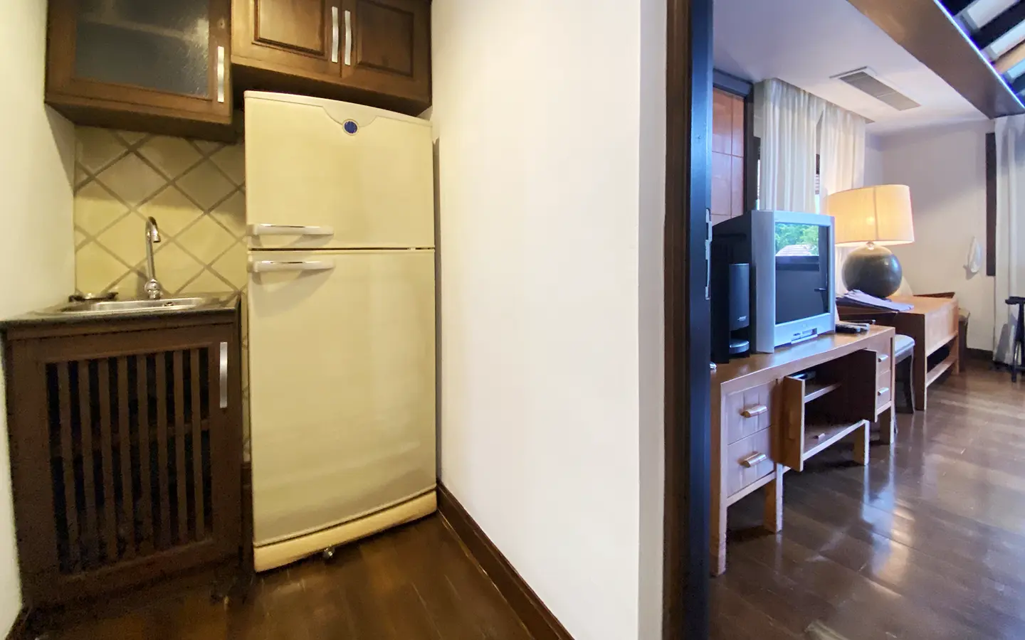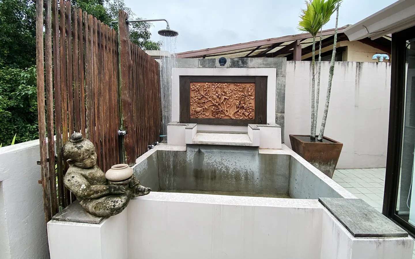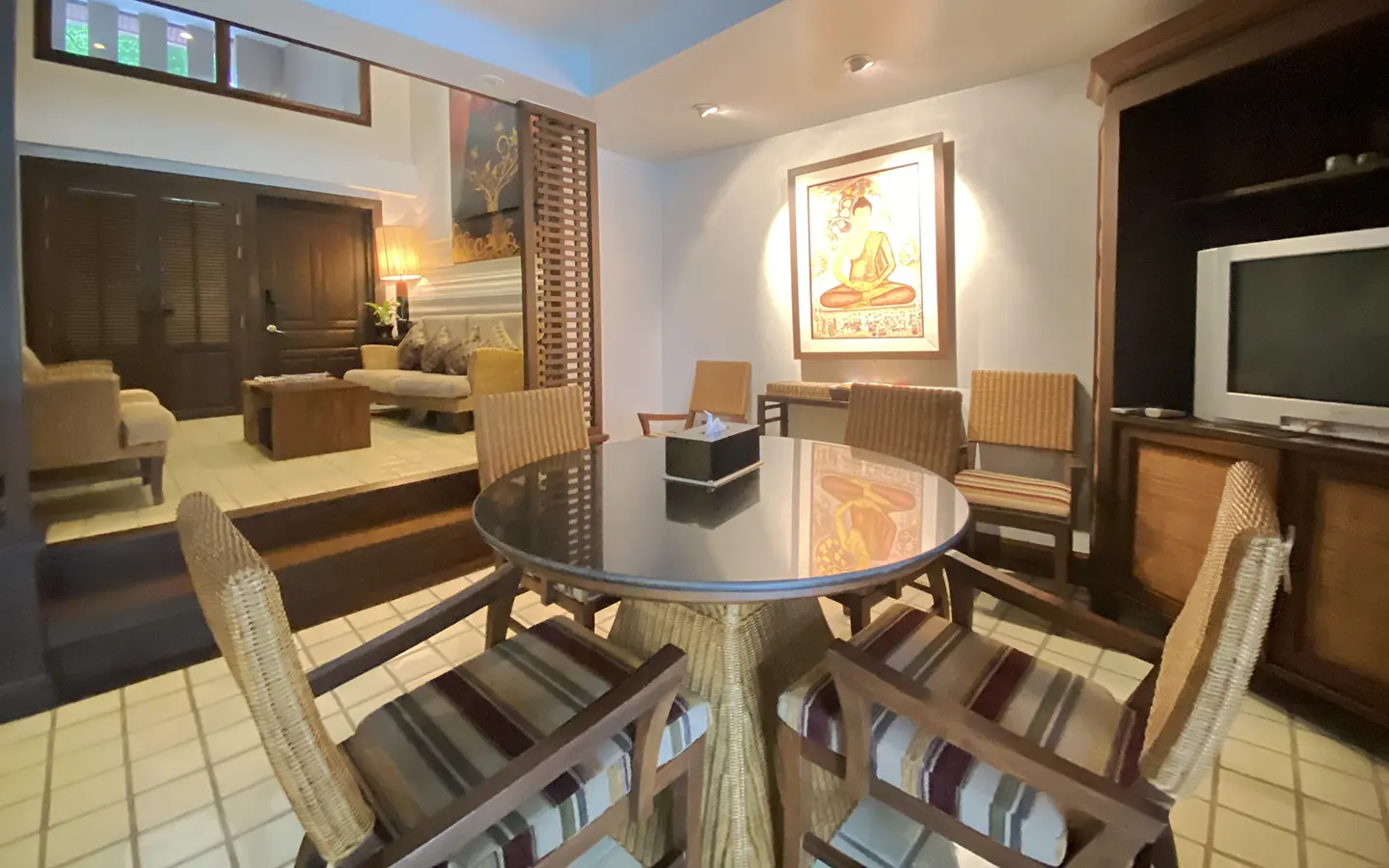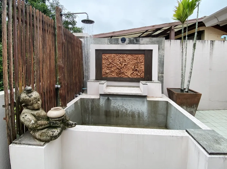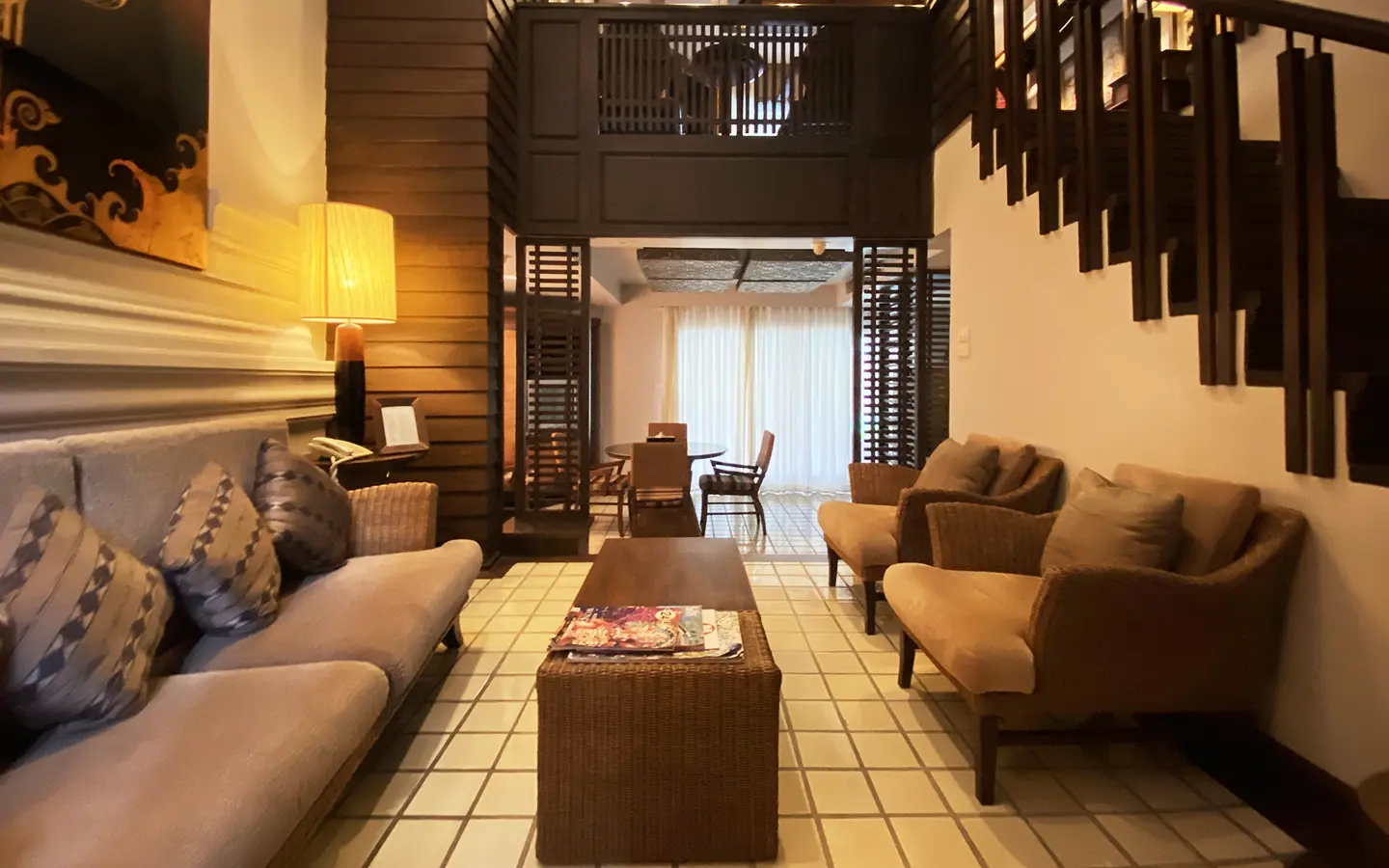 The unit is a 4 storey unit in the Residence zone with the driveway at parking at the rear which is used as main entrance to the house. The ground floor comprises a tall ceiling living area with terracotta flooring, a couple of steps split level to a dining room, a fitted Western kitchen, guest bathroom and a veranda overlooking and with access to the swimming pool. Beautiful and tastefully decorated throughout. Going up to the mezzanine floor there is a lovely family and TV room with a tall alcove ceiling and wooden floor. The third floor comprises an ensuite guest bedroom and the ensuite master bedroom which also has a veranda. Again beautiful wooden floor throughout and featuring wooden alcove ceiling. The bathroom also features a lot of beautiful wood trimmings. The entire resident oozes a luxurious yet cozy feel. The fourth floor has a large terrace for stargazing and an outdoor bathtub. The loft style third bedroom is on this floor which can also be used as an entertainment room. It is ensuite and also comes with a pantry.