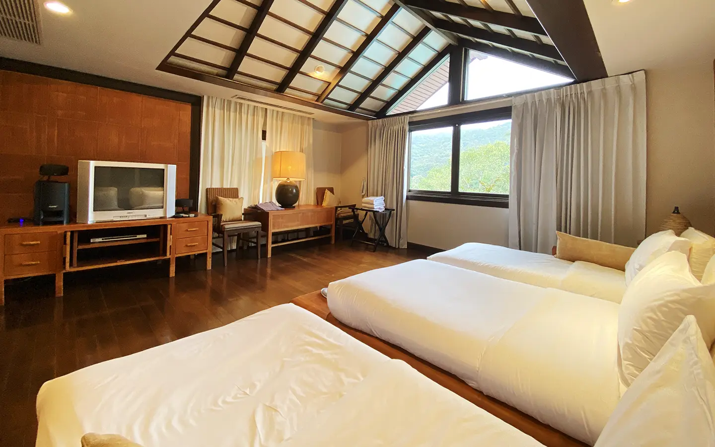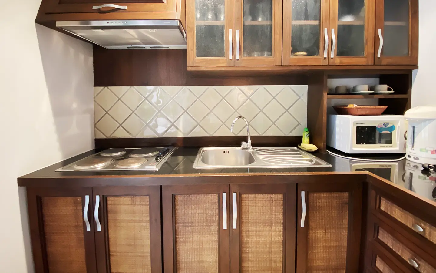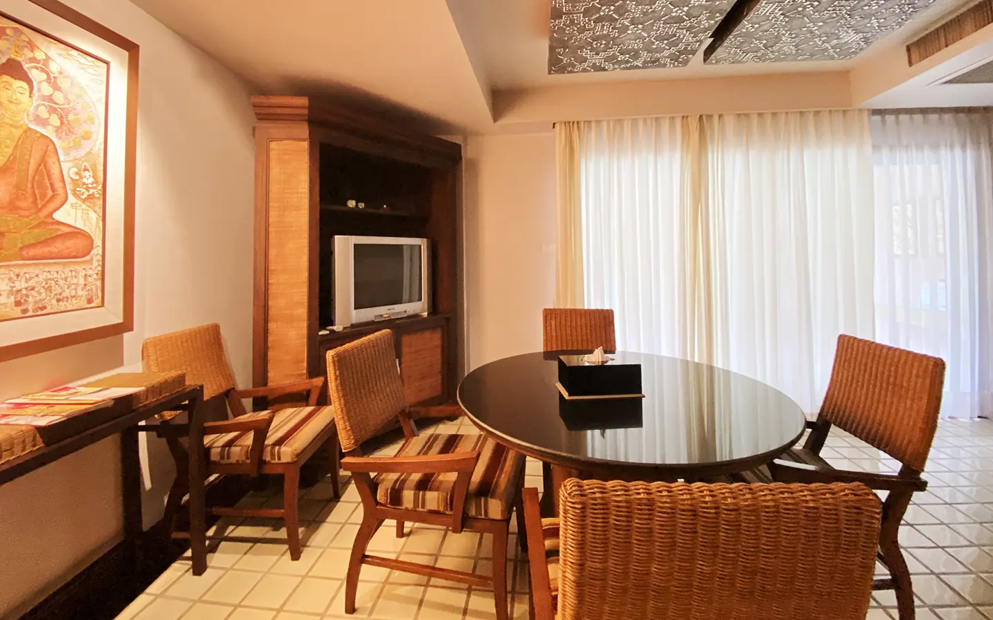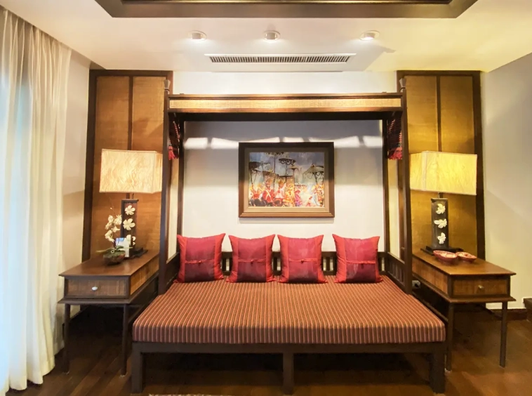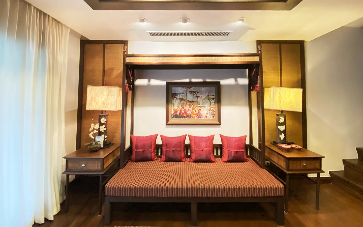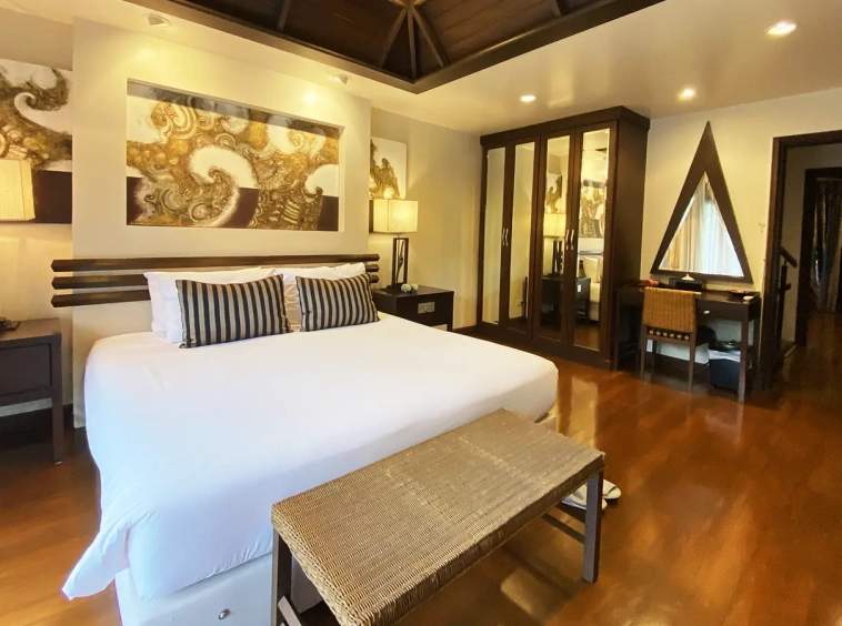 The unit is a 4 storey unit in the Residence zone with the driveway at parking at the rear which is used as main entrance to the house. The ground floor comprises a tall ceiling living area with terracotta flooring, a couple of steps split level to a dining room, a fitted Western kitchen, guest bathroom and a veranda overlooking and with access to the swimming pool. Beautiful and tastefully decorated throughout. Going up to the mezzanine floor there is a lovely family and TV room with a tall alcove ceiling and wooden floor. The third floor comprises an ensuite guest bedroom and the ensuite master bedroom which also has a veranda. Again beautiful wooden floor throughout and featuring wooden alcove ceiling. The bathroom also features a lot of beautiful wood trimmings. The entire resident oozes a luxurious yet cozy feel. The fourth floor has a large terrace for stargazing and an outdoor bathtub. The loft style third bedroom is on this floor which can also be used as an entertainment room. It is ensuite and also comes with a pantry.