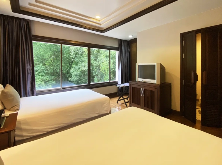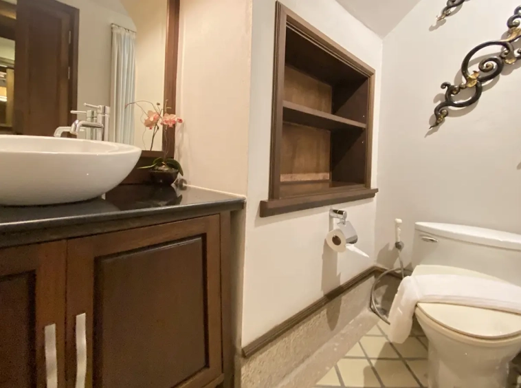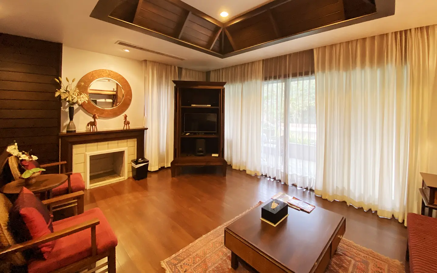 Luxurious and beautiful 3 bedroom pool villa for sale fully furnished in a unique Mediterranean style residence. The unit is in a beautiful contemporary Lanna style designed by well known Chiang Mai architect. Nestled in the greenery on the foot of Suthep mountain in the Ban Pong area of Hang Dong, south of Chiang Mai town, it is 30 minutes from Mae Hia market and Rimping supermarket, 6 minutes drive from American Pacific School and about 40 minutes drive to the airport.