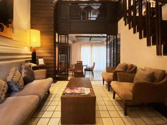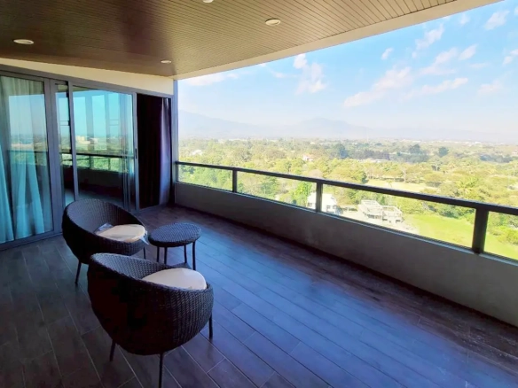 A one-bedroom unit at The North 8 Condo by Serene Lake is for sale fully furnished. The unit is on the third floor overlooking the lake and also enjoys the view of the mountain. Decorated in a modern earth tone design, there is a living room with a dining area, kitchenette and access to the balcony. Separate bedroom with a spacious bathroom.