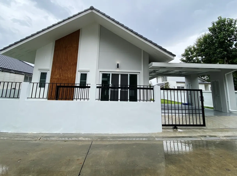 Newly built one-storey 3 bedroom Nordic style house for sale unfurnished in Don Kaew area just north of the city. Located about 15-minute drive to NIS, Meechok Plaza and Rimping Supermarket, 10-minute drive north to the newly built Kad Farang and Makro and further 20 minutes to Prem Intl School. Hospitals are within 15-minute drive away and about 30-35-minute drive to the airport.