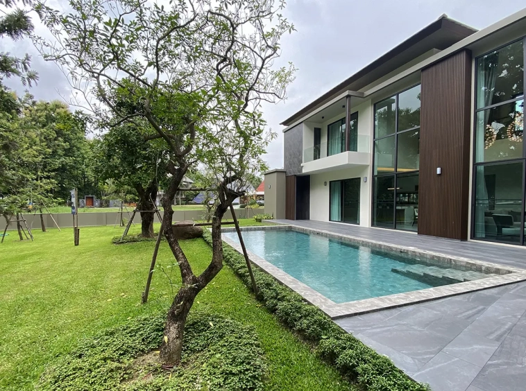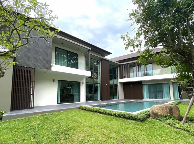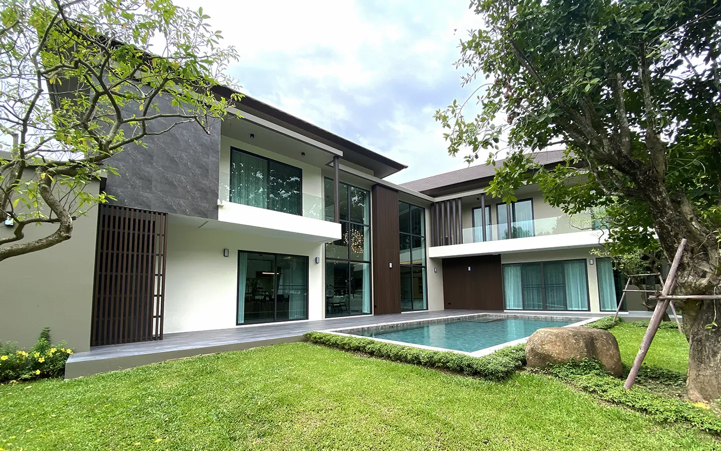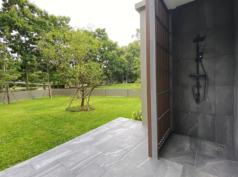 This newly built home is located within a 30-minute drive from Chiang Mai International Airport, approximately 25 minutes from Central Festival, Bangkok Hospital, HomePro, and Index Living Mall. It is less than 15 minutes from Prem International School and under 5 minutes from Kad Farang Mae Rim and Makro. For golf enthusiasts, the golf course is just a 5-minute walk from the house.