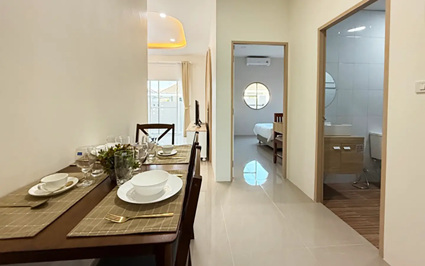 This newly built home comes with a private swimming pool and jacuzzi — a perfect place to unwind and enjoy quiet moments surrounded by peace and privacy. Tucked inside a small, newly developed community with only a few houses, the neighborhood offers a calm atmosphere while still being conveniently close to everything you need in the Hang Dong area.