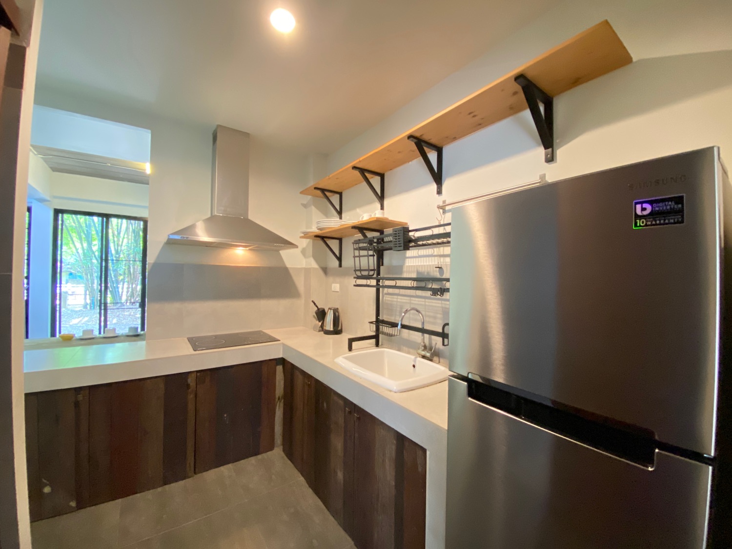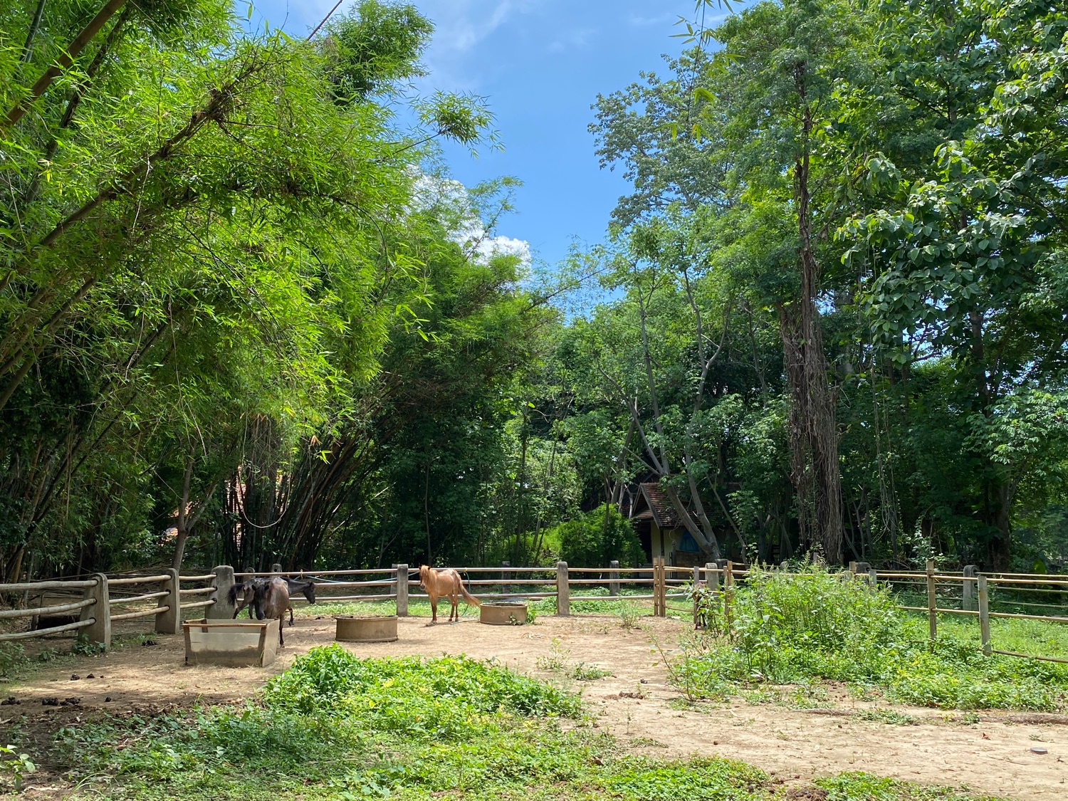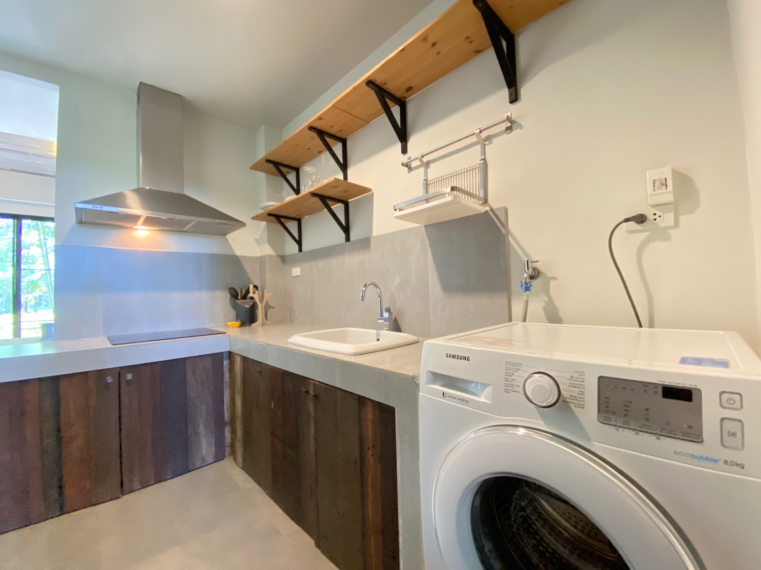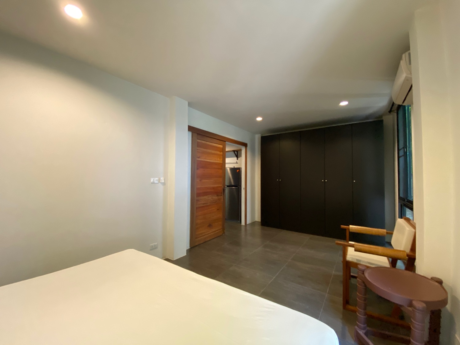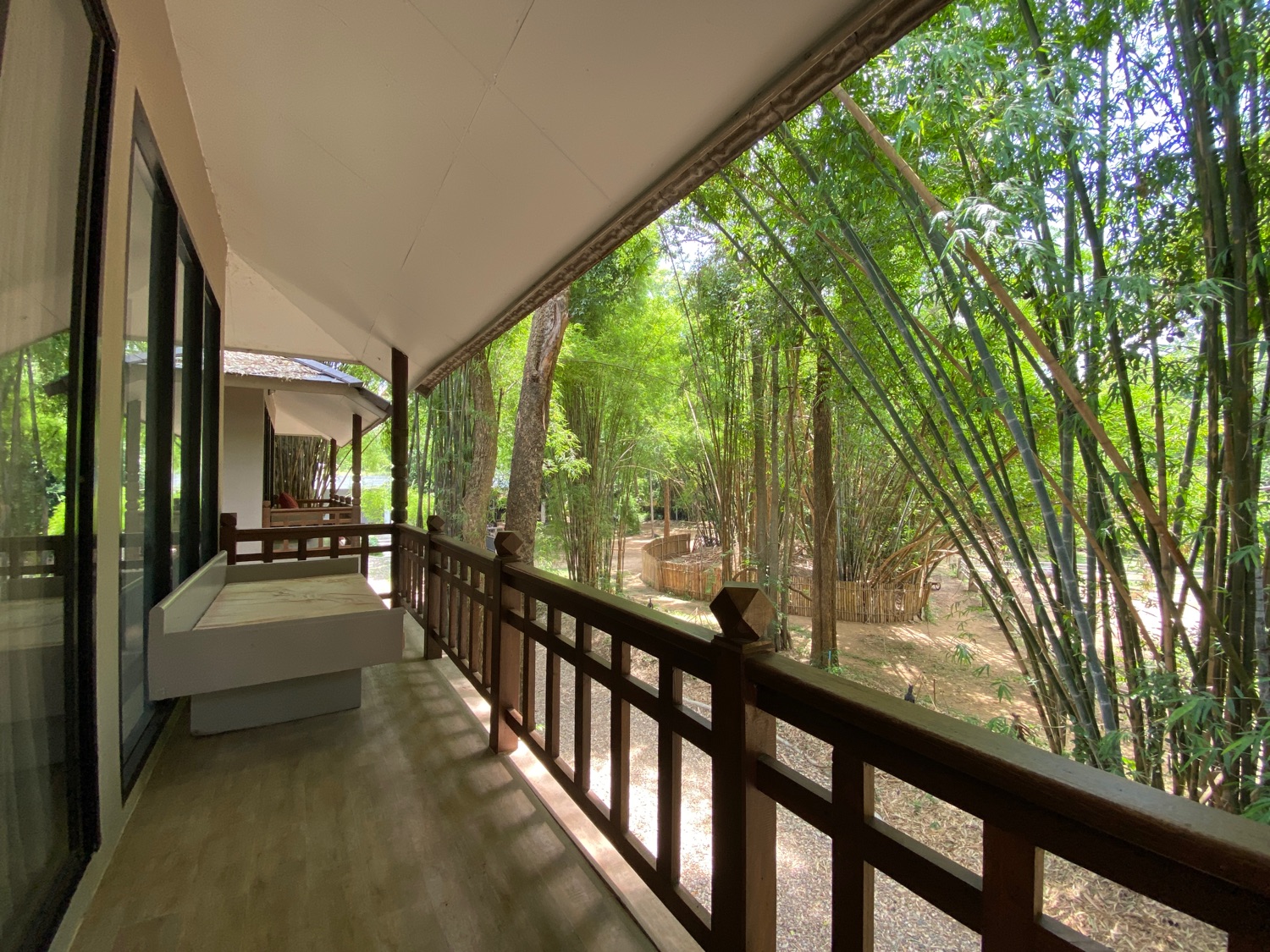 Modern and stylish 6-bedroom twin house for rent fully furnished near Ping River in Don Kaew area of Chiang Mai. Located just north of the city about 10 minutes drive to Mee Chok Plaza and 700 years stadium, the location also offers convenient reach to hospitals, schools and downtown Chiang Mai. About 20 minutes drive to the airport. The property is one of only 5 properties in this exclusive estate. Originally two houses, the owner has connected them with a conservatory or sunroom-style dining room in the middle. The two houses are identical with an open-plan living area with a tall ceiling, and a cute kitchen on the ground floor as well as a guest bathroom with a Victorian bathtub and a guest bedroom which can also be used as a study. On the second floor there are two further bedrooms both ensuite and come with terraces to enjoy the peaceful surroundings. The house is stylishly decorated using good quality and unique furniture pieces. The estate is cosy with gravel ground and bamboo. There is a common house by the river that residents can use for entertaining and a vegetable patch area where residents can grow their own vegetables. A unique and charming set-up in nature surroundings so close to town!