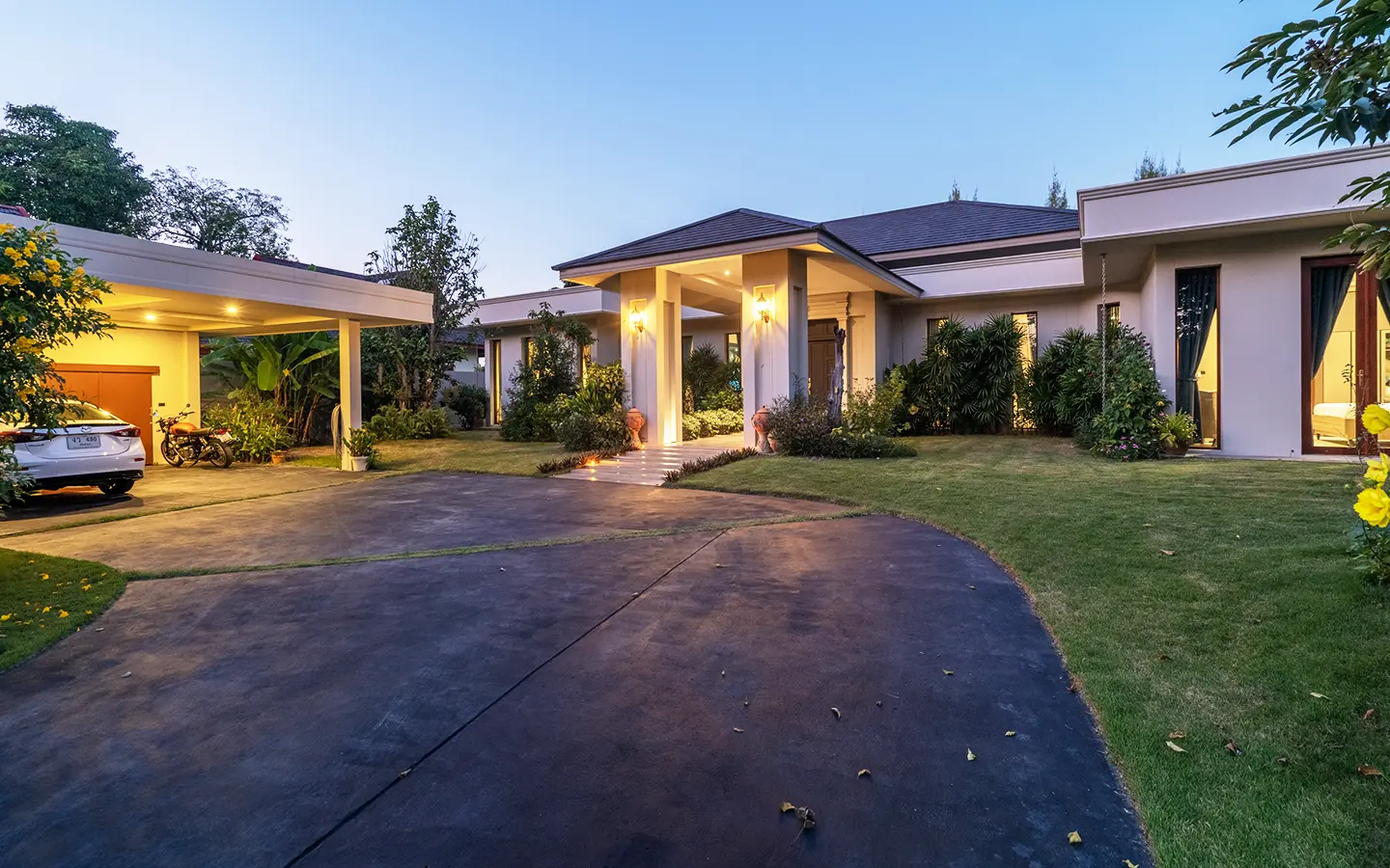 This exclusive corner residence is set within a private and tranquil community, offering exceptional privacy and a refined living experience. Ideally located, the property is approximately 25 minutes from Chiang Mai International Airport, Maharaj Nakorn Chiang Mai Hospital, and Chiang Mai Ram Hospital. Kad Farang Village and Rimping Supermarket are just 20 minutes away, while Lanna International School and other leading International Schools are within a 15-minute drive.