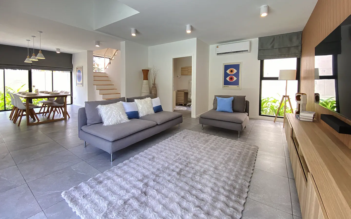 Located in one of Hang Dong’s most desirable neighborhoods, this beautiful family home is only 5 minutes away from SBS International School, The Outlet Mall, Rimping Supermarket, and a variety of restaurants and cozy coffee shops.