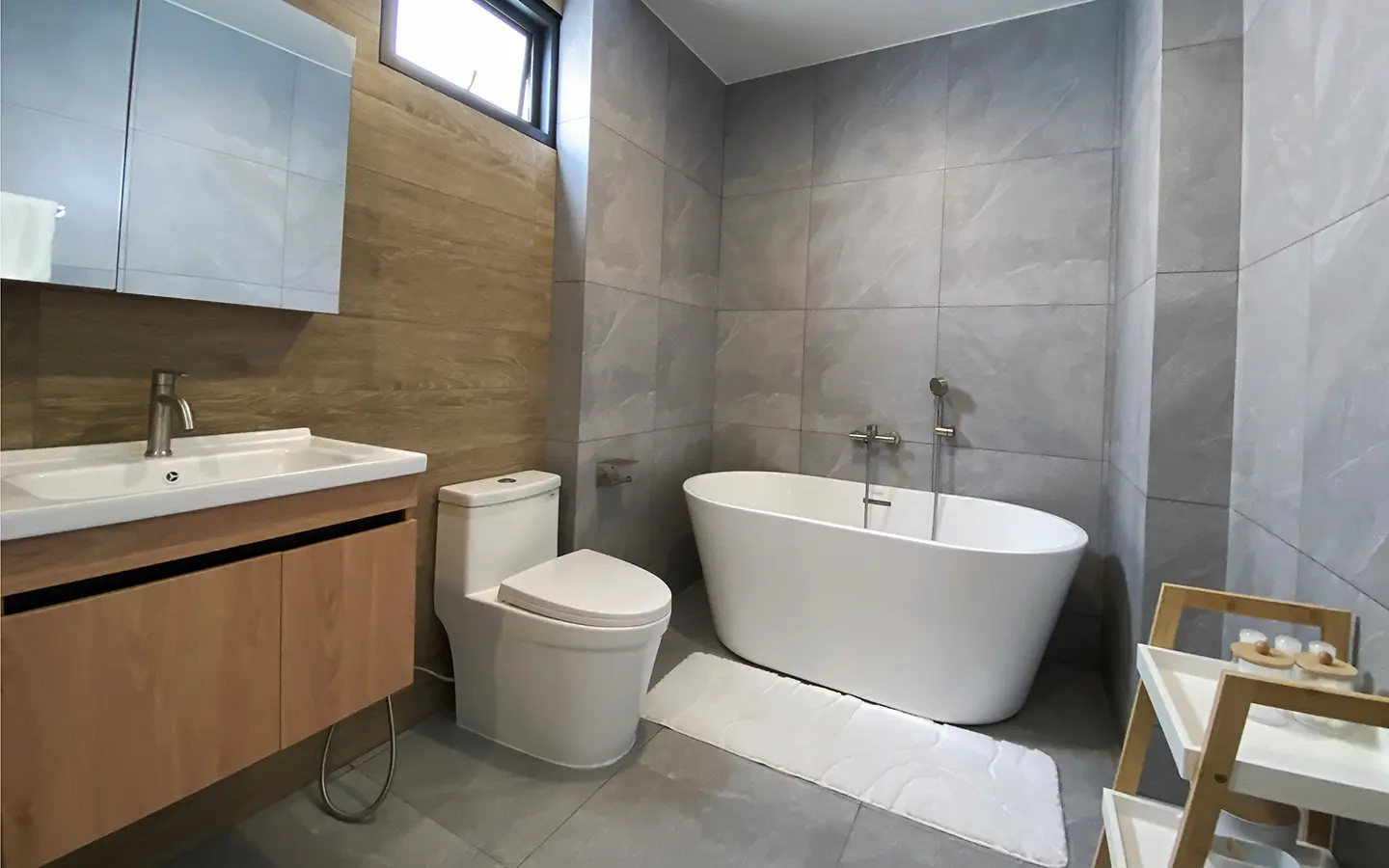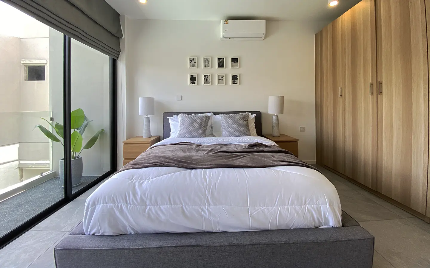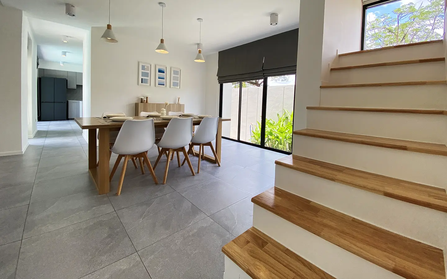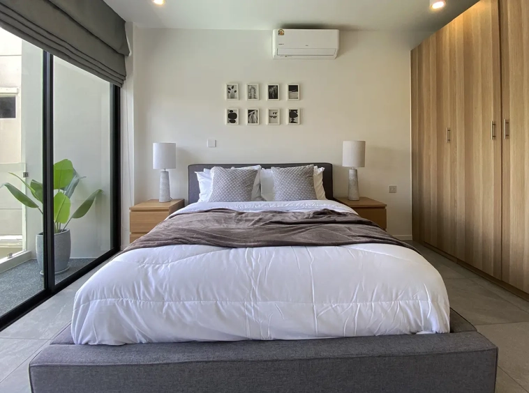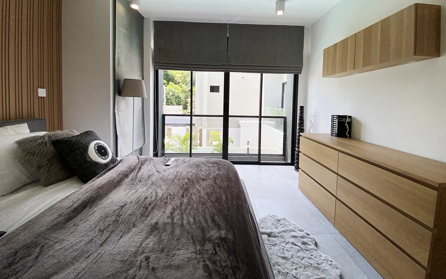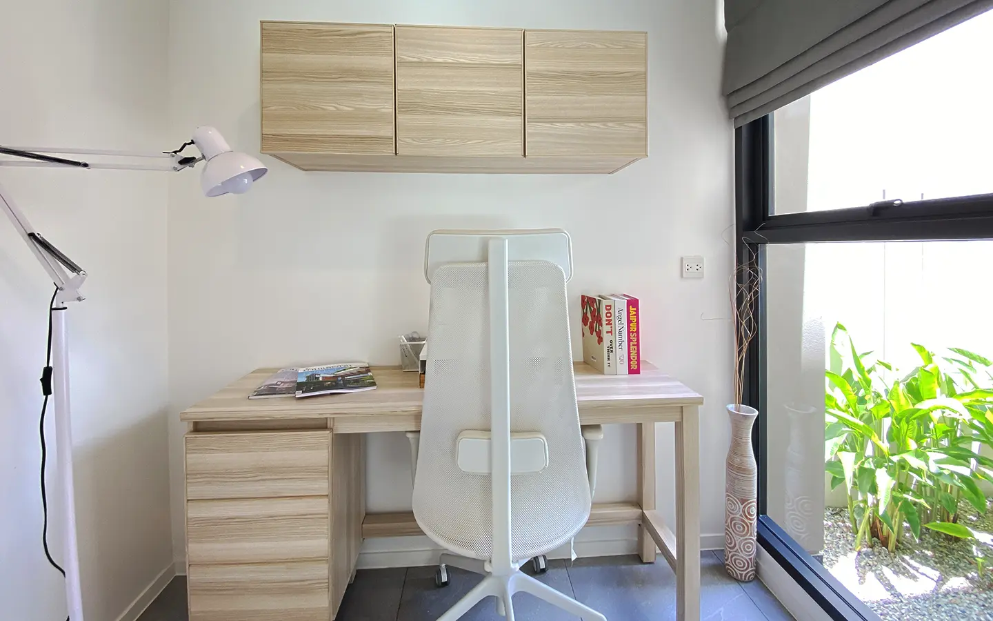 Upstairs, you’ll find three bedrooms. The master bedroom comes with its own living area, a walk-in closet, a private bathroom with a bathtub, and a balcony. The second and third bedrooms both have ensuite bathrooms. The second bedroom also features a wide balcony, perfect for setting up an outdoor sitting area or enjoying your morning coffee.