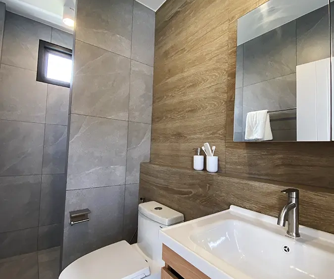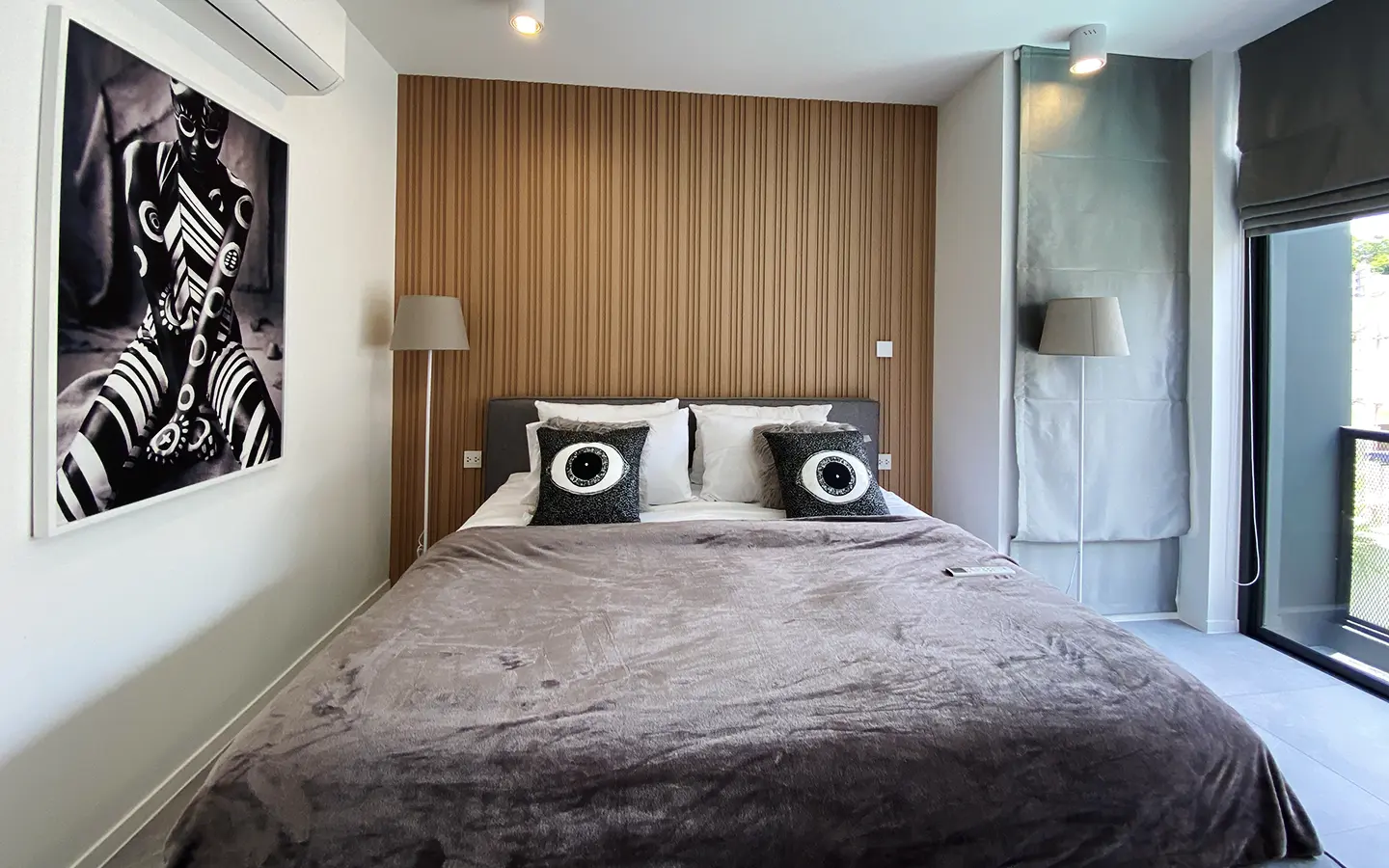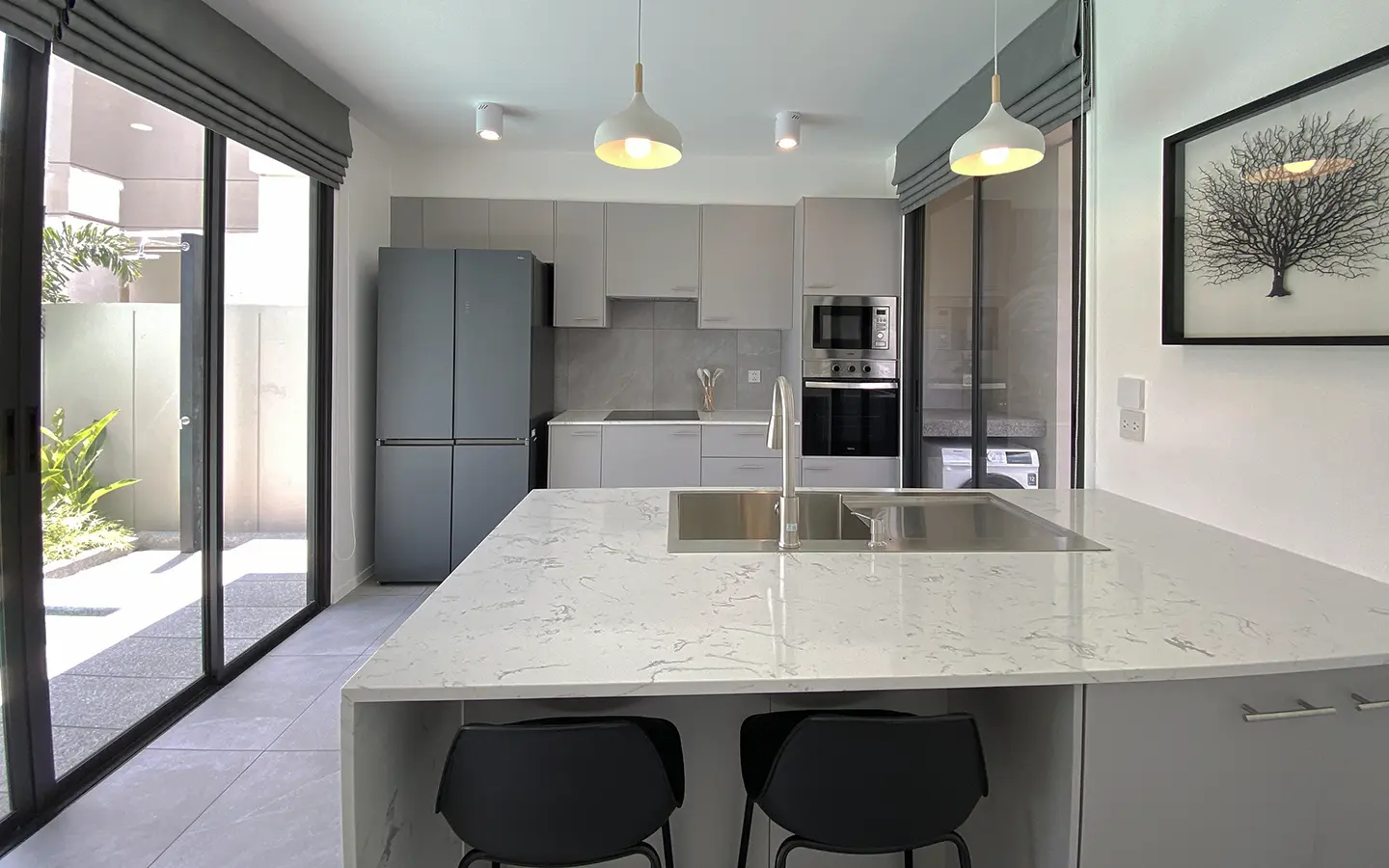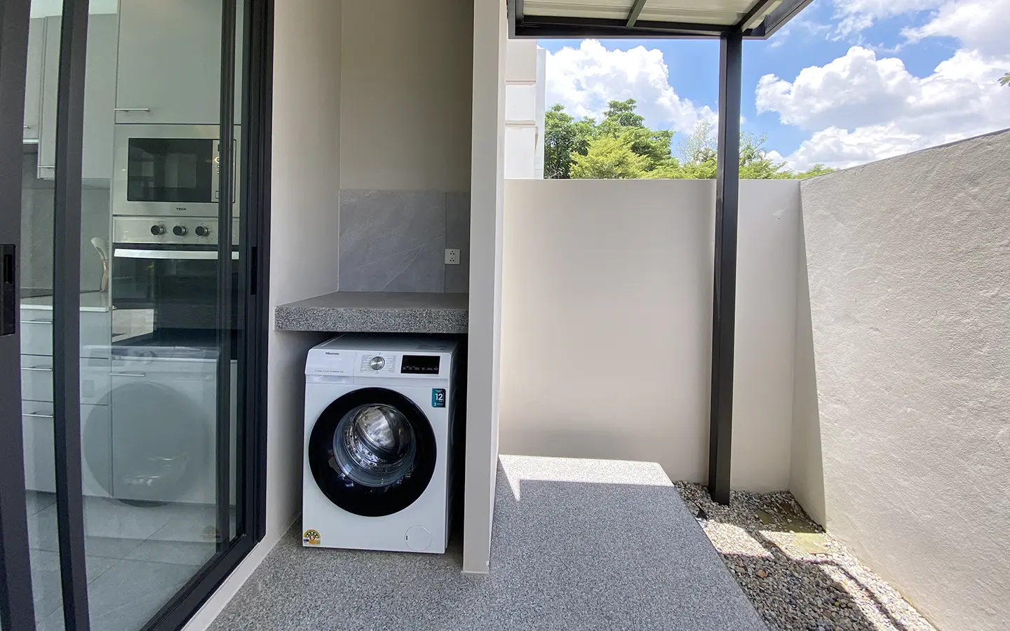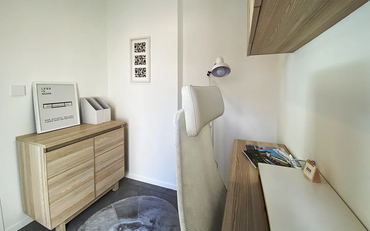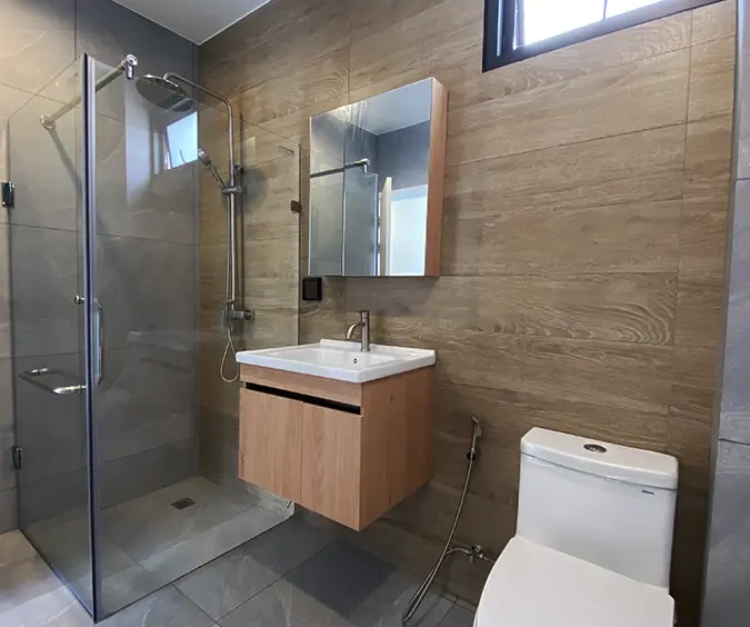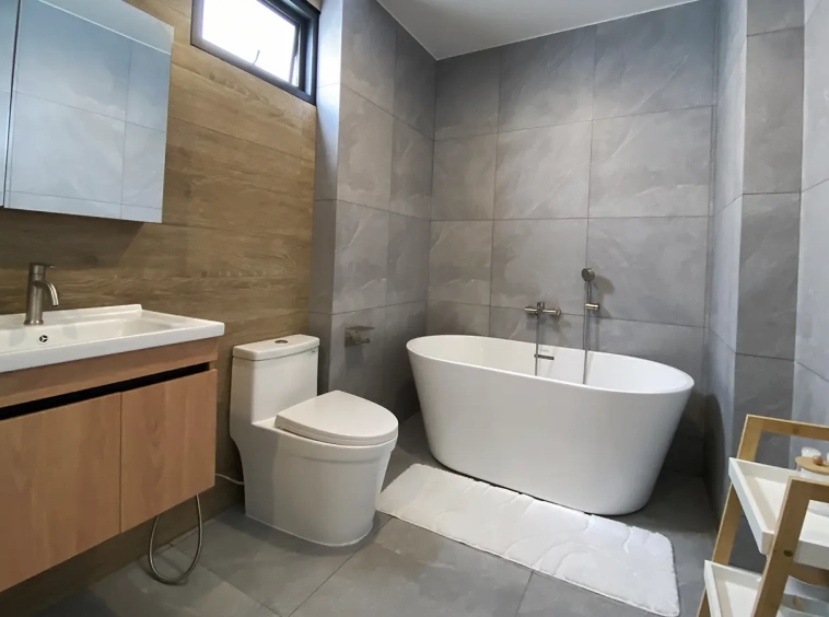 Upstairs, you’ll find three bedrooms. The master bedroom comes with its own living area, a walk-in closet, a private bathroom with a bathtub, and a balcony. The second and third bedrooms both have ensuite bathrooms. The second bedroom also features a wide balcony, perfect for setting up an outdoor sitting area or enjoying your morning coffee.