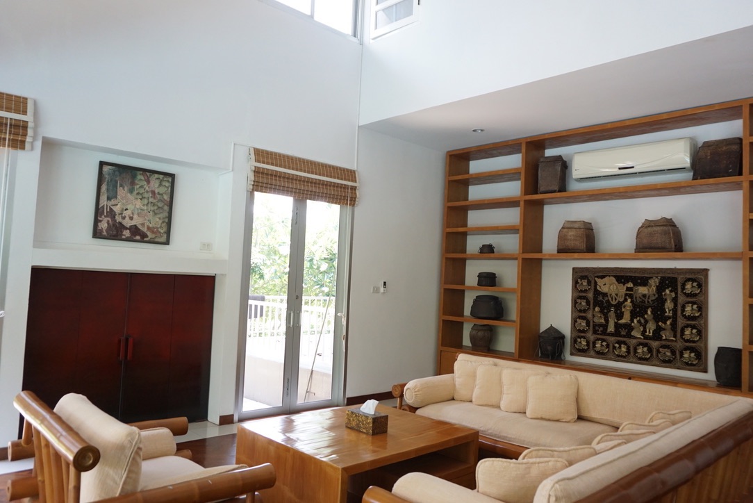 This is a lovely house for rent in a secure gated compound, it has 4 bedrooms and 5 bathrooms and comes fully furnished and has its own private swimming pool and is located in Mae Rim area. It is approximately a 10-minute walking distance from the Prem International School and roughly 45 minutes drive from the Chiang Mai International Airport.