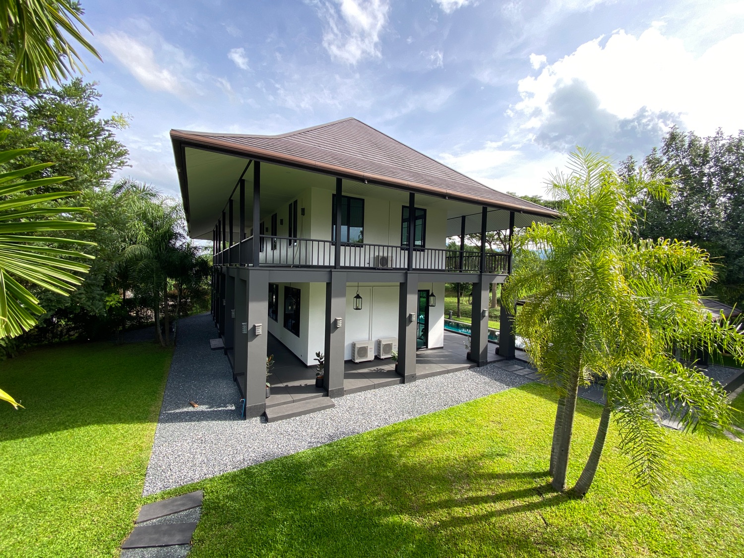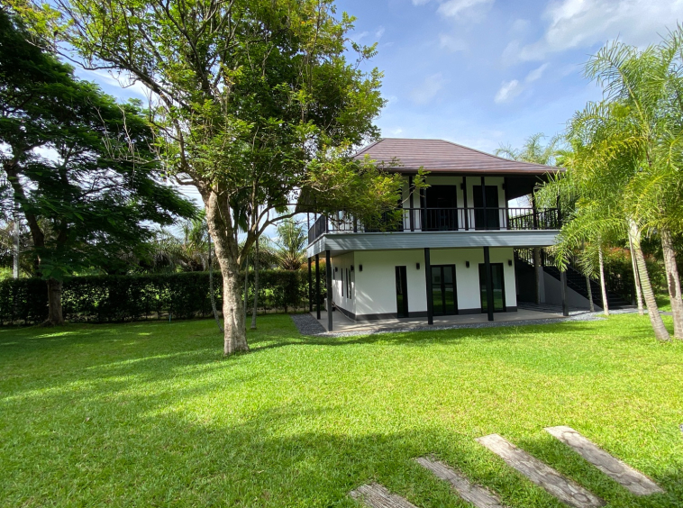 New modern Colonial-style house built to the highest standard for semi-furnished in a spectacular setting in Mae Rim area of Chiang Mai. The property is set on 1.5 rai (2400 sqm) of land by the lake with a panoramic view of the mountains. The house will be 90% complete with the buyer having the option of the Western kitchen of their choice installed or completing it themselves with the reduction in selling price.