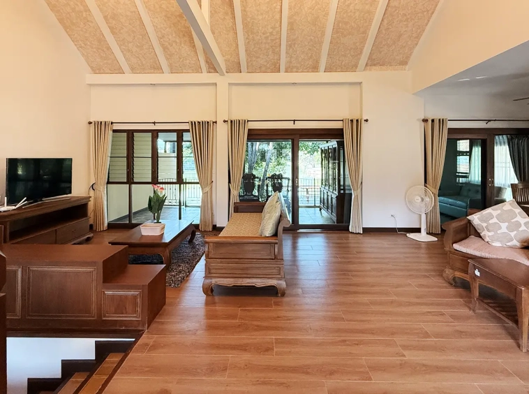 Charming 3 bedroom house by the lake in a renown golf club for rent fully furnished. The golf club is located in Mae Rim area of Chiang Mai, close to The Kad Farang Mae Rim, Makro, hospital and easy to drive into Chiang Mai town. The serene setting and perfect country living, about 20 minutes to drive to Prem International school and tourist attractions in the Mae Sa area.