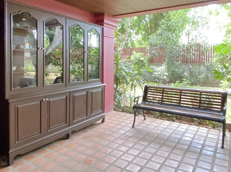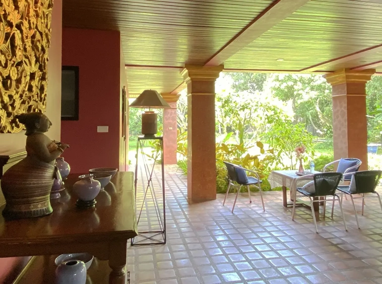 Custom built and designed by renowned Lanna Architecture and National Artist Ajarn Chulatat Kitibutr, a 3-bedroom house is for sale fully furnished in Don Kaew area of Chiang Mai. Located off the road due north to Maerim, it is set amidst a quiet greenery village, about 15 minutes drive to Meechok Plaza or the stadium and less than 20 minutes drive to Central Festival and hospitals. Makro and soon-to-open Kad Frang is about 10 10-minute drive away, to Prem Intl school is about 20 minutes.