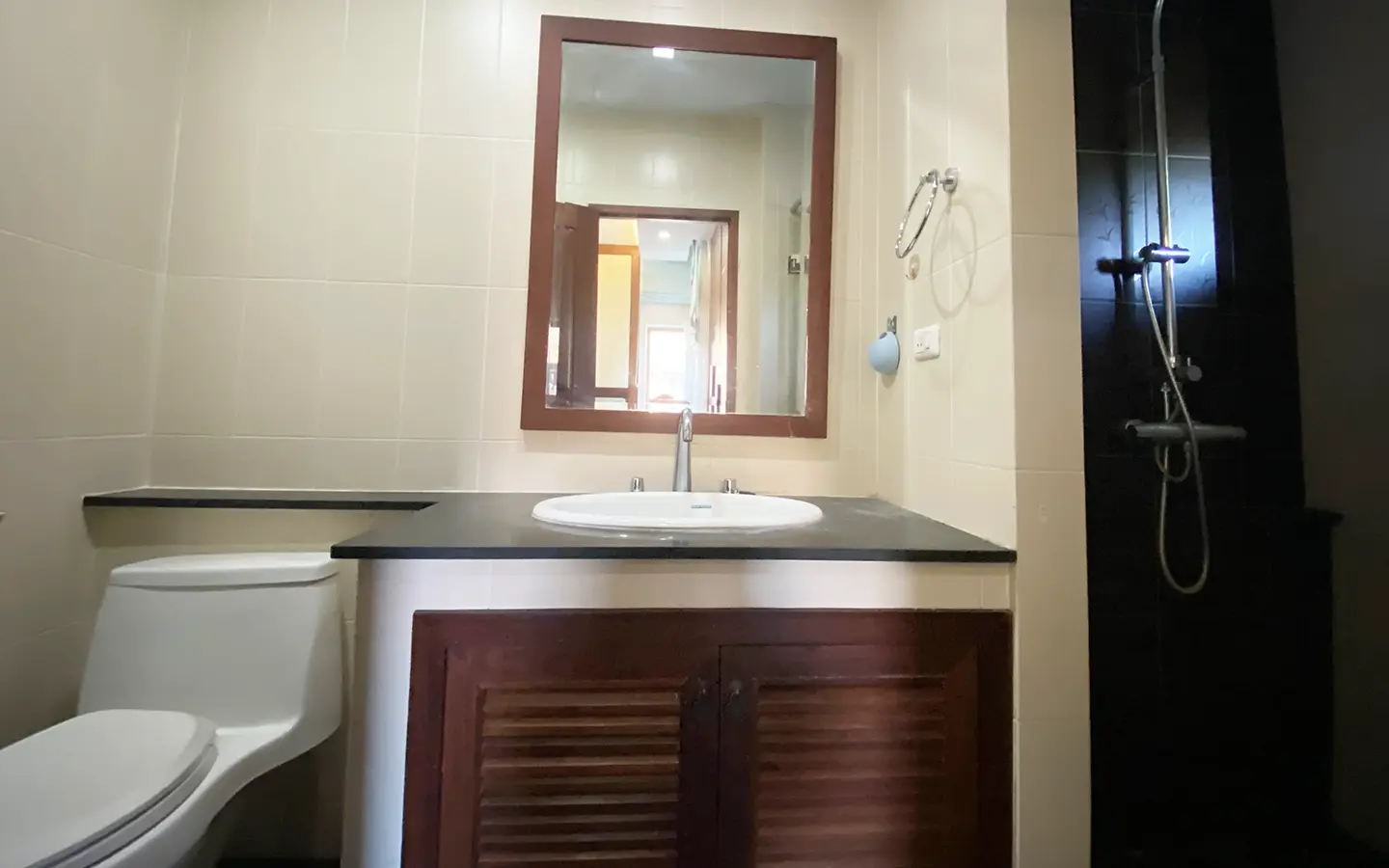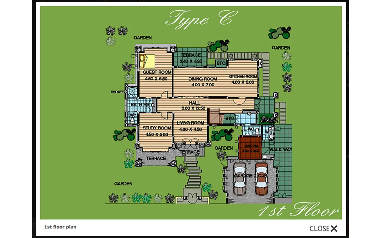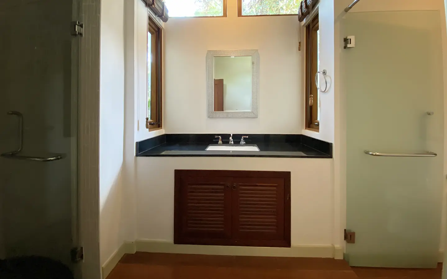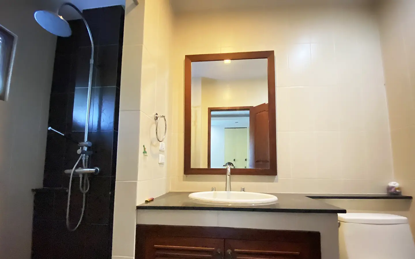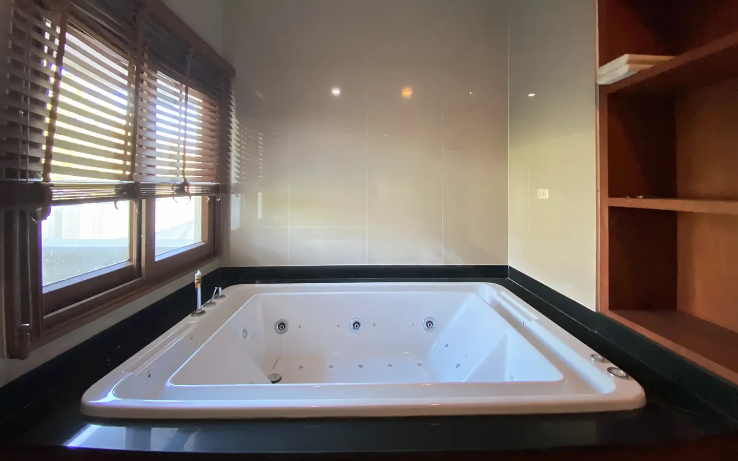 Going up the beautiful wood staircase there is a large hallway with railings looking down at the living area below. There is a sitting room with access to a large terrace. 2 ensuite guest bedrooms, a study which has access to the rooftop terrace with gorgeous panoramic views of the mountain and Doi Suthep and Doi Kham temples. The master bedroom has its own sitting area and a wrapped-around terrace with greenery views. It also comes with a large walk-in dressing room and a large bathroom with a jacuzzi and walk-in shower. There is a central a/c throughout the house.
